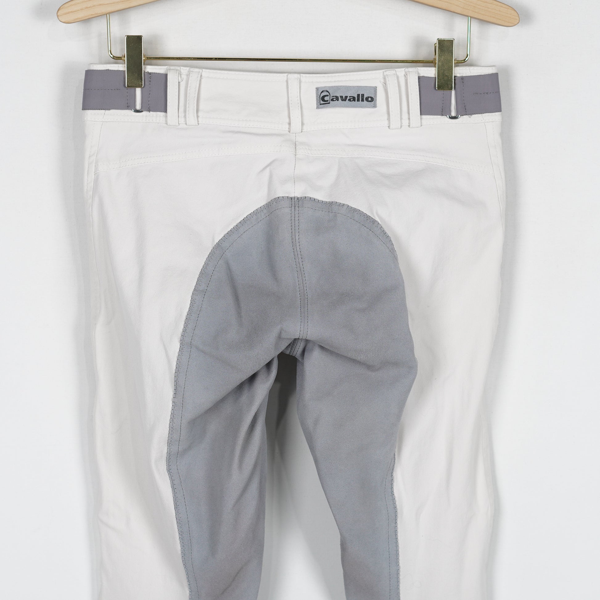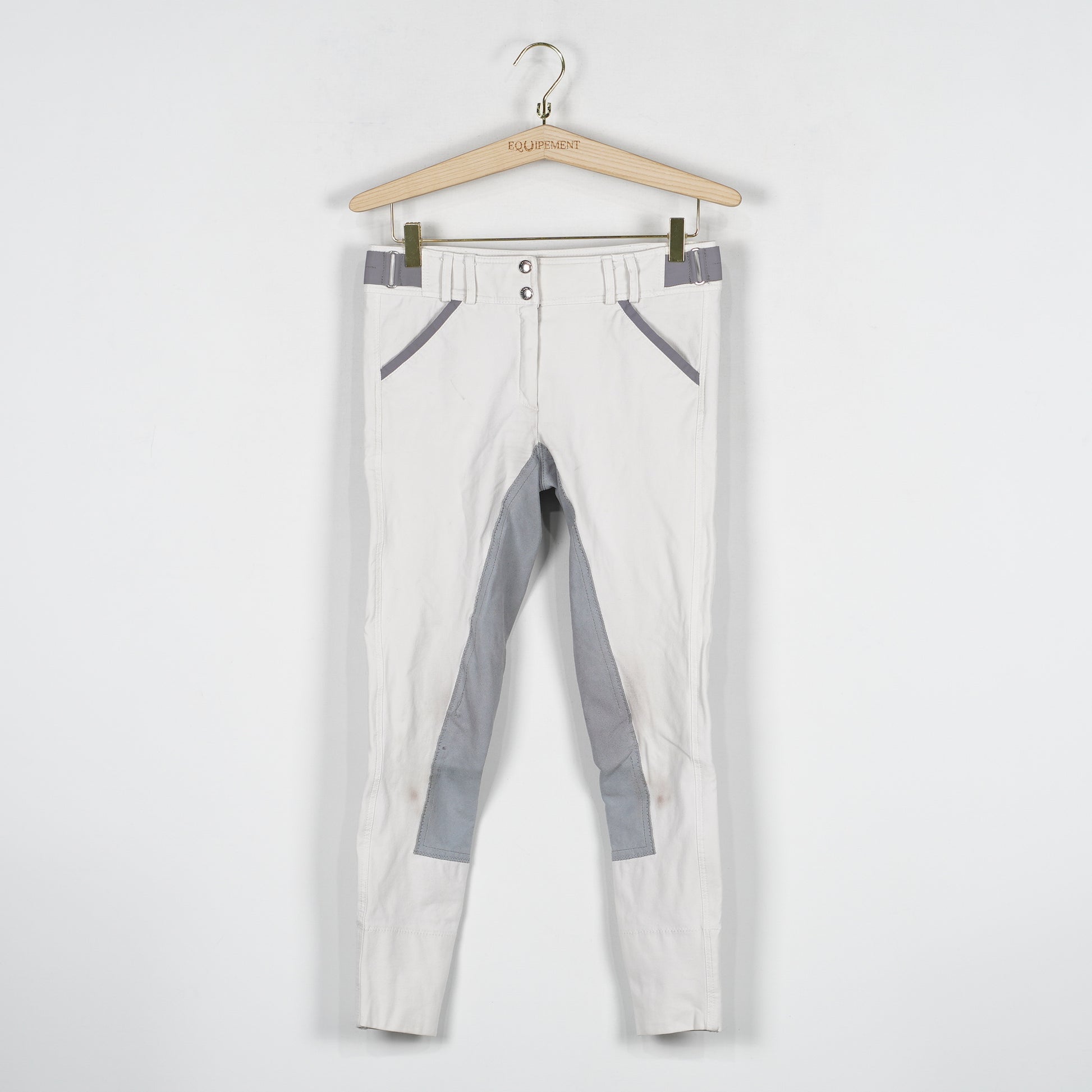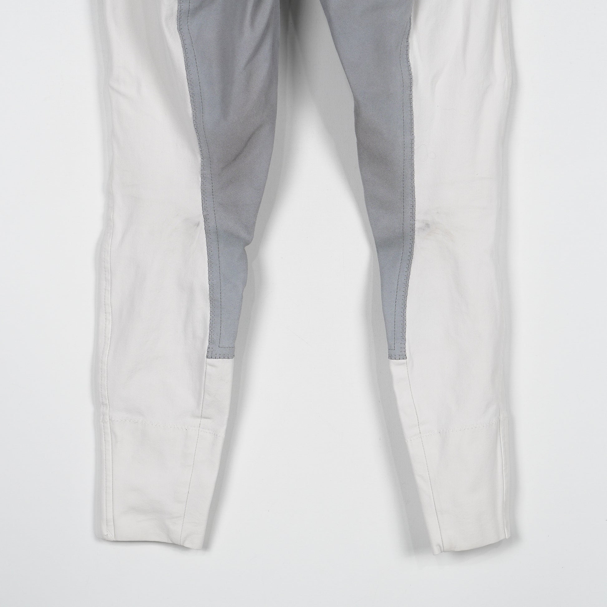 Helskodda ridbyxor från Cavallo med kontrastskoning och elastiskt benslut samt resårband runt midjan. Det har släppt några sömmar och lätta lädermärken finns.