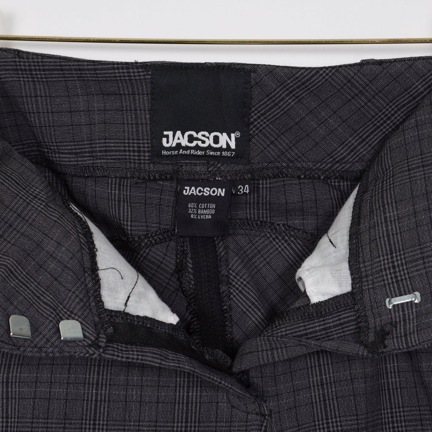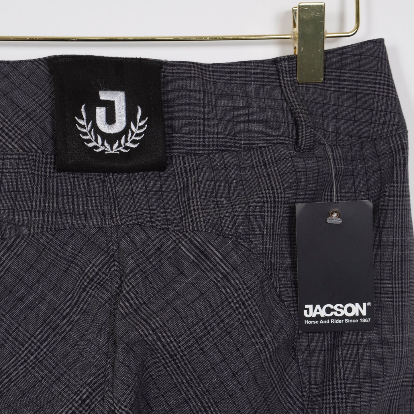 Svart/grårutiga ridbyxor från Jacson, oskodda med elastiskt benslut.