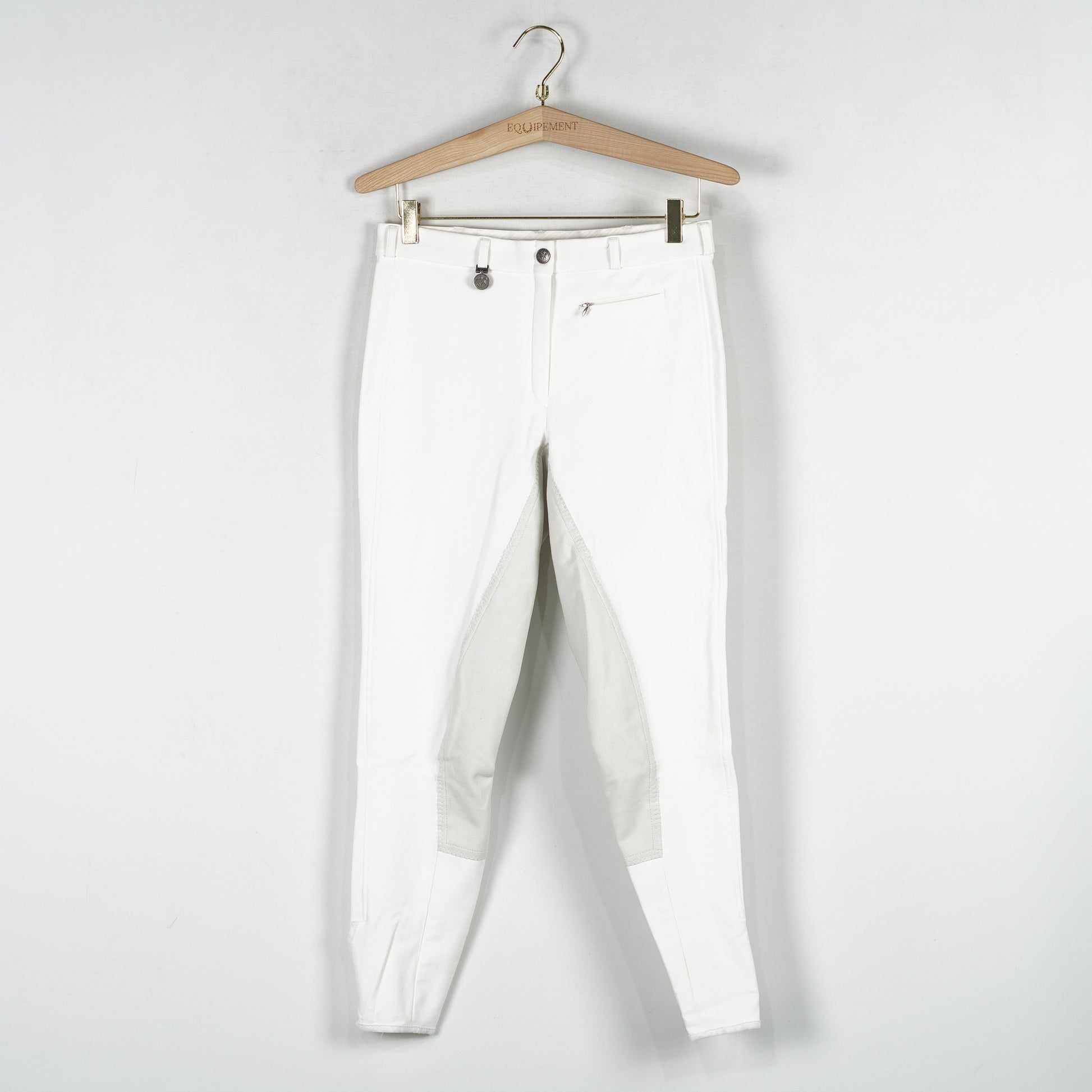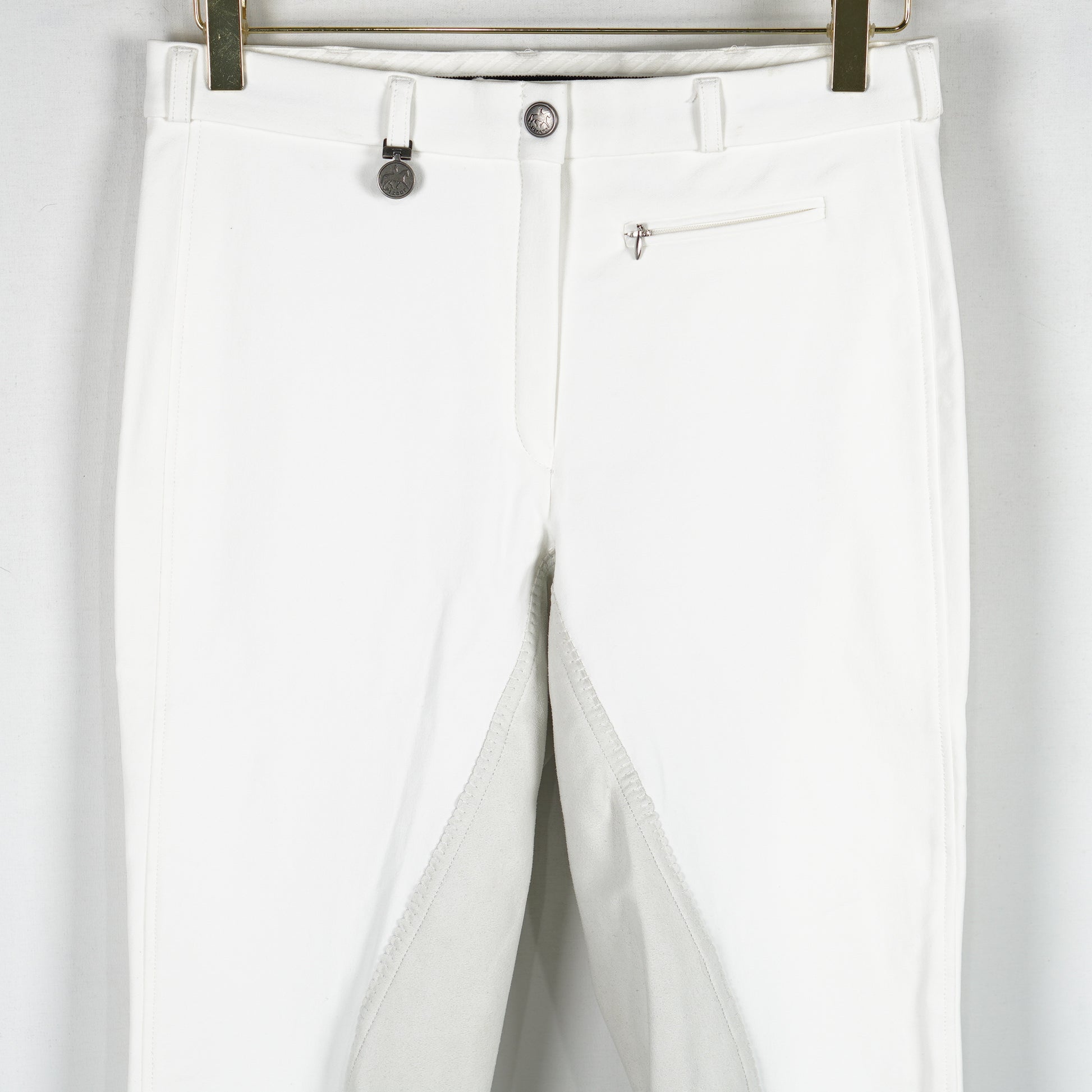 Vita ridbyxor "Lugana" från Pikeur. Ridbyxorna är helskodda med syntetmocka och har kardborre vid benslut.