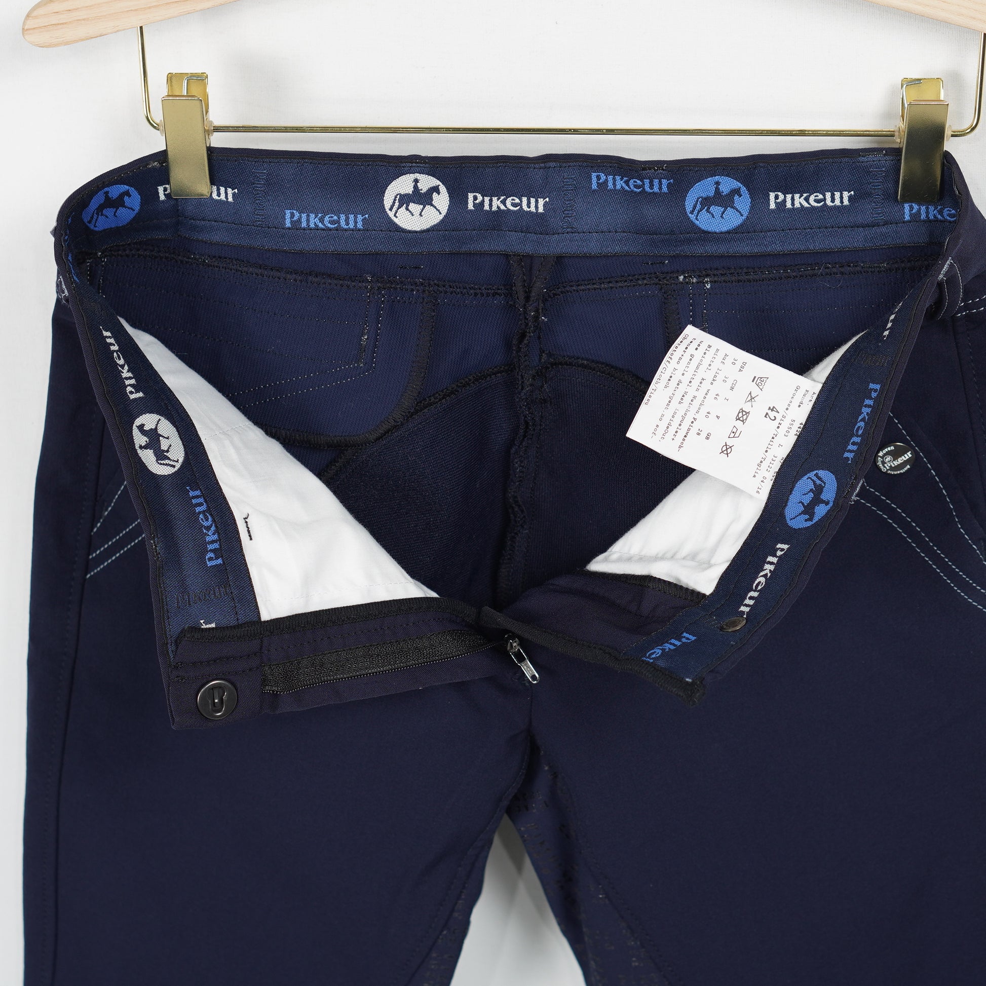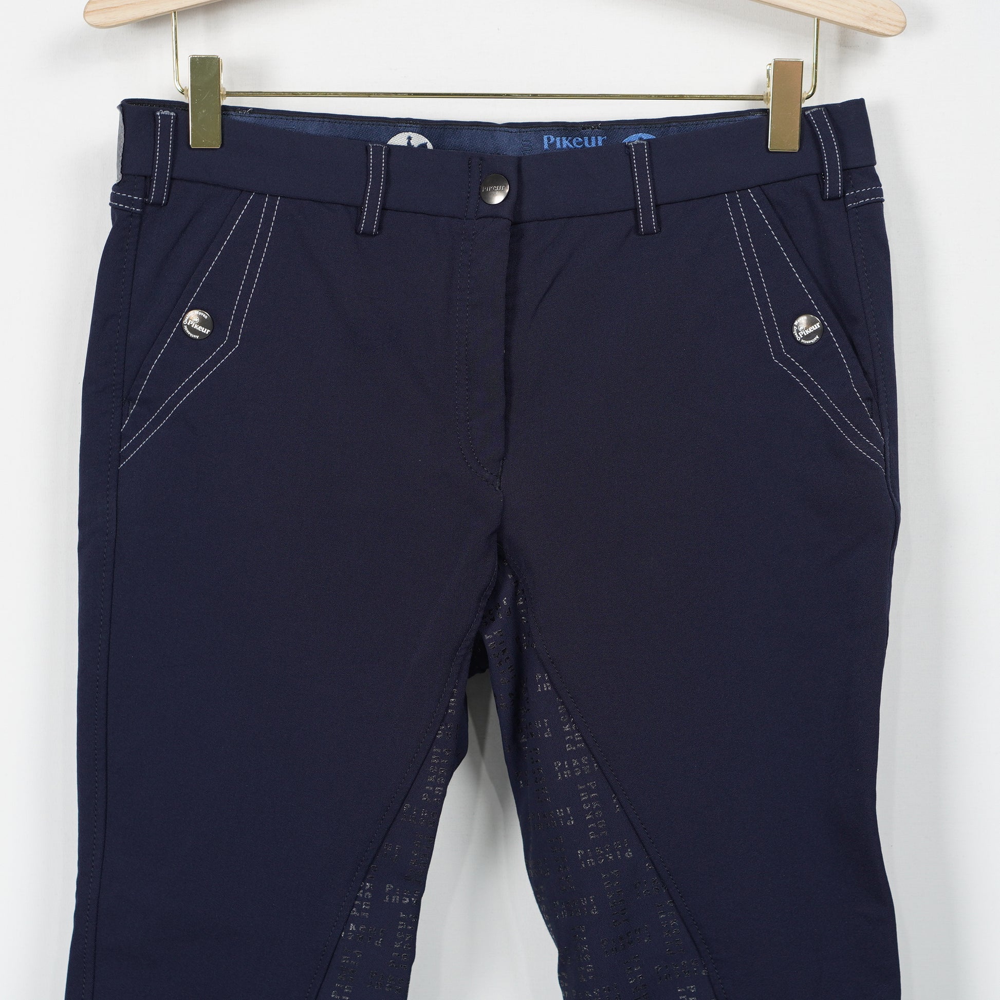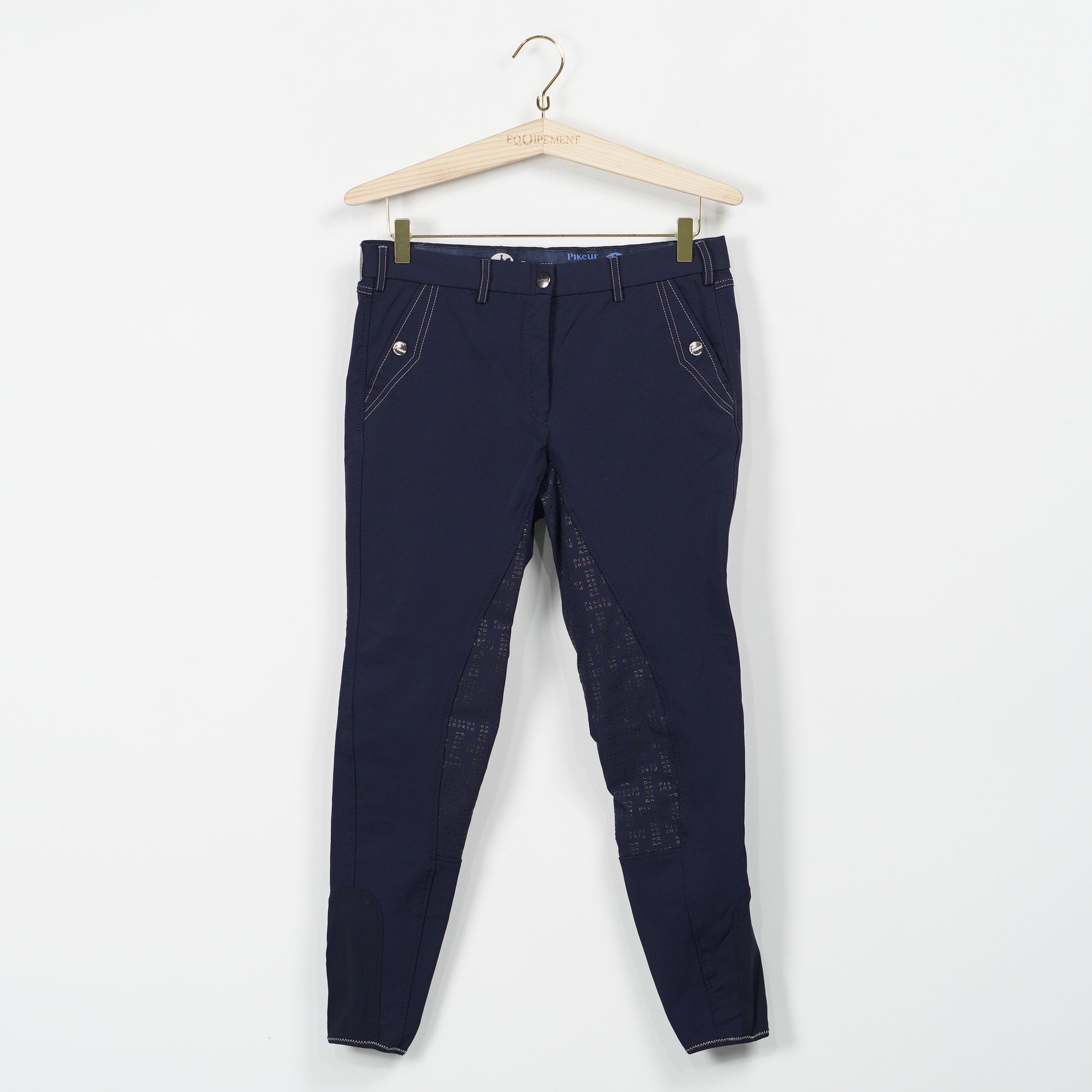 Ridbyxor Maxime i blått helskodda med silikon och ett elastiskt benslut från Pikeur.