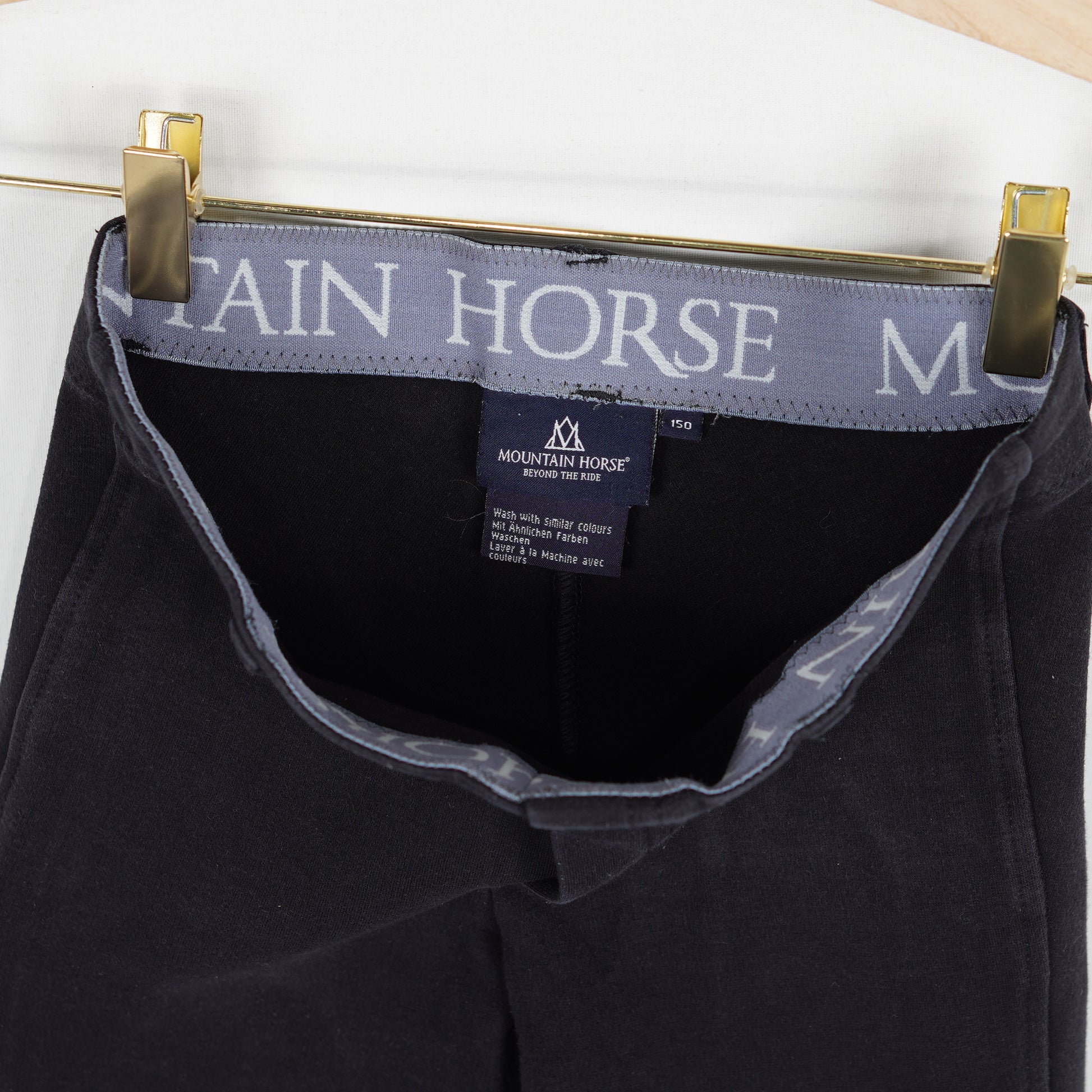 Oskodda ridbyxor utan fickor i svart från Mountain Horse. Färgen är lite urtvättad.