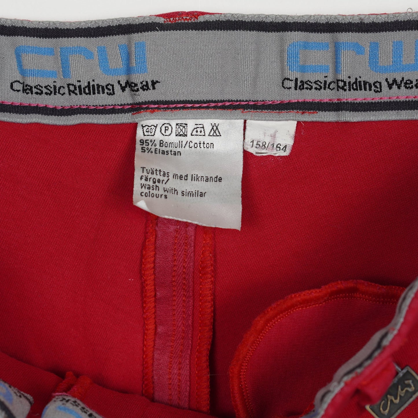 Röda ridbyxor från CRW med knäförstärkning. Midjan på byxorna är lite töjt, mäter 78 cm.