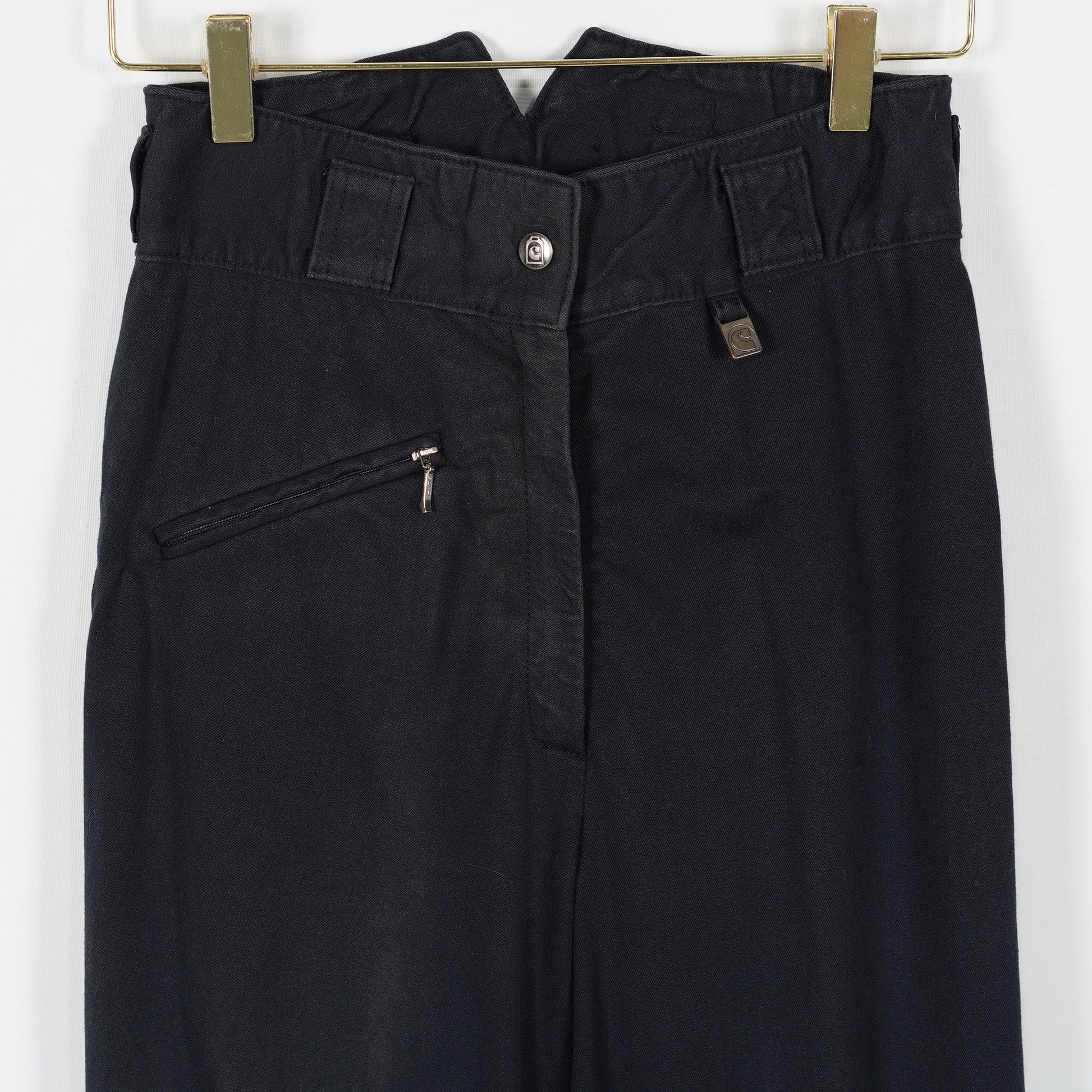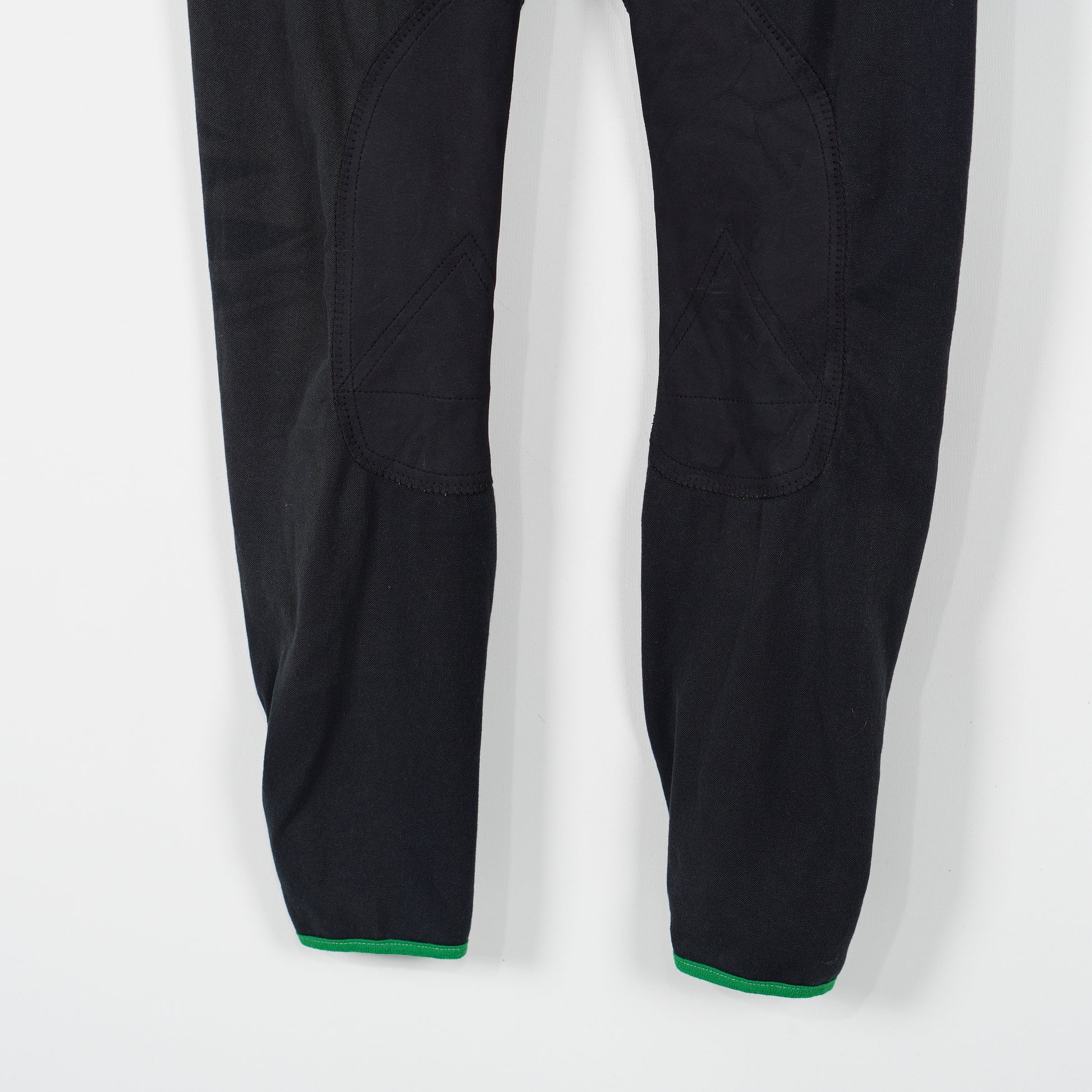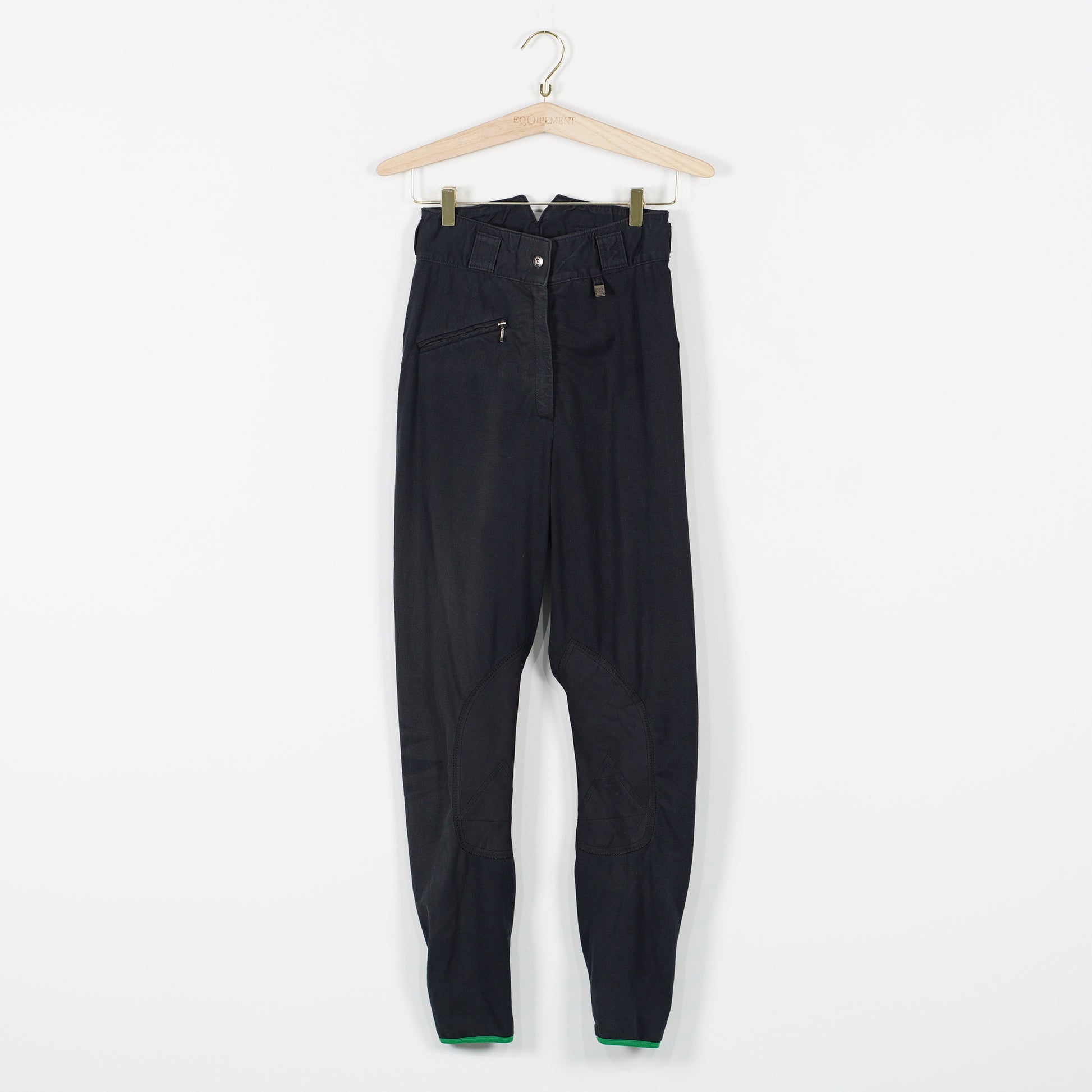 Svarta ridbyxor i bomullsblandning med knäförstärkning i syntetmocka. Ridbyxorna har en lång modell (76) med en hög midja och kardborre vid benslut.