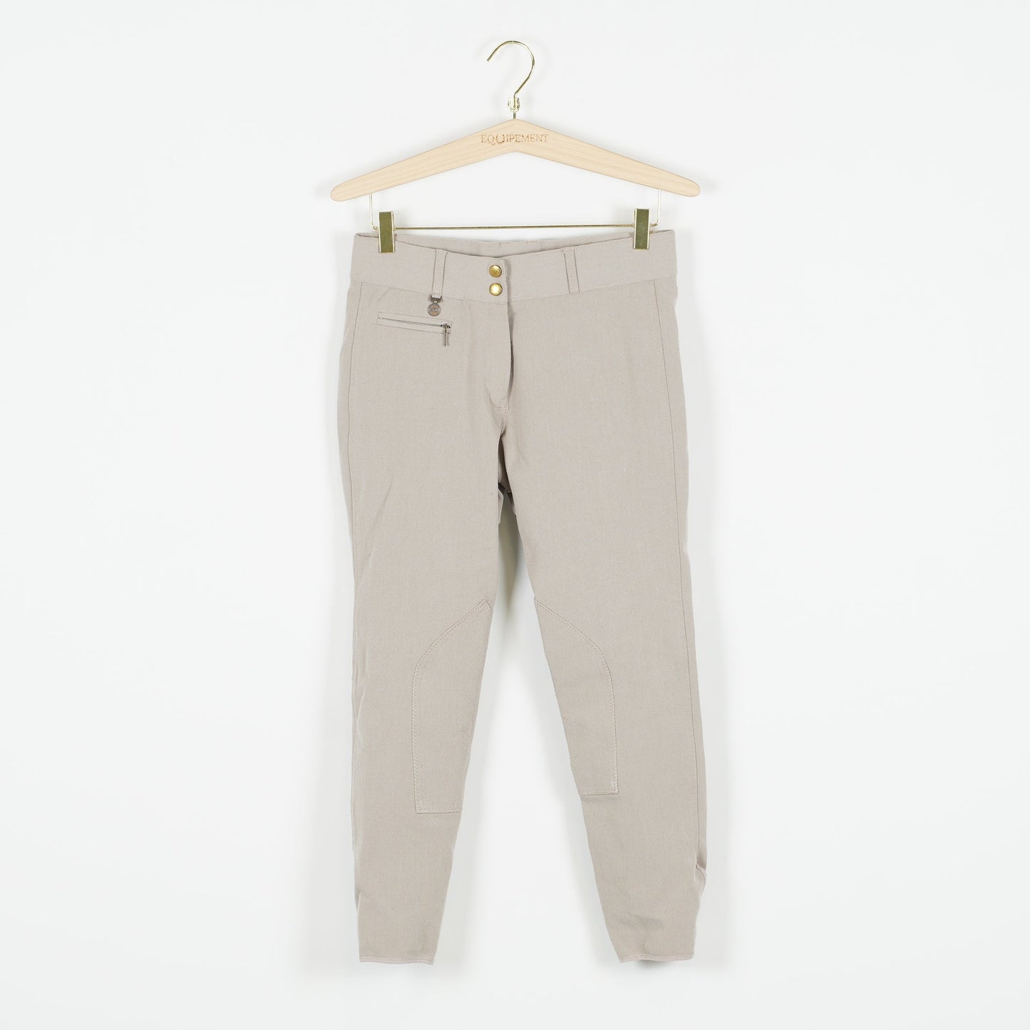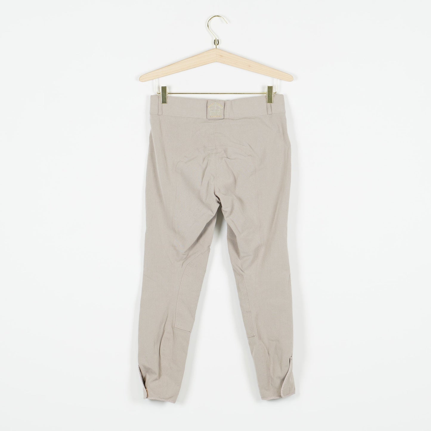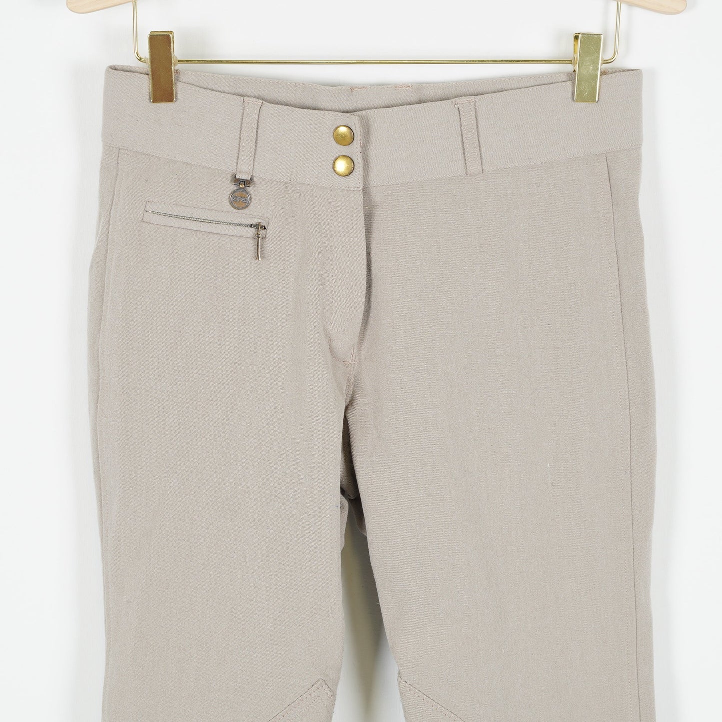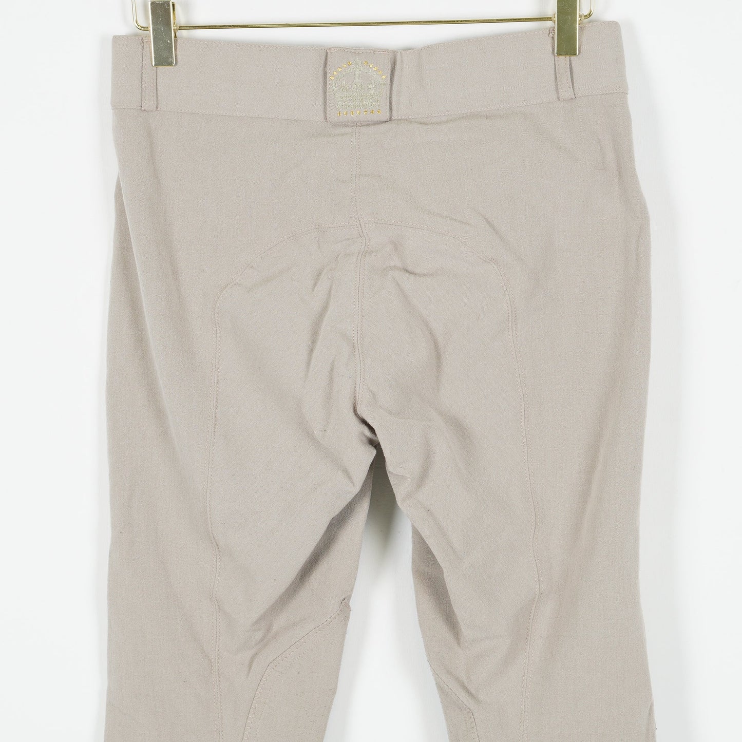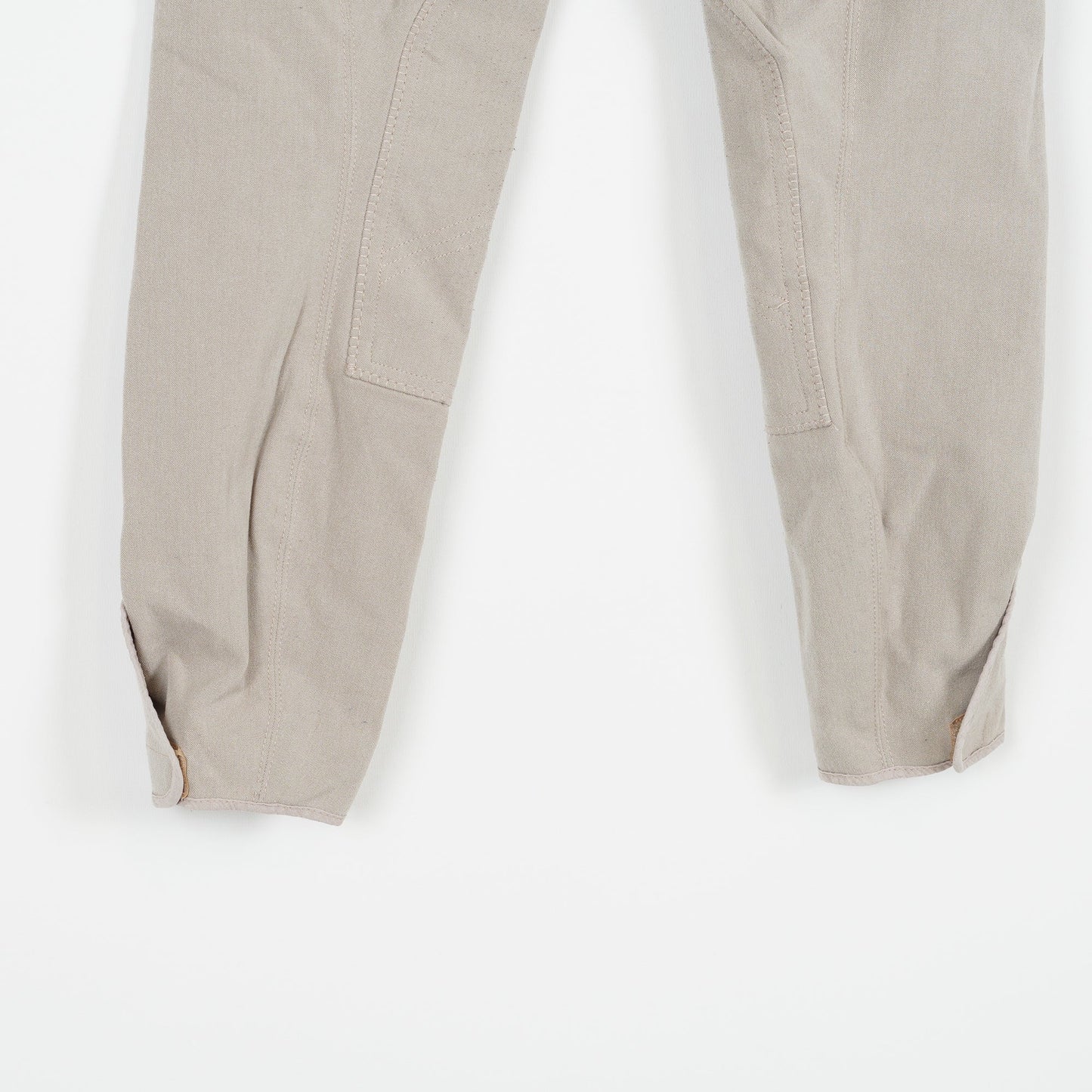 Ljusbruna/beige ridbyxor från CRW, oskodda med kardborre vid benslut. Ridbyxorna är i ett tydligt använt, men ok skick.
