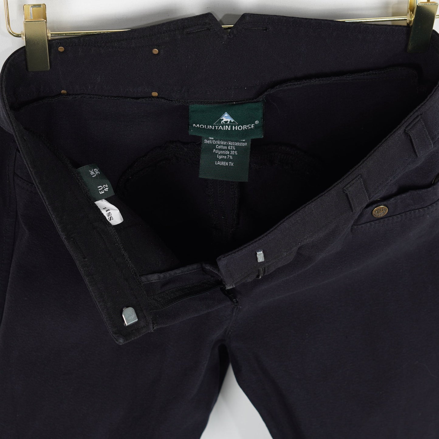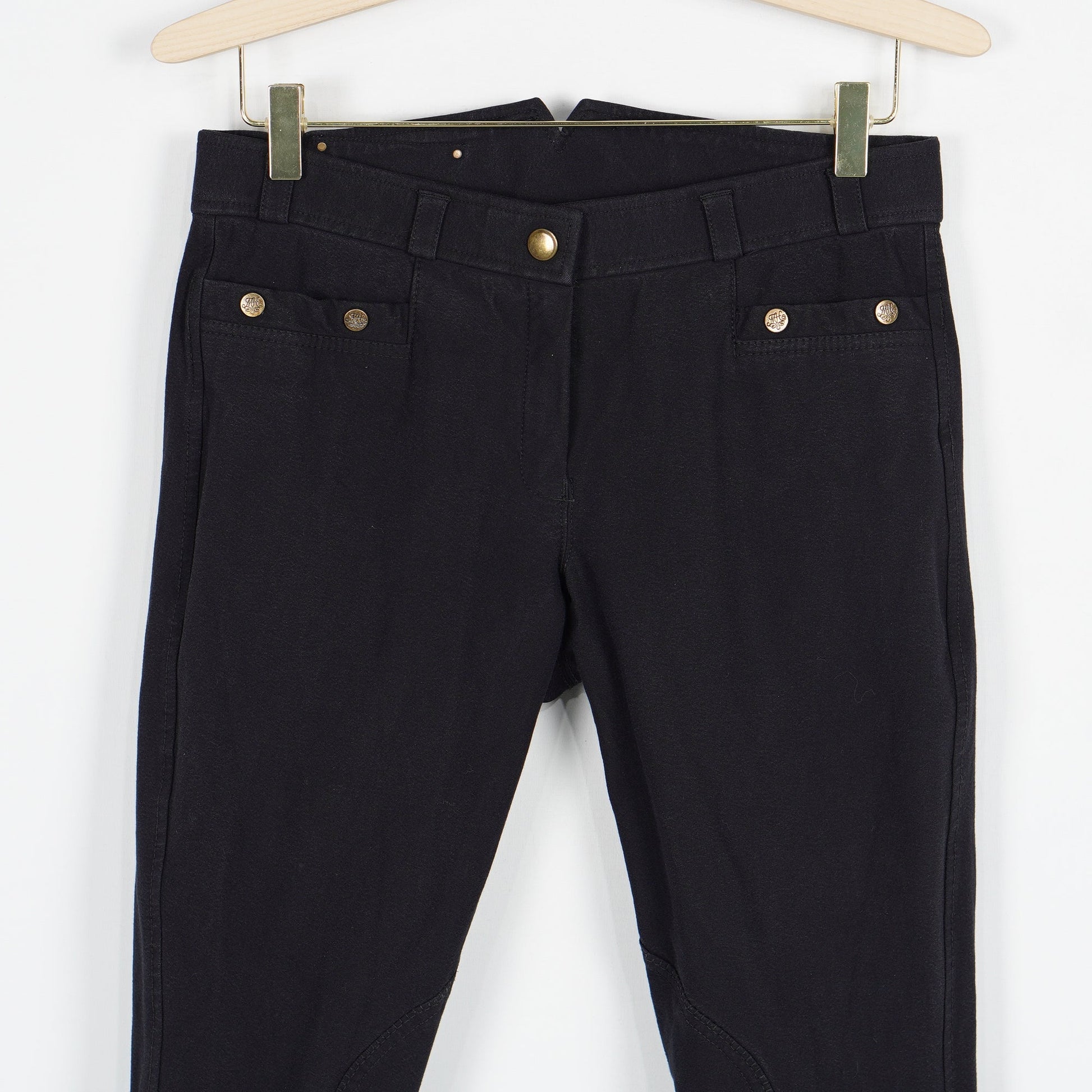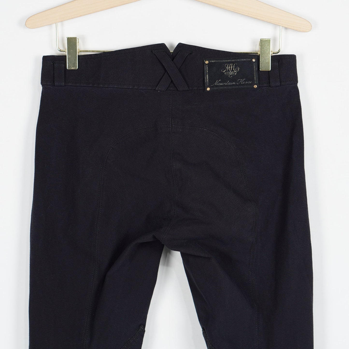 Svarta oskodda ridbyxor med kardborre vid benslut från MH. Ridbyxorna är i ett tydligt använt men okej skick.