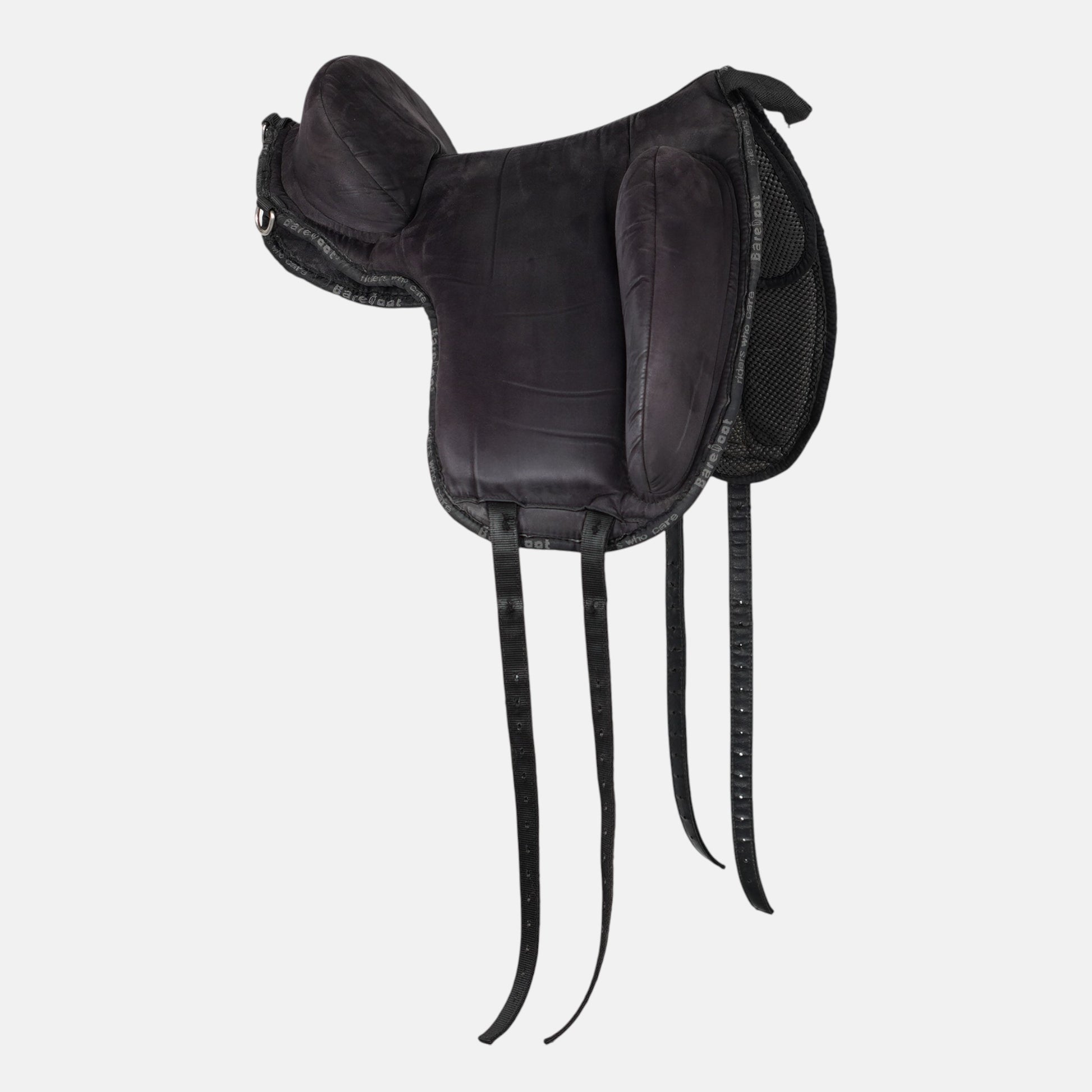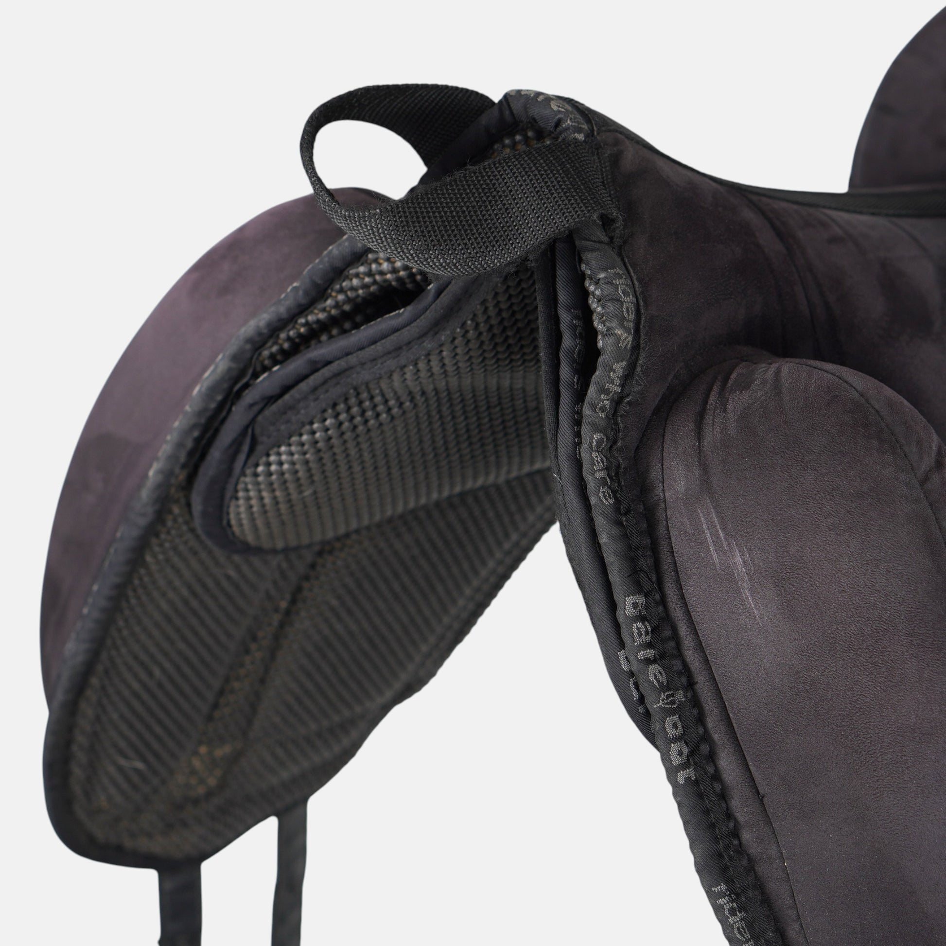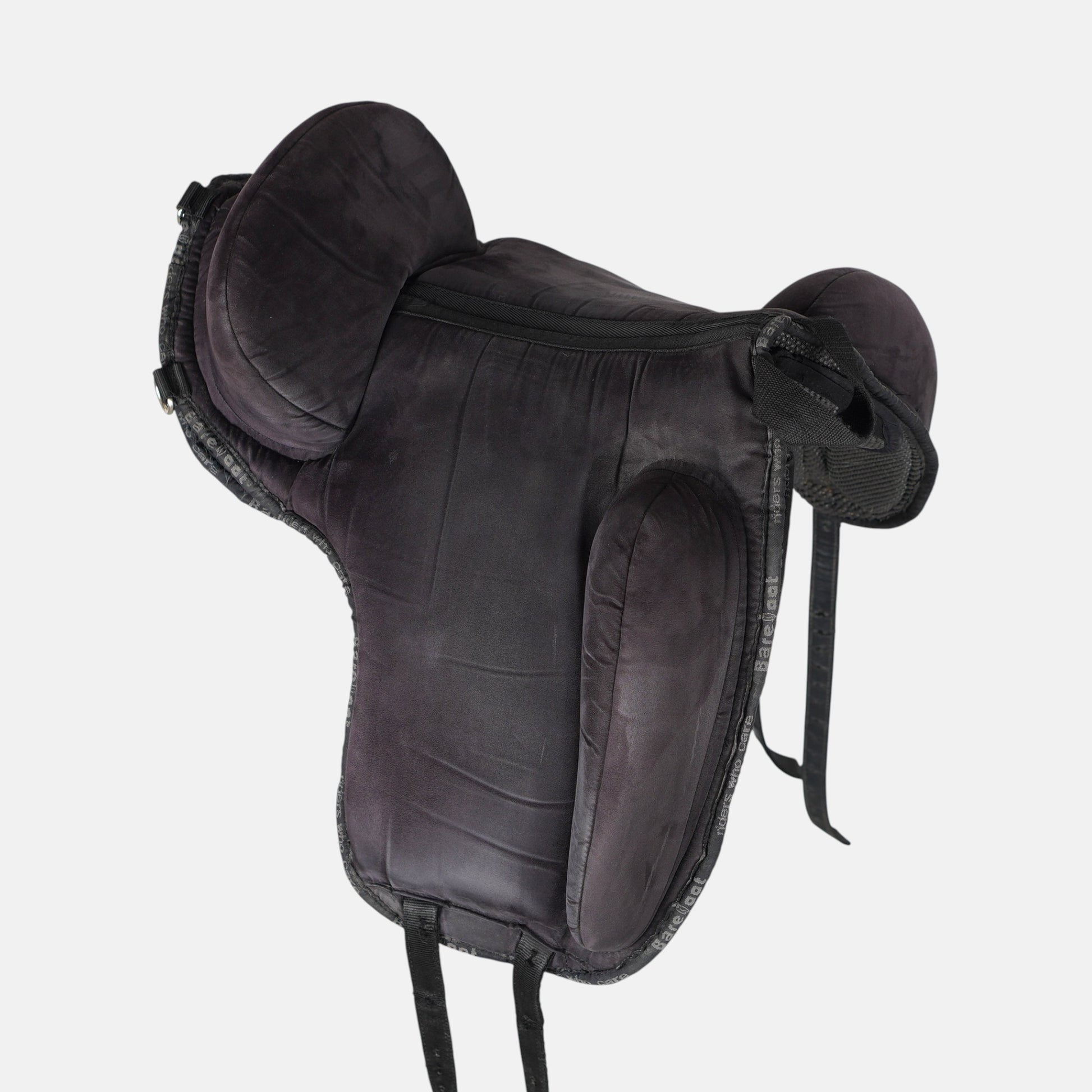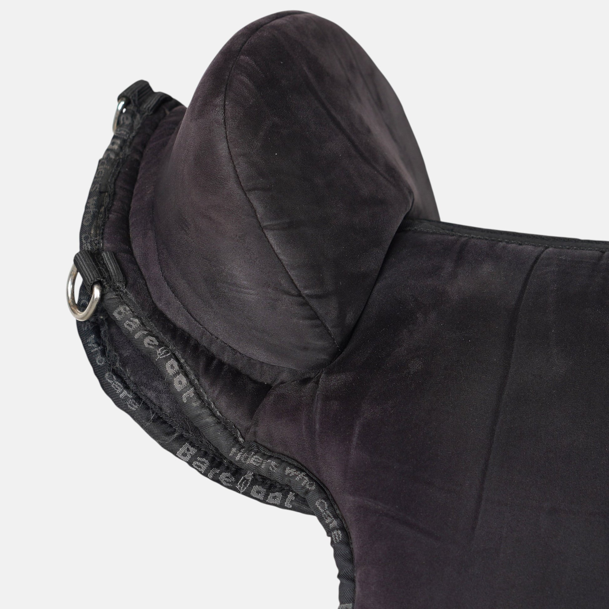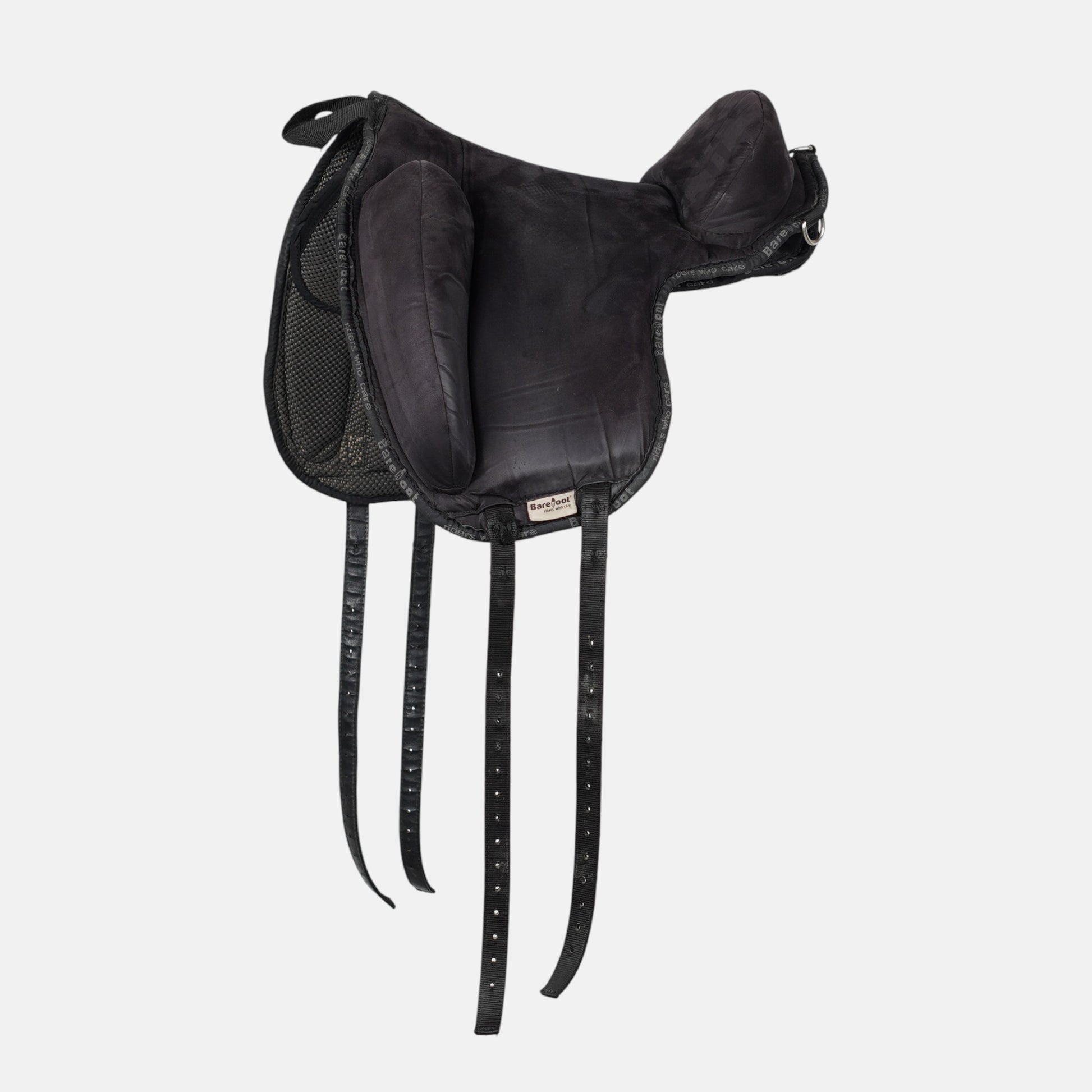Barbackasadel / barbackapadd Physio Support i svart från Barefoot. Barbackasadeln är i svart syntetmocka med mjuk gummi på undersidan och fasta knä- och ryggstöd. Är bra för hästar som har lite outvecklade eller sämre ryggmuskler eftersom padden har mycket bra tryckfördelning. Stropparna har fått sig några nya hål var av ena repat sig något, dock inget vi bedömer påverkar funktionen.