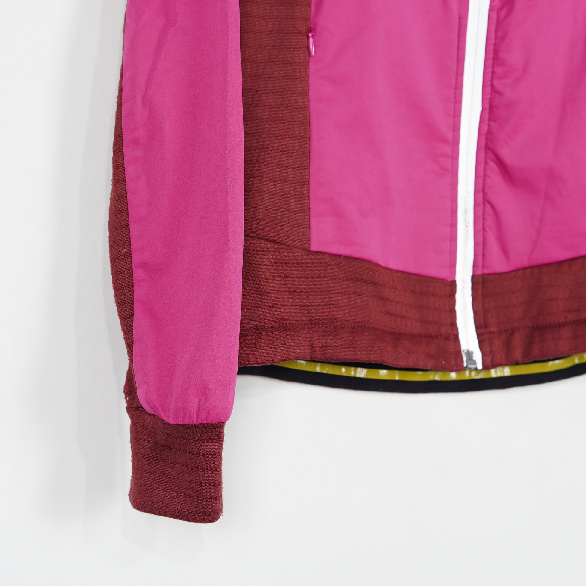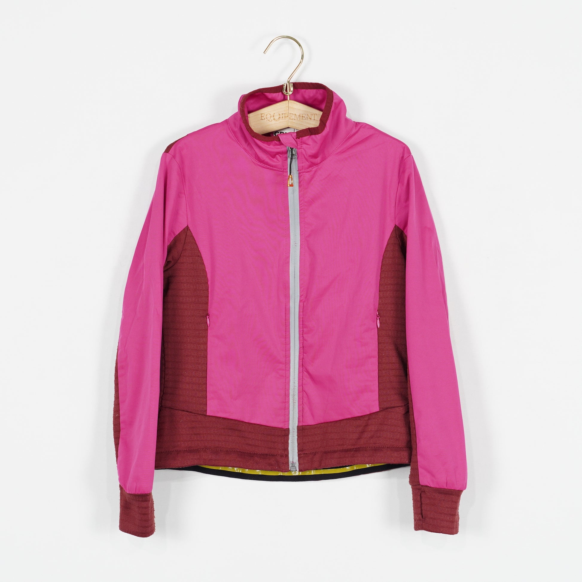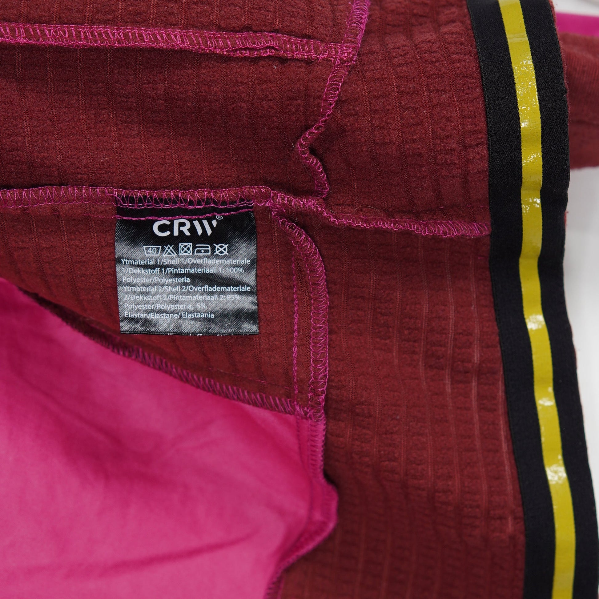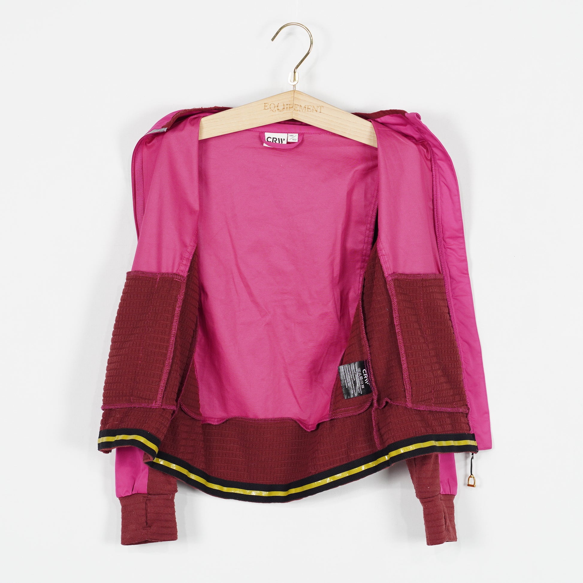 Ofodrad ridjacka i rosa och rött från CRW. Jackan har reflexdetaljer vid dragkedjan samt silikon på insidan av midjan för att hålla den på plats under ritten! Jackan är i ett tydligt använt skick och har blivit lite noppig på det vinröda, se bild.