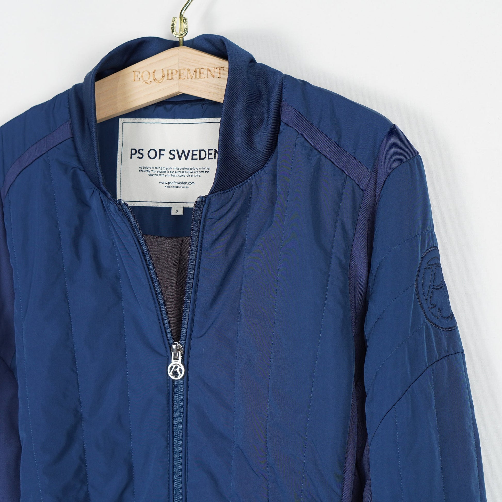 Ridjacka från PS of Sweden i en marinblå färg med lätt fodring framtill och bak för extra värme utan att kännas tung. Ärmarna är i ett tunnare och stretchigt material som ger rörelsefrihet och komfort både i stallet och på ridturen. Jackan är utrustad med tvåvägsdragkedja och har praktiska fickor med dragkedja.