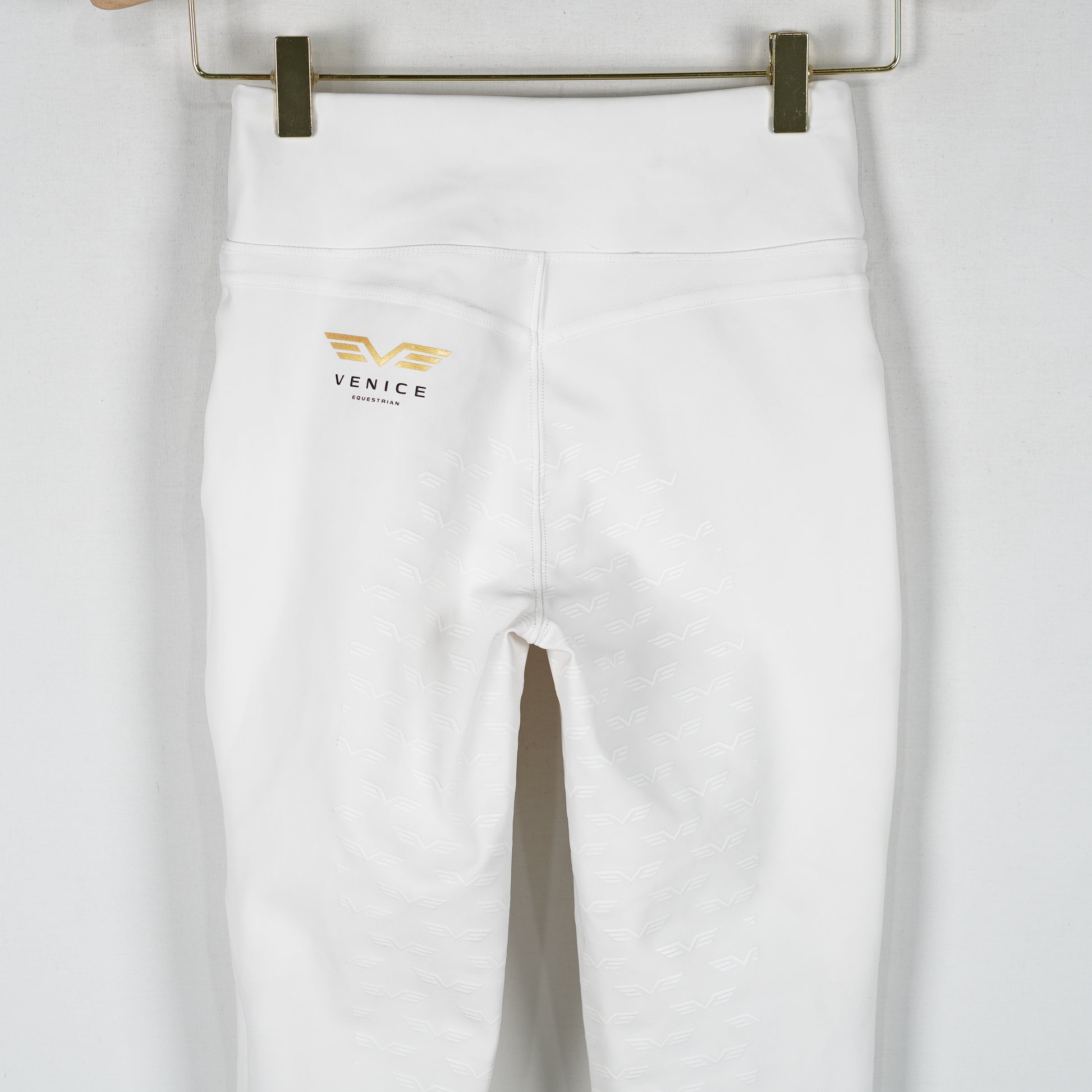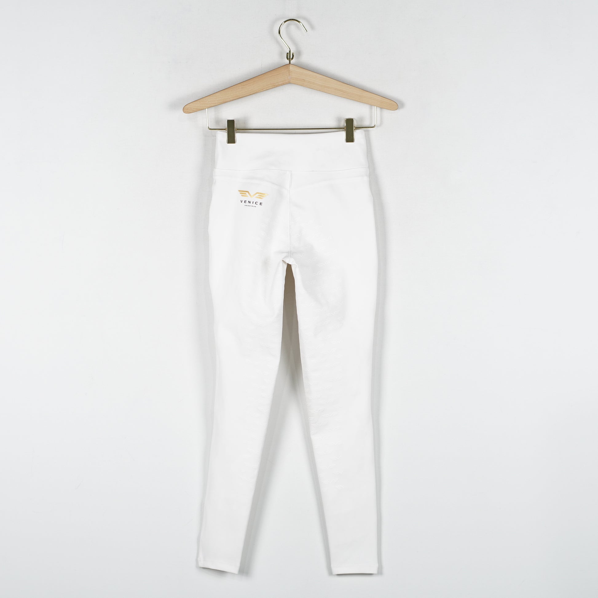 Vita ridleggings helskodda med silikon och dubbla fickor. Leggingsen är i ett kraftigare elastiskt material och har en normal till hög midja.