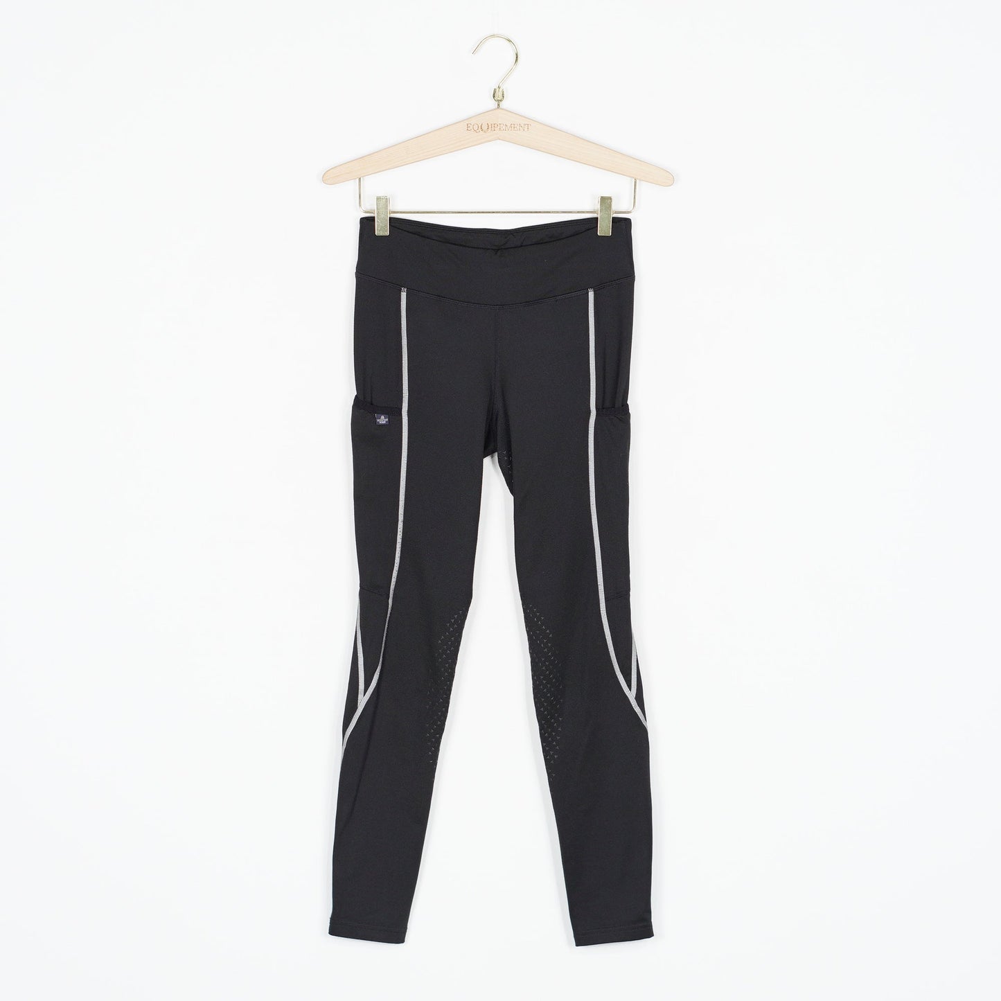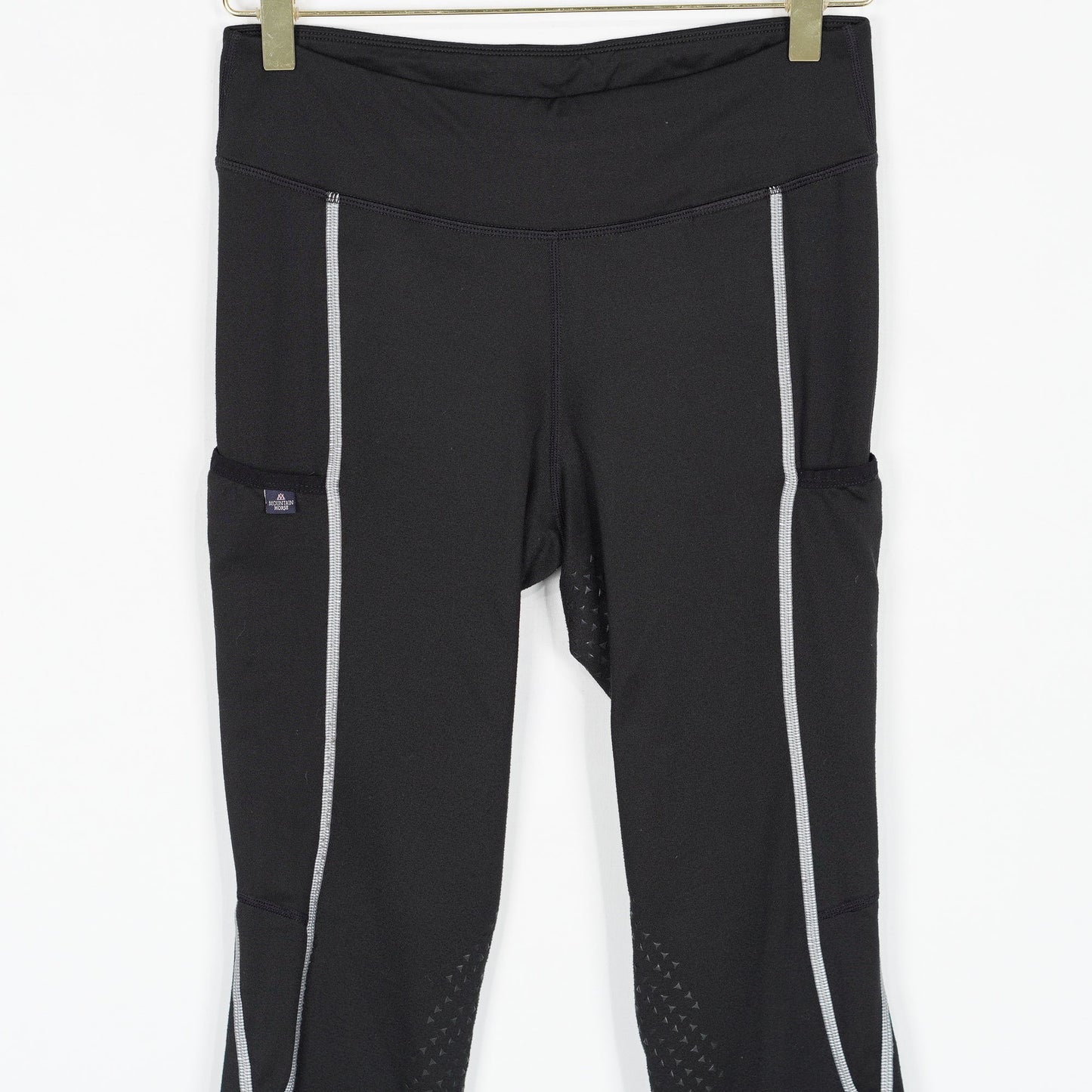 Svarta ridleggings från Mountain Horse i stretchig 4-vägsstretch med diskret silikonhelskoning och reflexdetaljer. Mobilficka på båda låren och fleecefodrad insida.