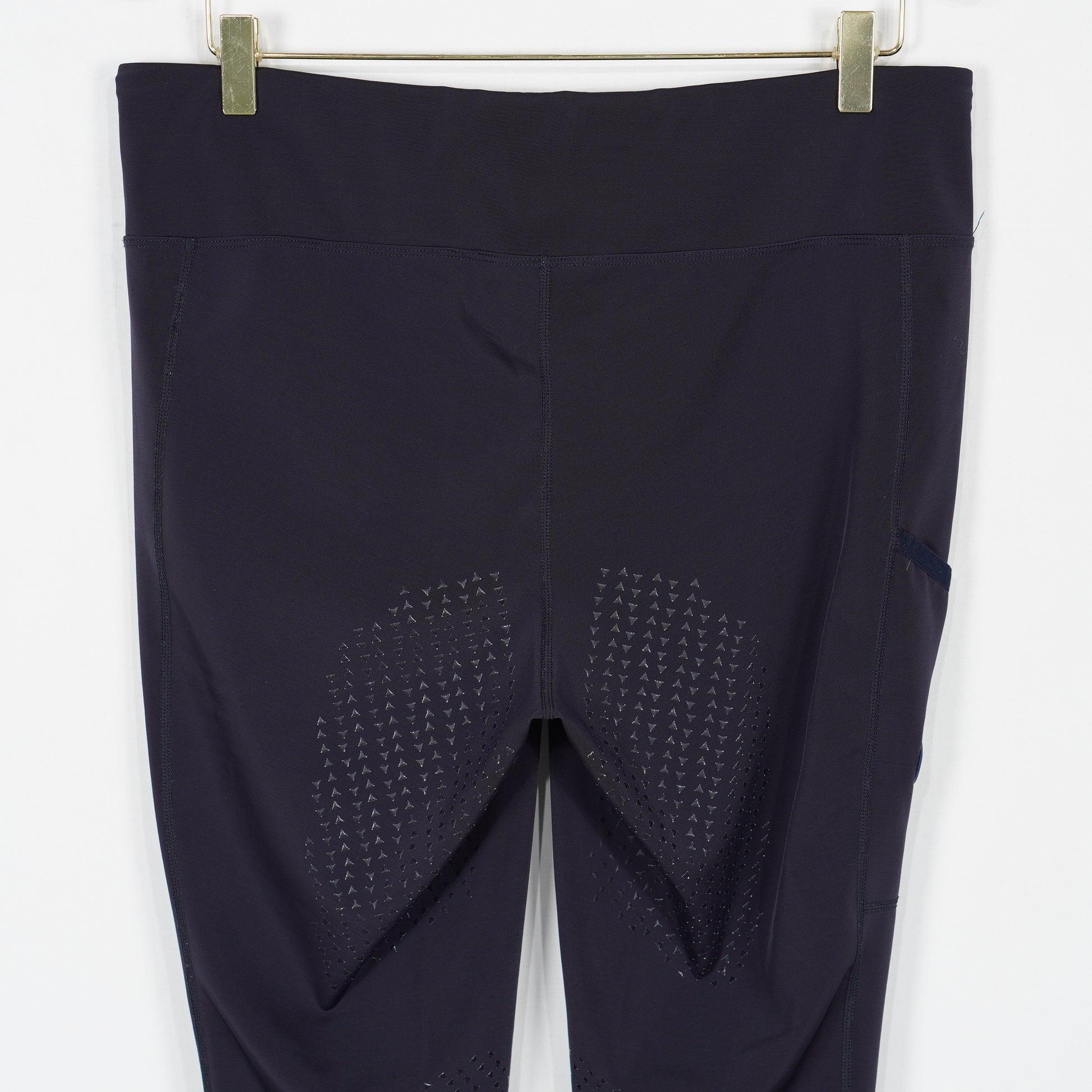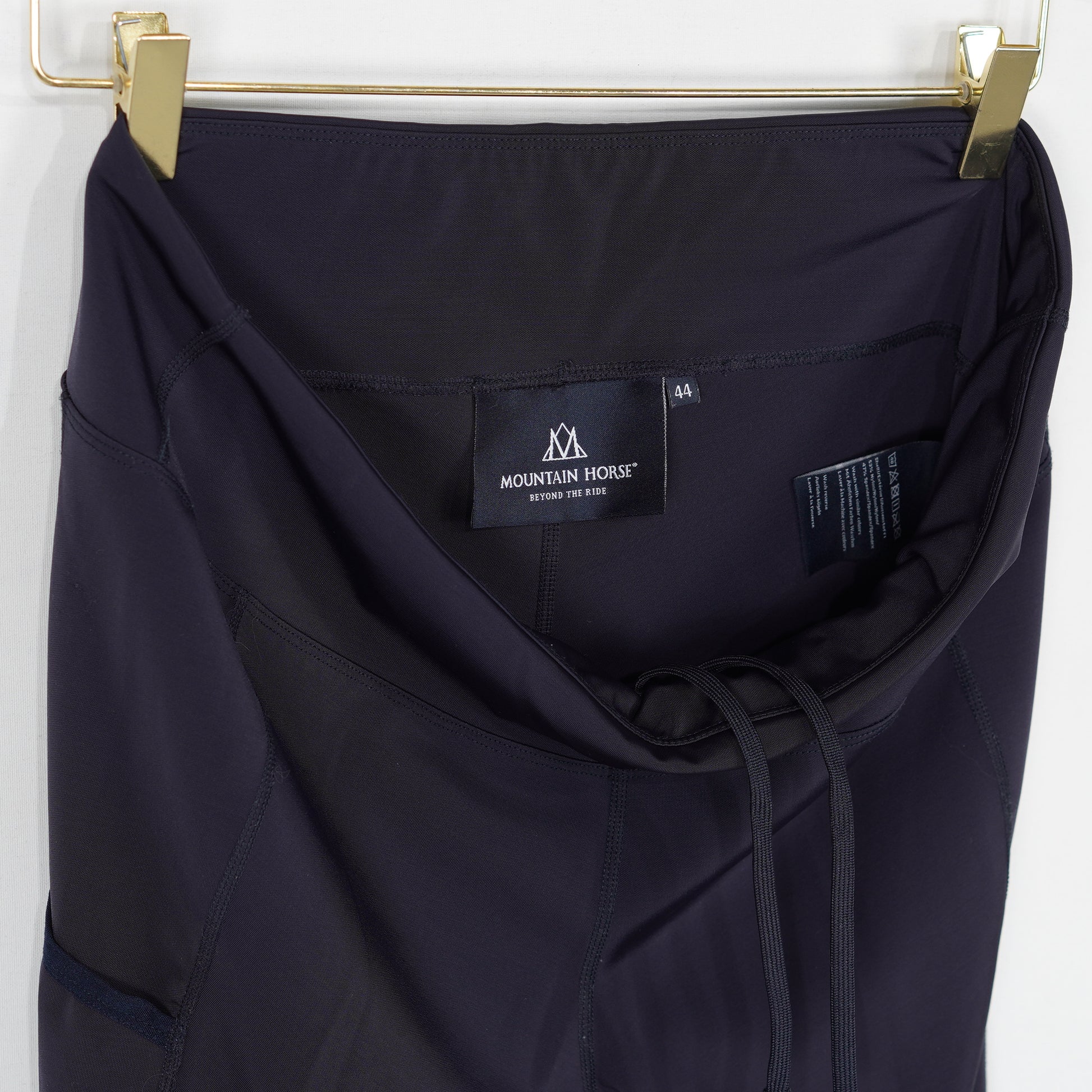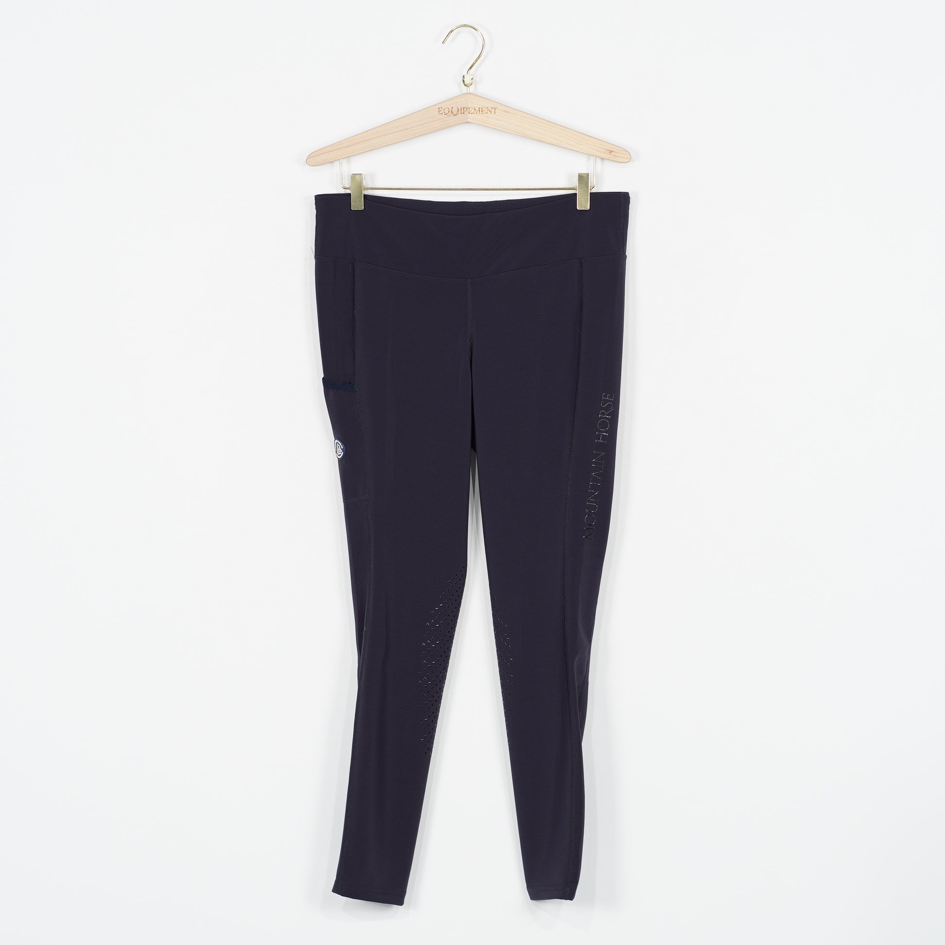 Tunna och stretchiga ridleggings i blått, helskodda med silikon och mobilsficka från Mountain Horse. Leggingsen har en normal till hög midja, samt snörning.