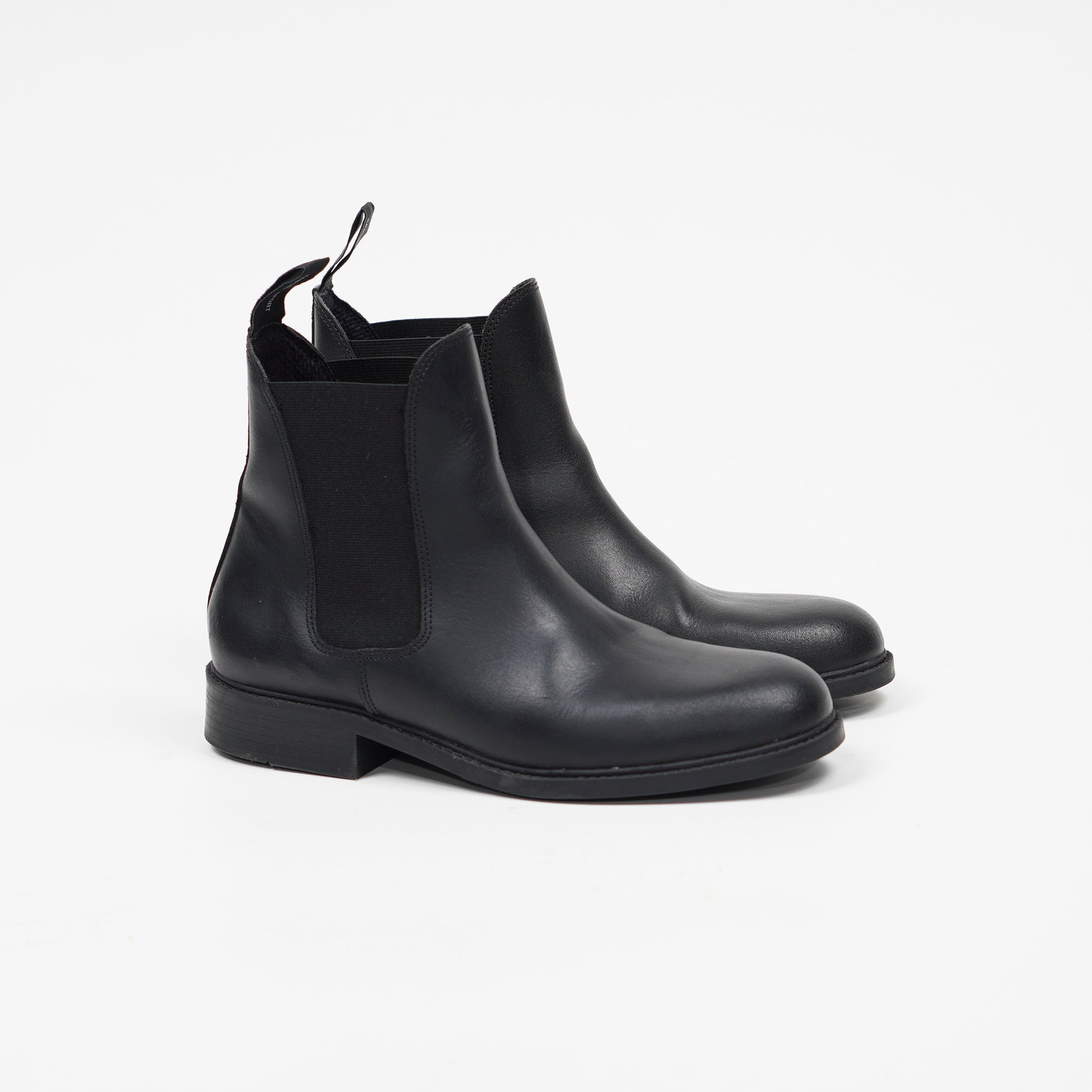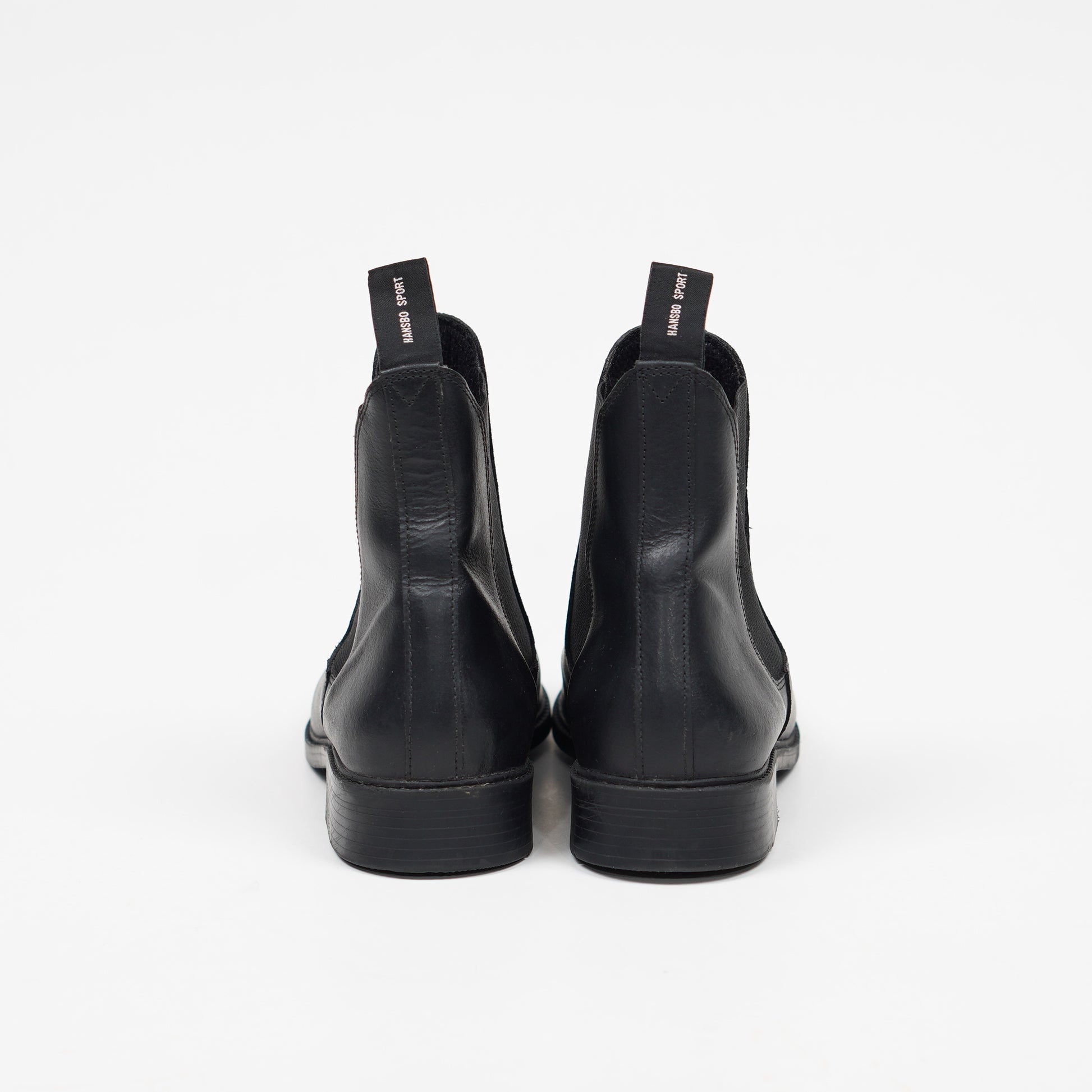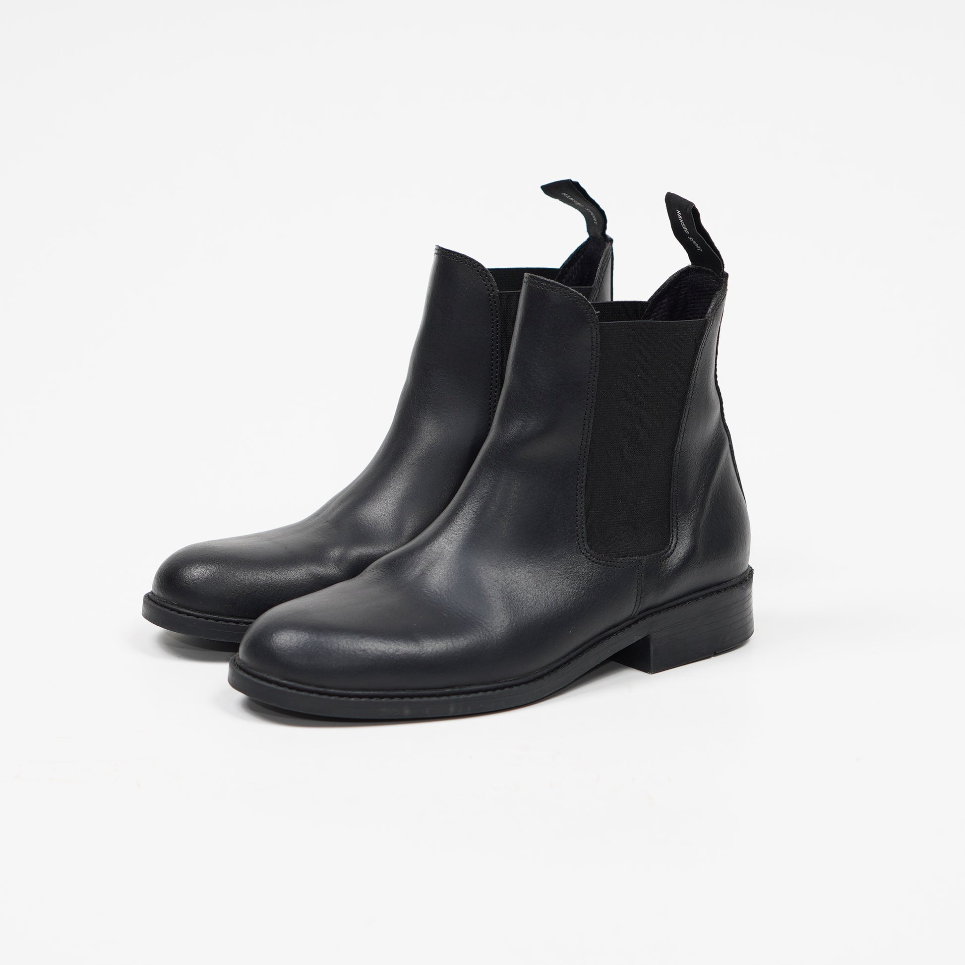 Svarta ridskor i läder med elastiska paneler och klack från Hansbo Sport.
