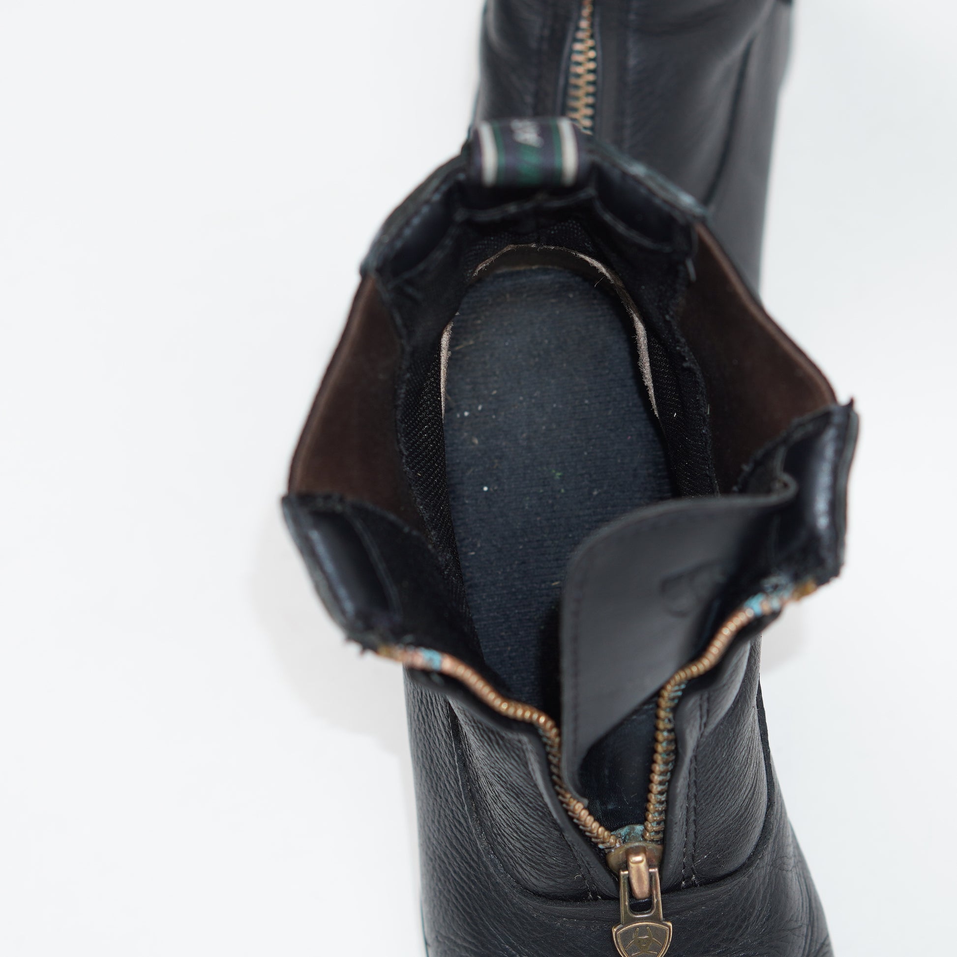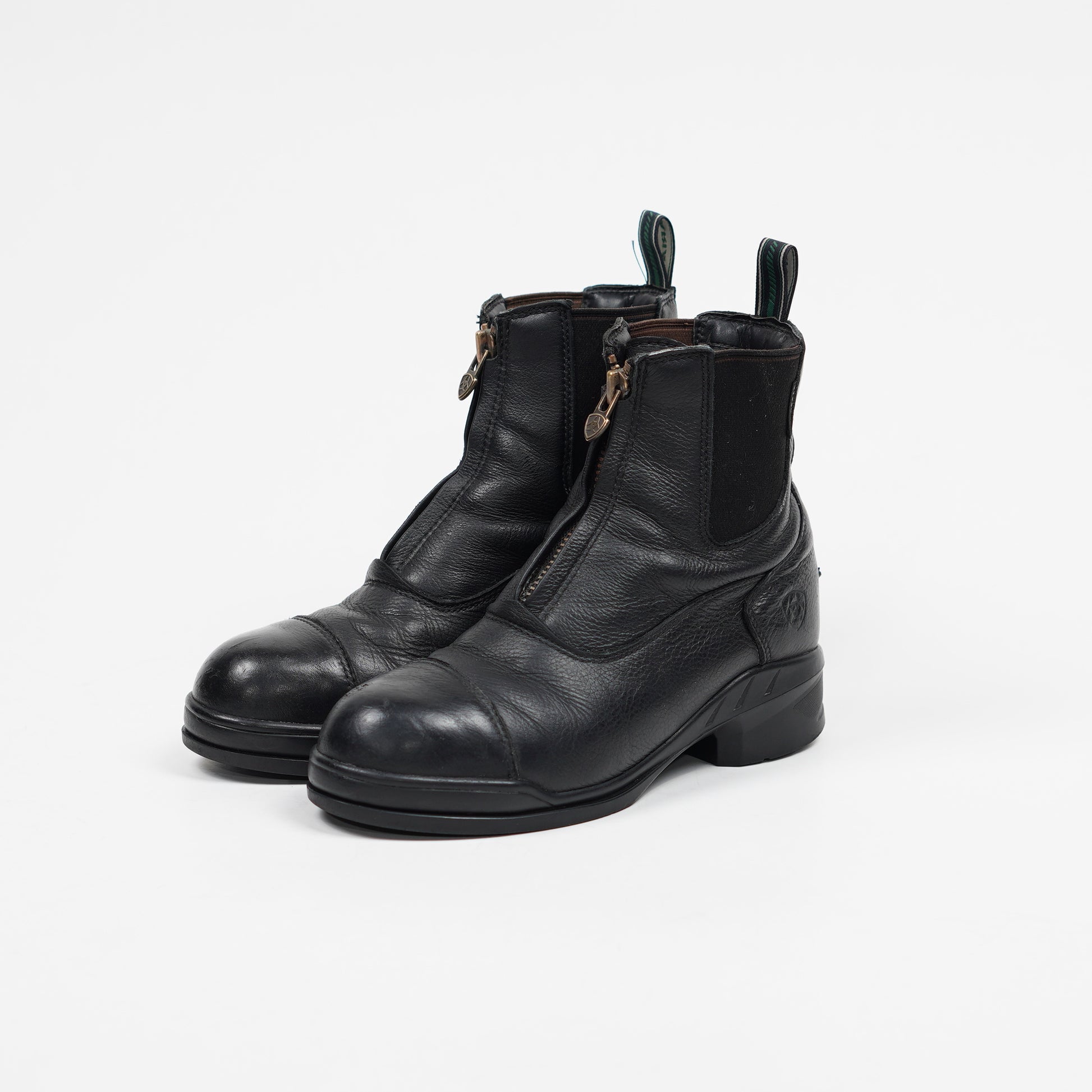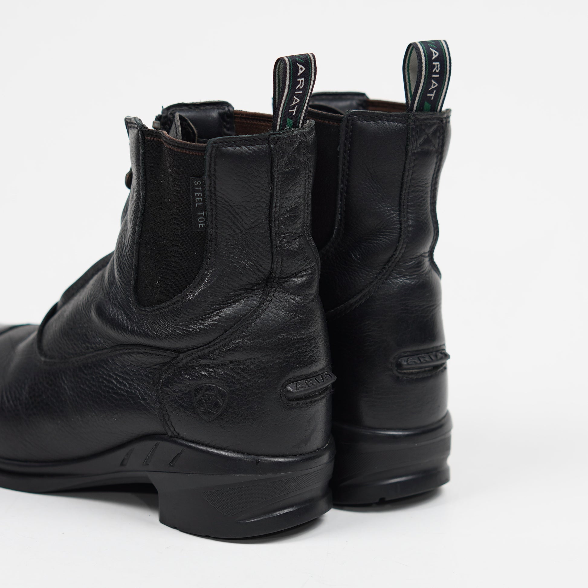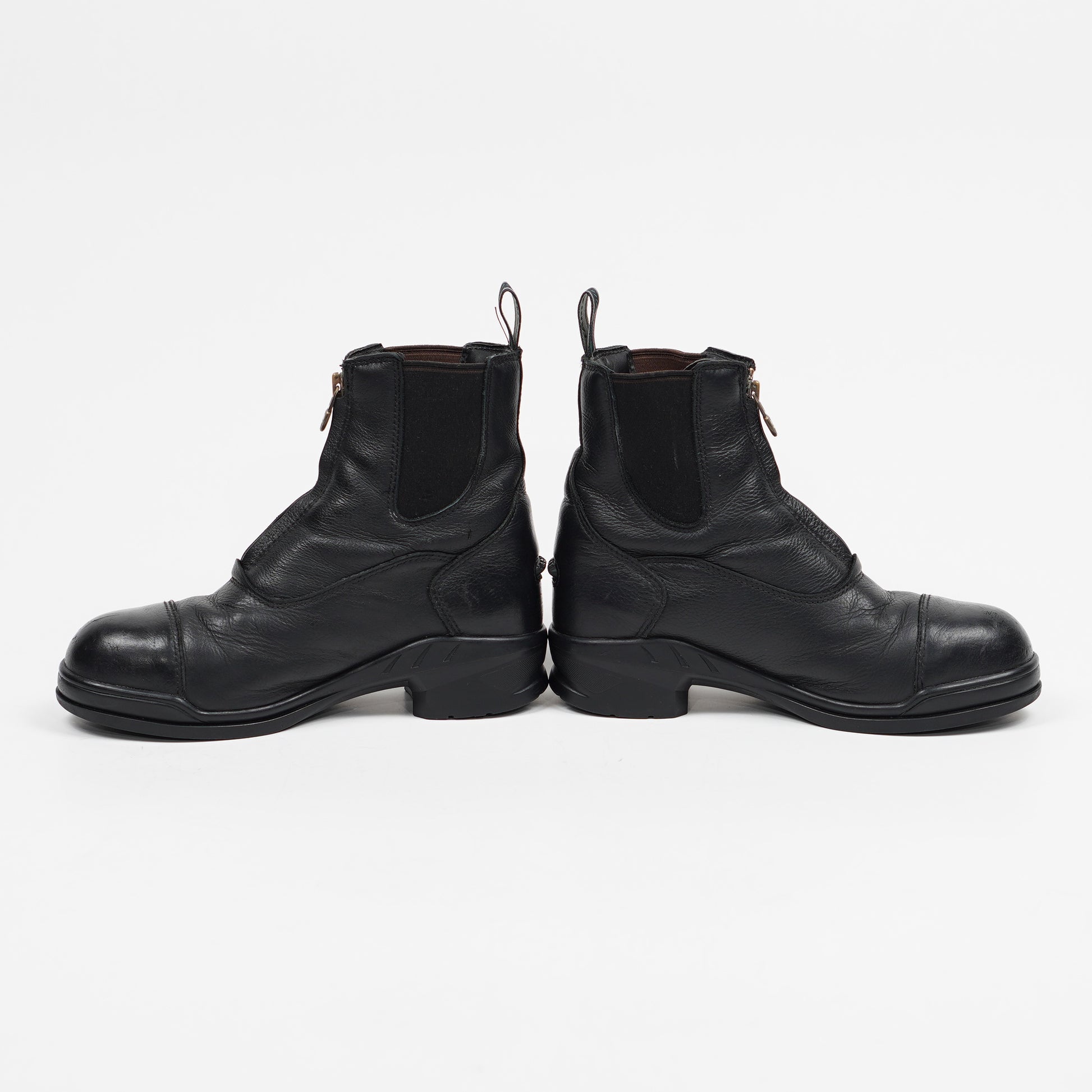 Ridskor med stålhätta i svart läder med dragkedja fram och elastiska paneler på sidorna.