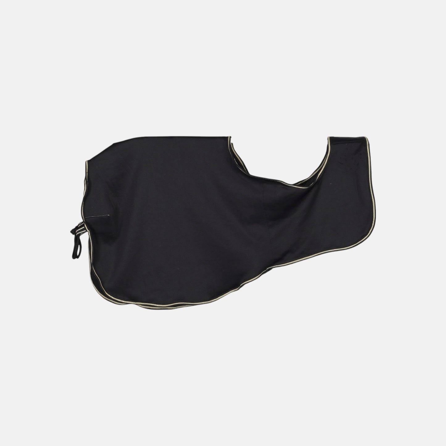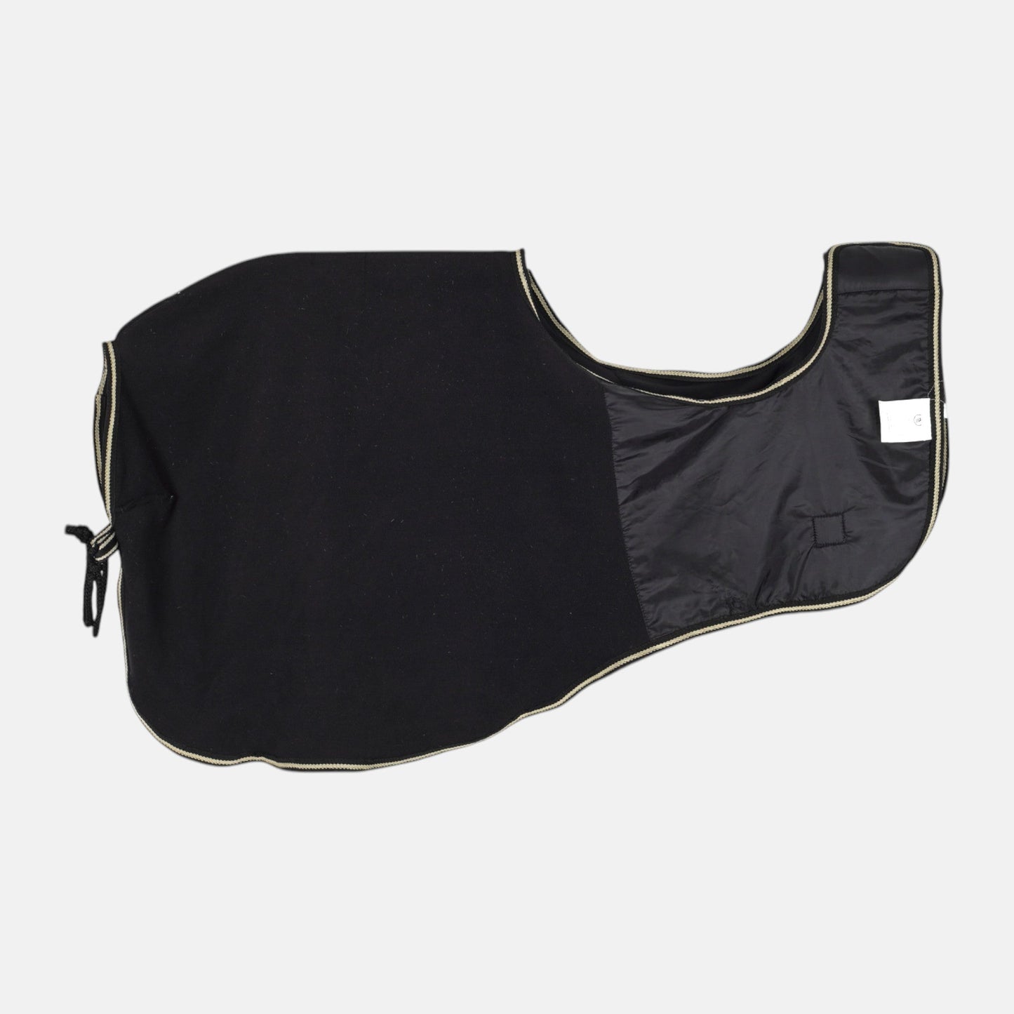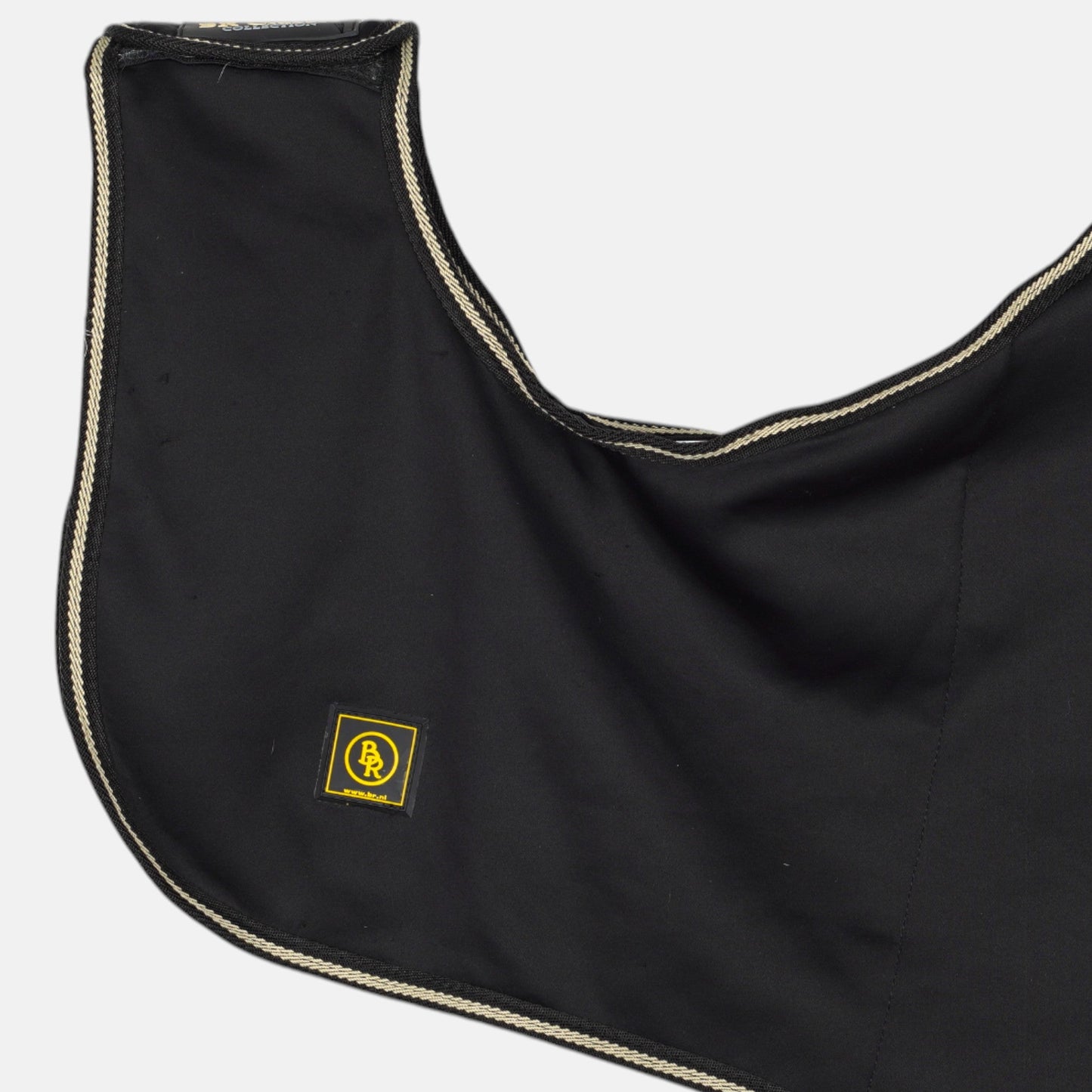 Mjukt ridtäcke i fleece från BR med kardborre framtill som då fästs framför sadeln. Täcket är i ett använt en bra skick. Envisa hårstrån finns kvar på insidan.