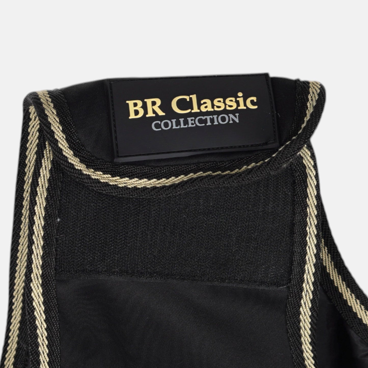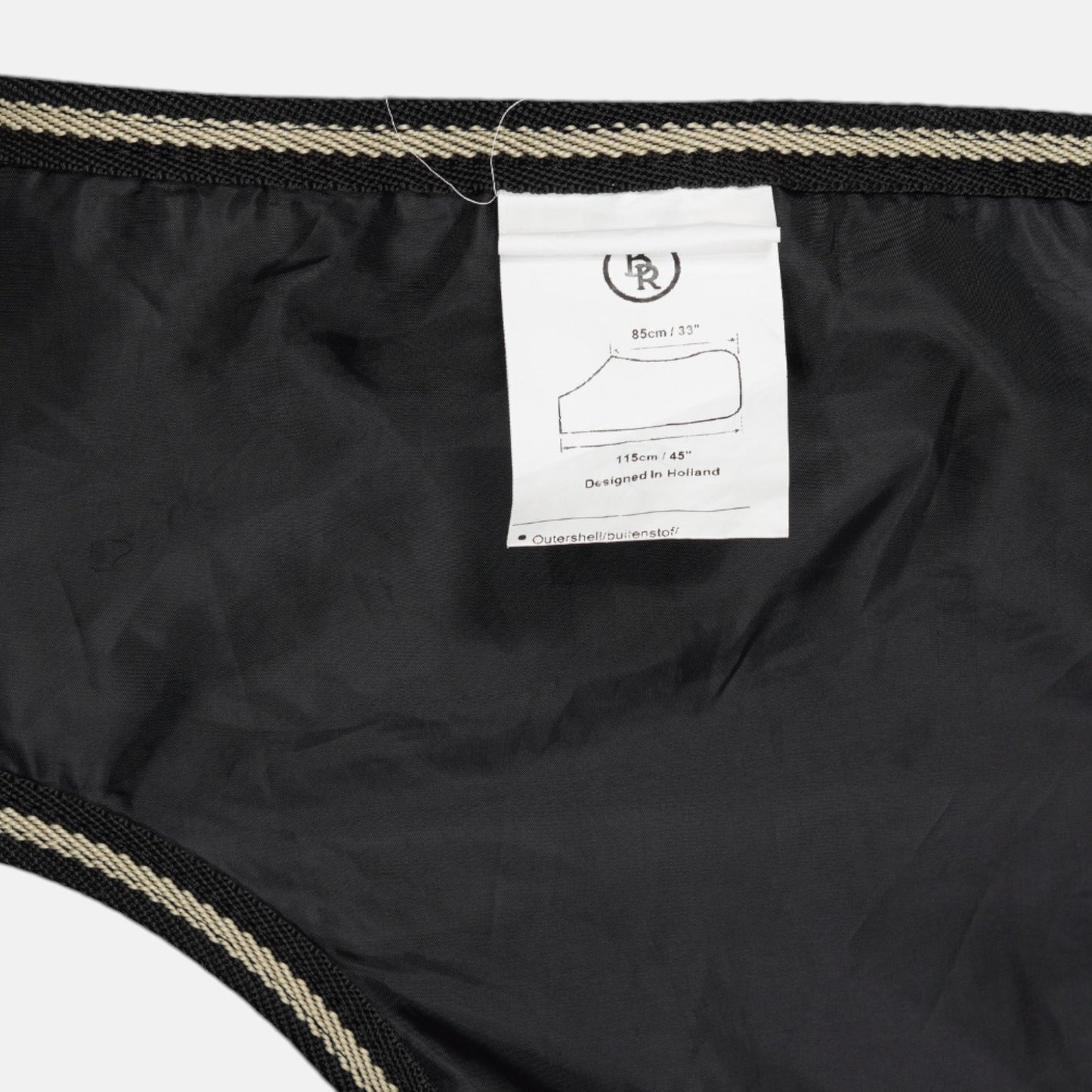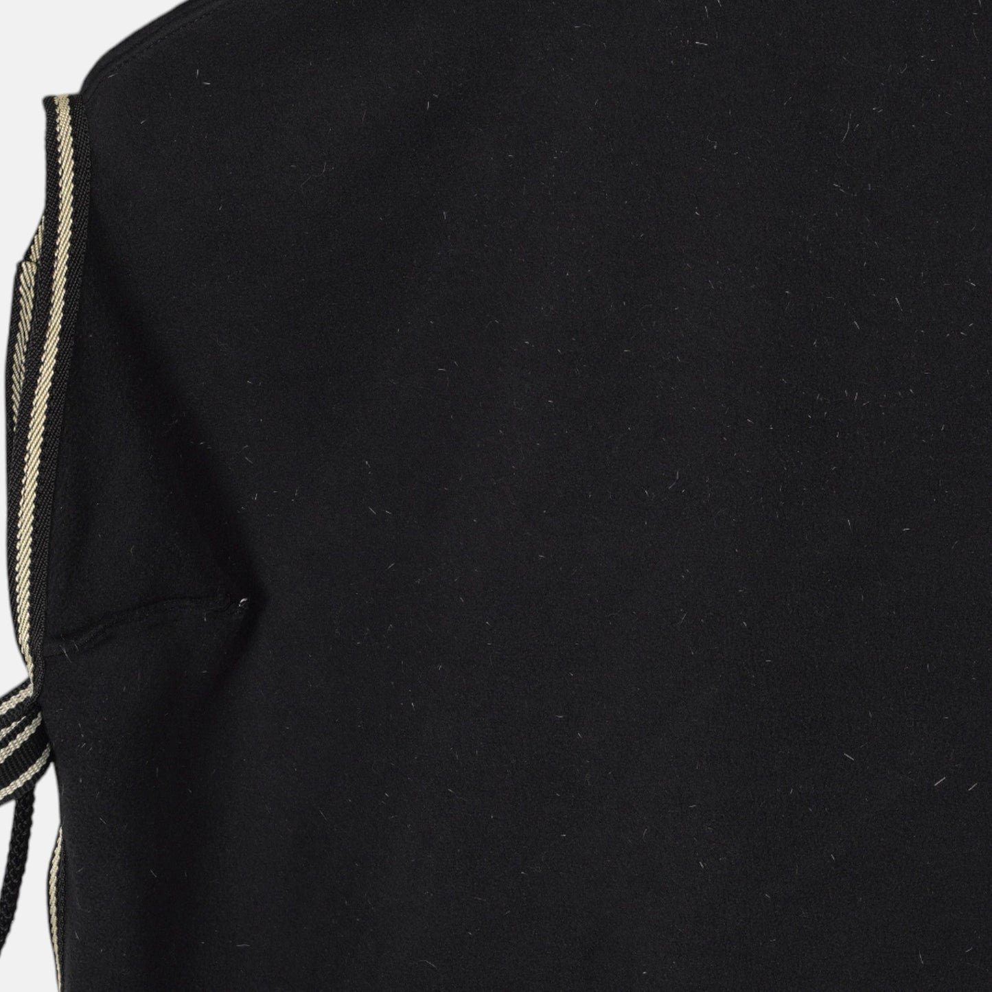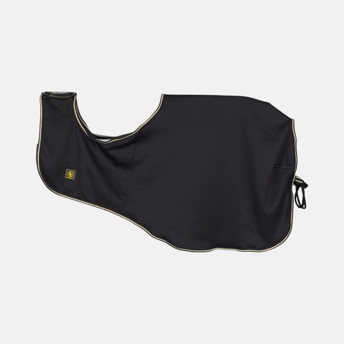 Mjukt ridtäcke i fleece från BR med kardborre framtill som då fästs framför sadeln. Täcket är i ett använt en bra skick. Envisa hårstrån finns kvar på insidan.