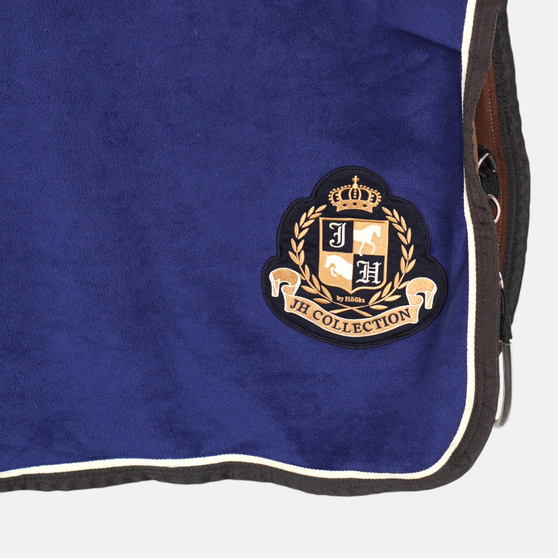 Blått ridtäcke från JH fleece och logga baktill.