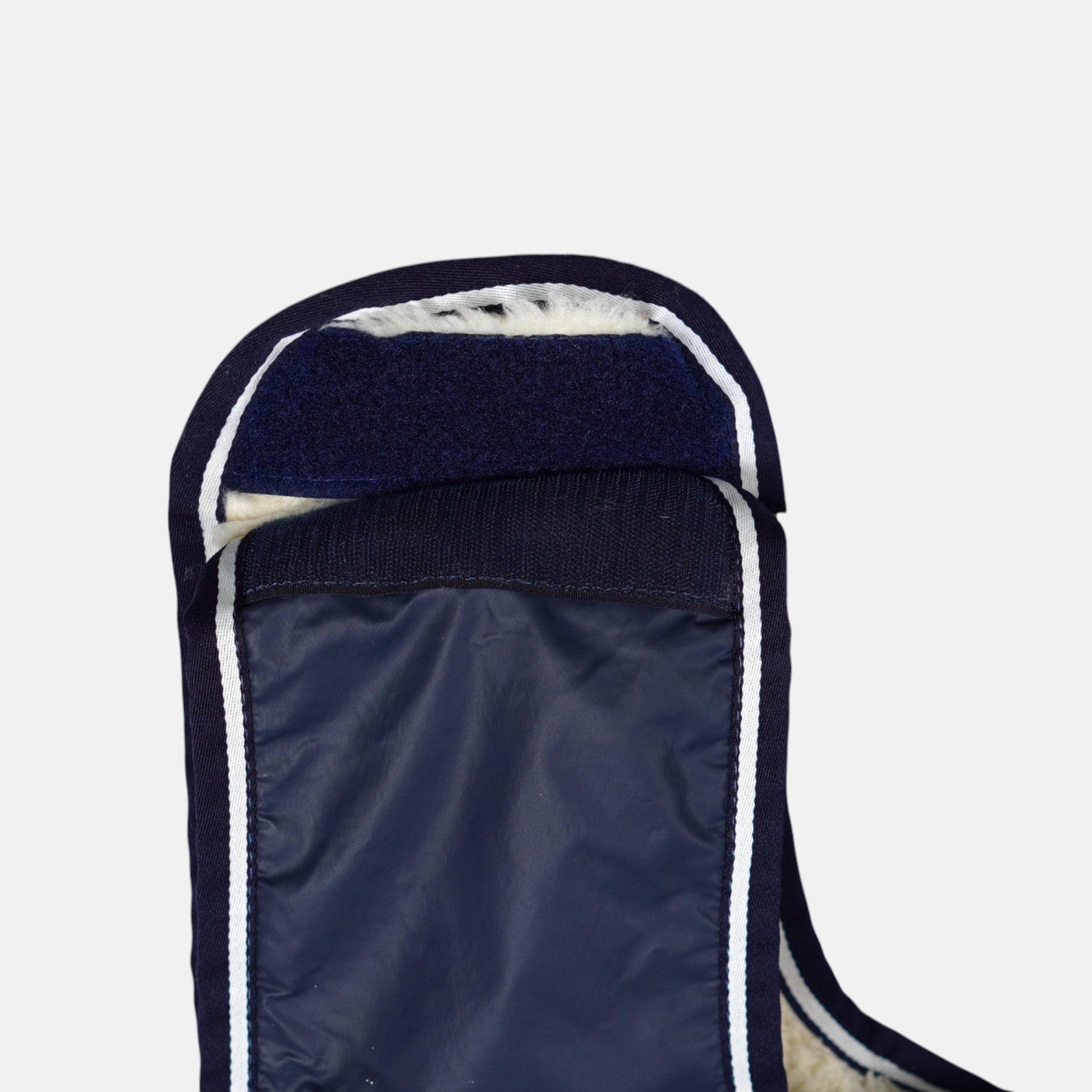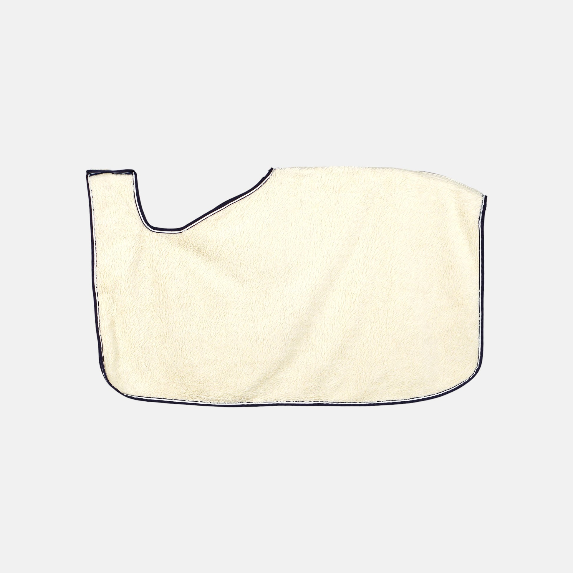 Mysigt och praktiskt ridtäcke med teddyfoder på insidan och vattentät utsida, från Equiline. Fästs framför sadeln med kardborre. Saknar storleksmärkning, men vi mäter det till ett storlek Full.