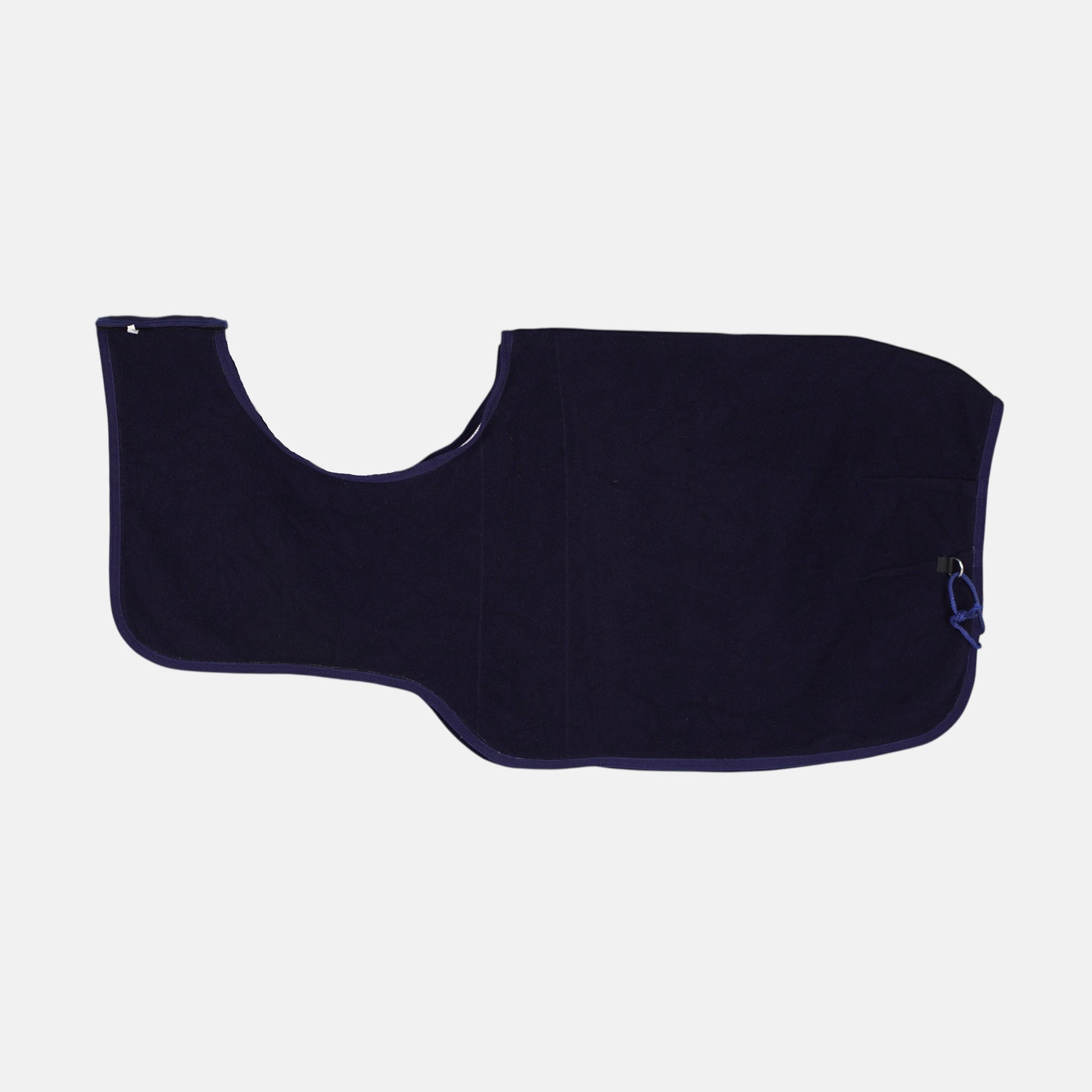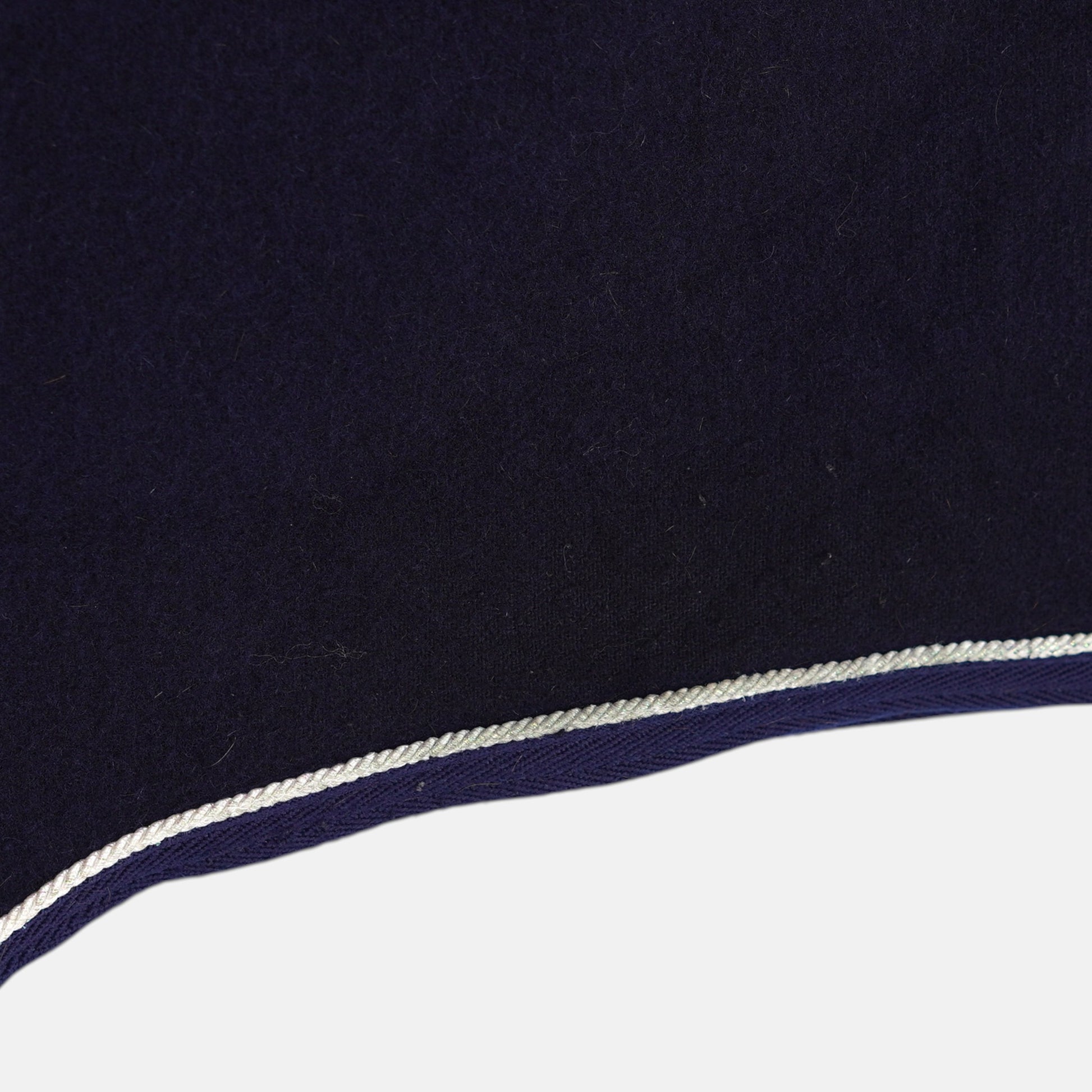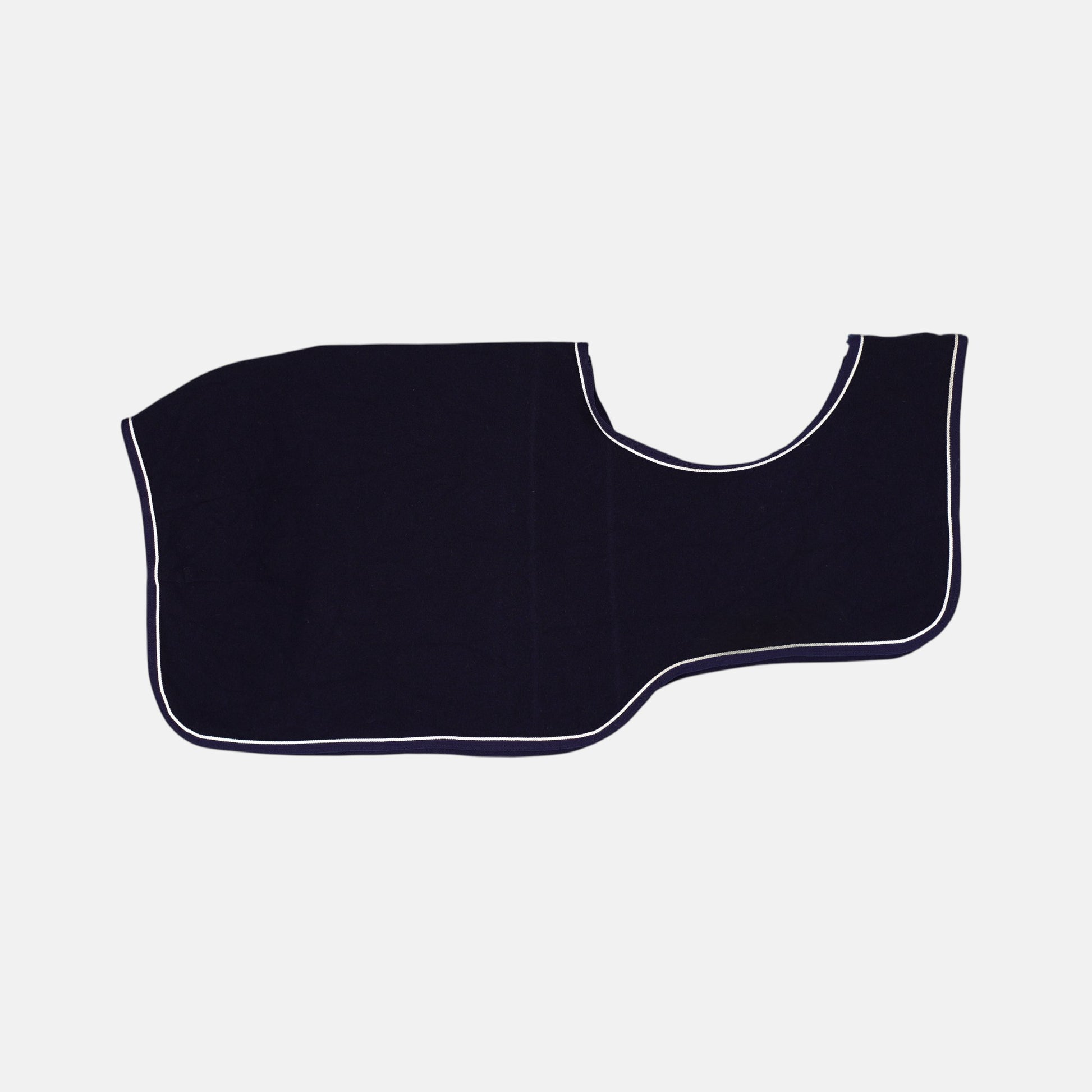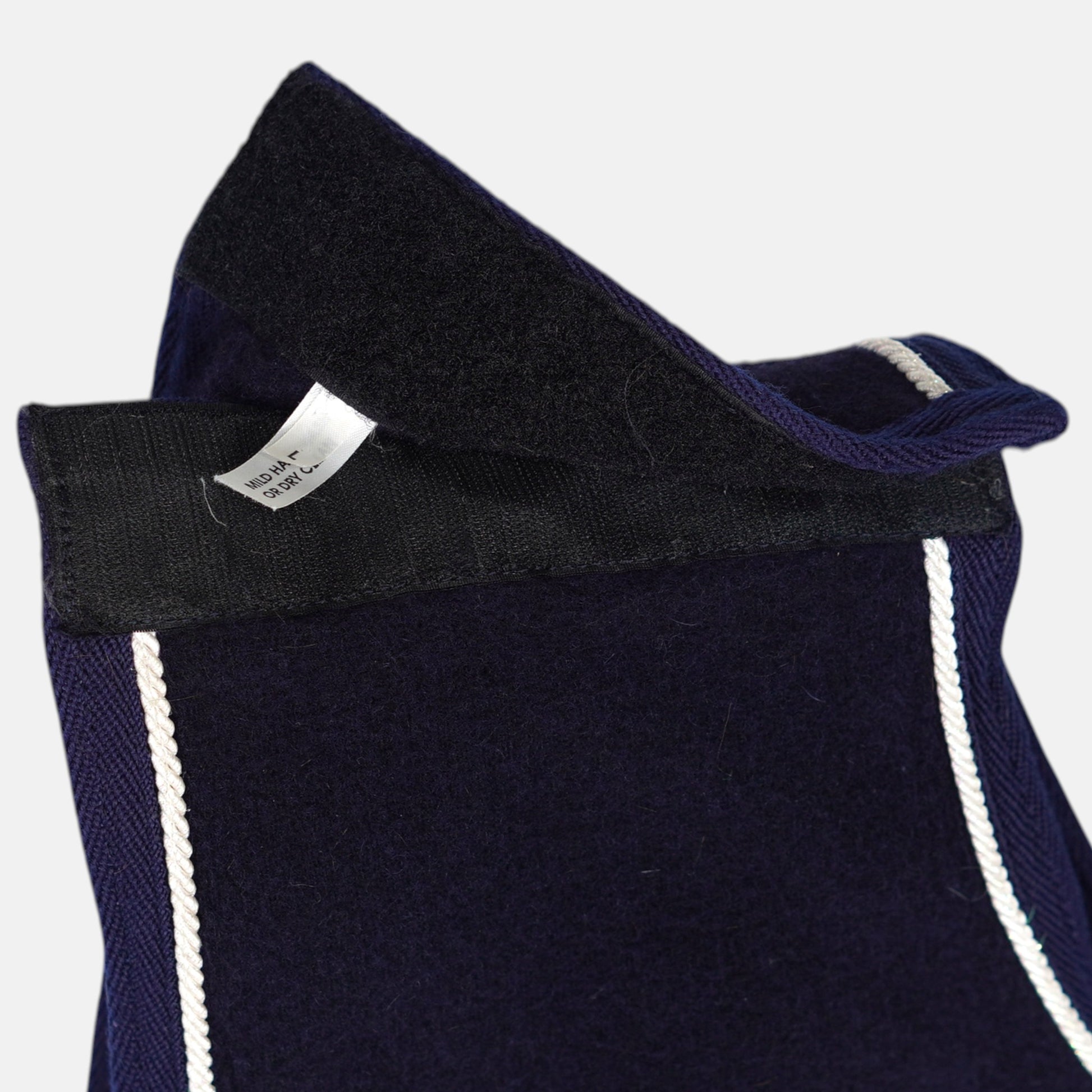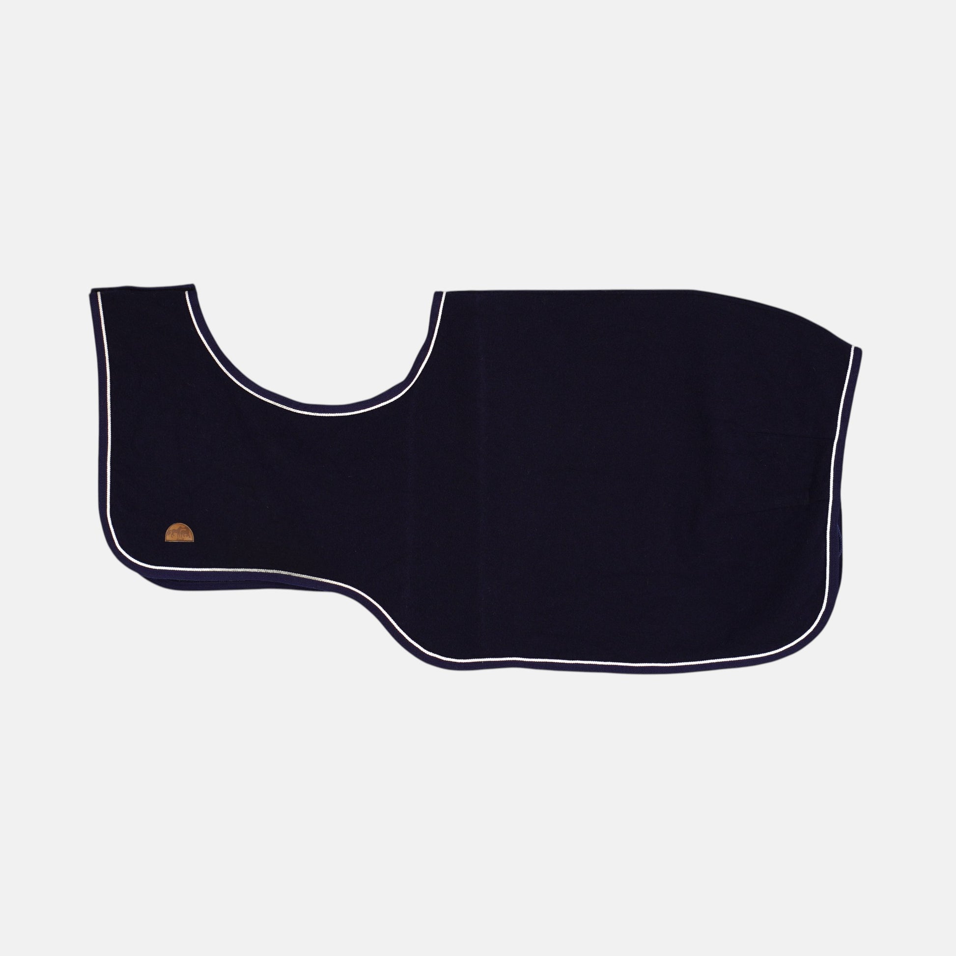 Blått ridtäcke i ull med vit-glittrig passpoal och kardborrefäste framtill från Mias RS.