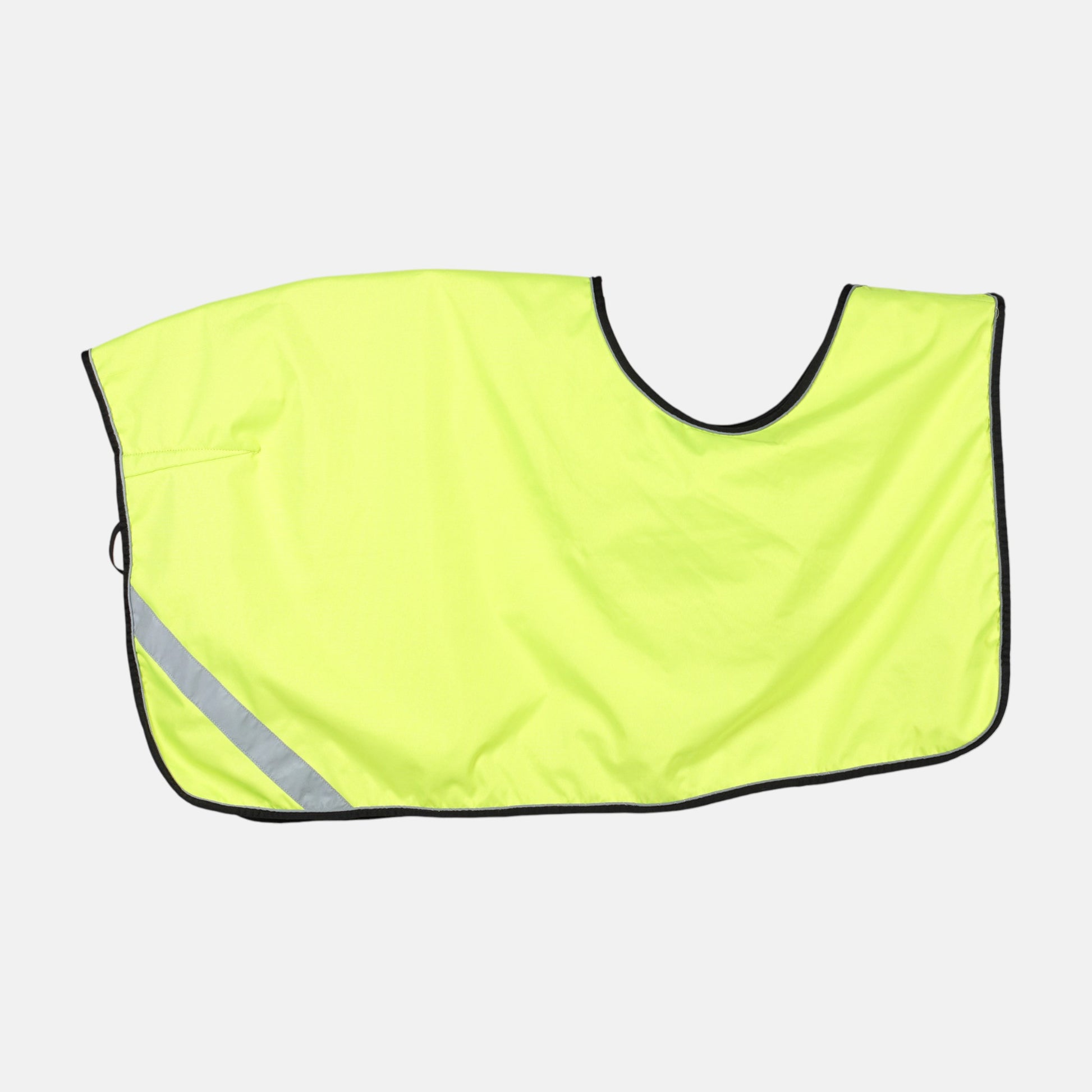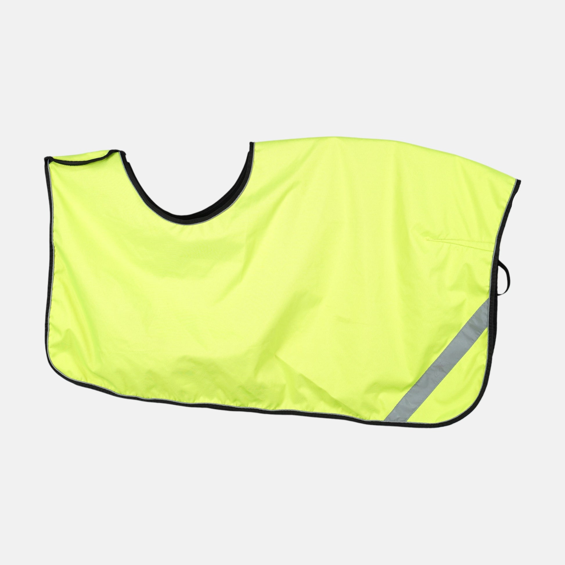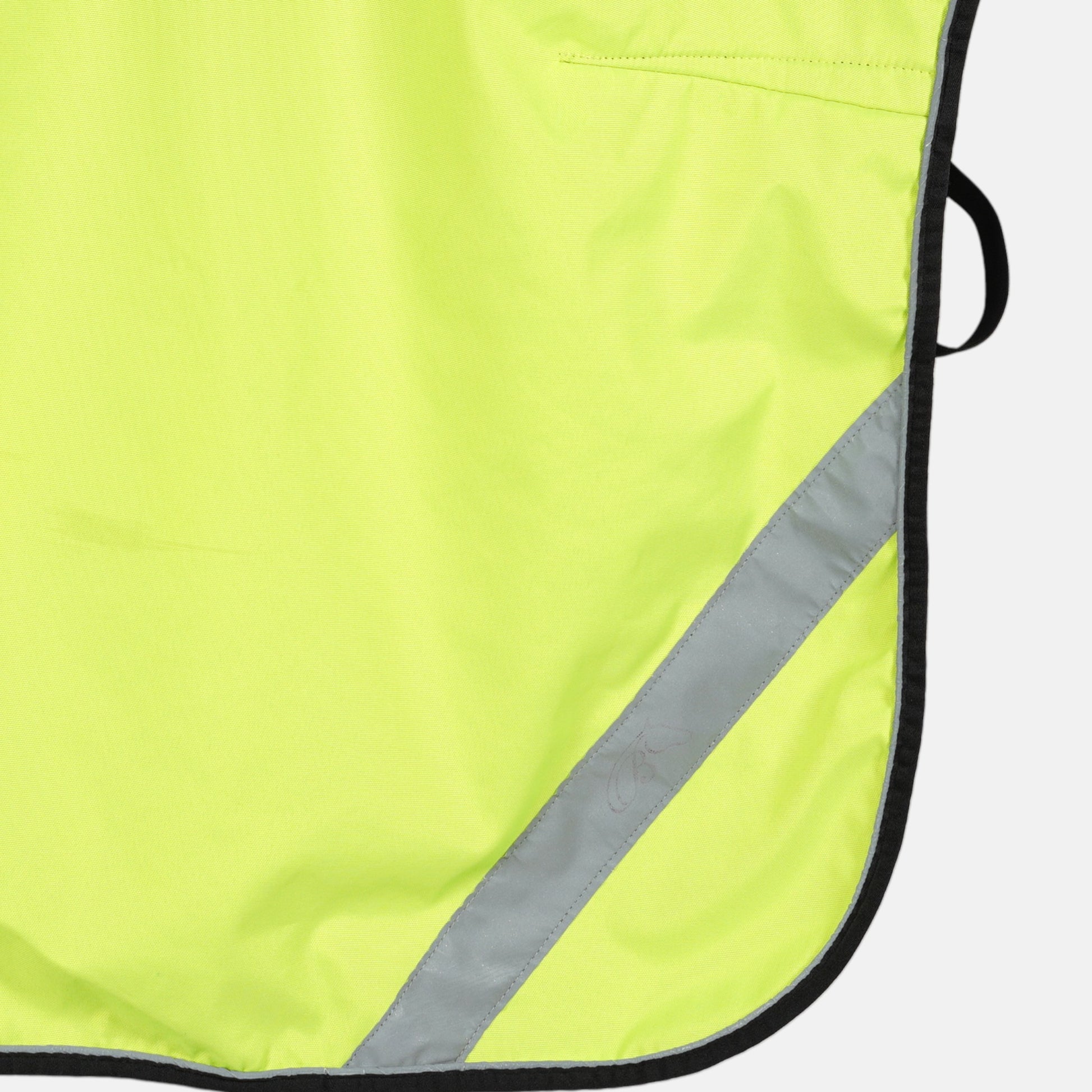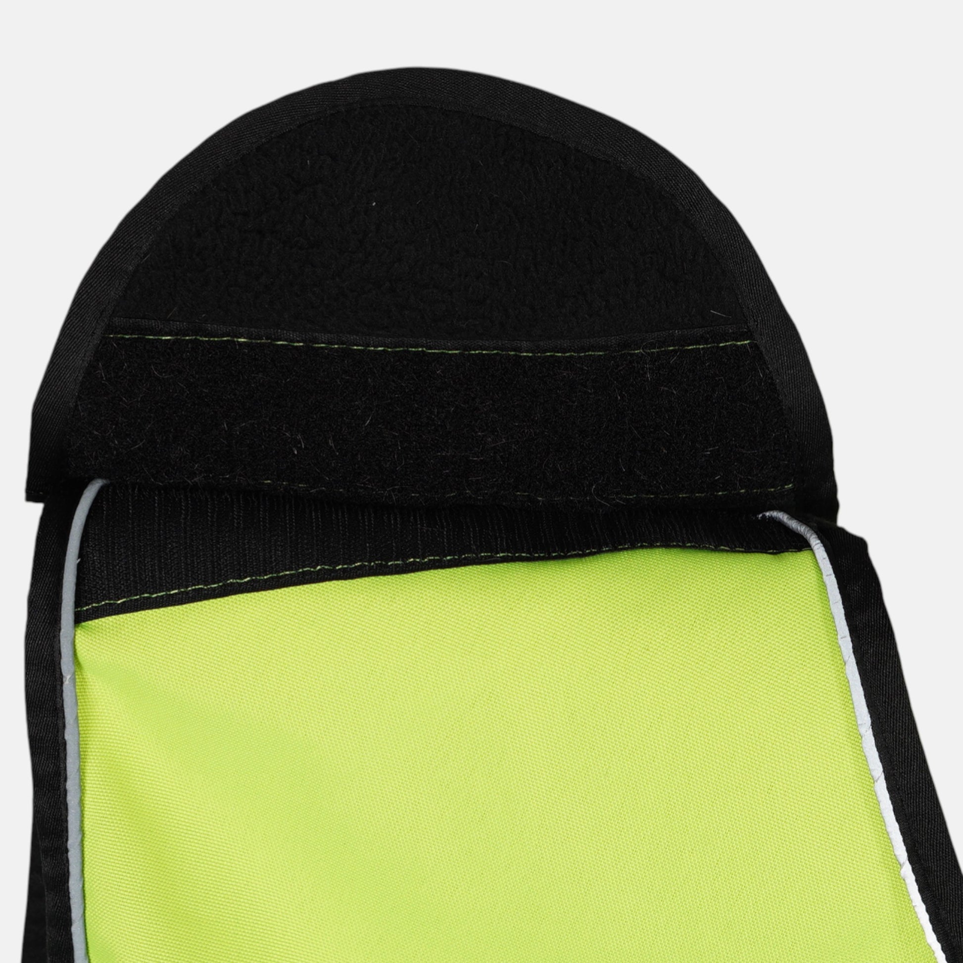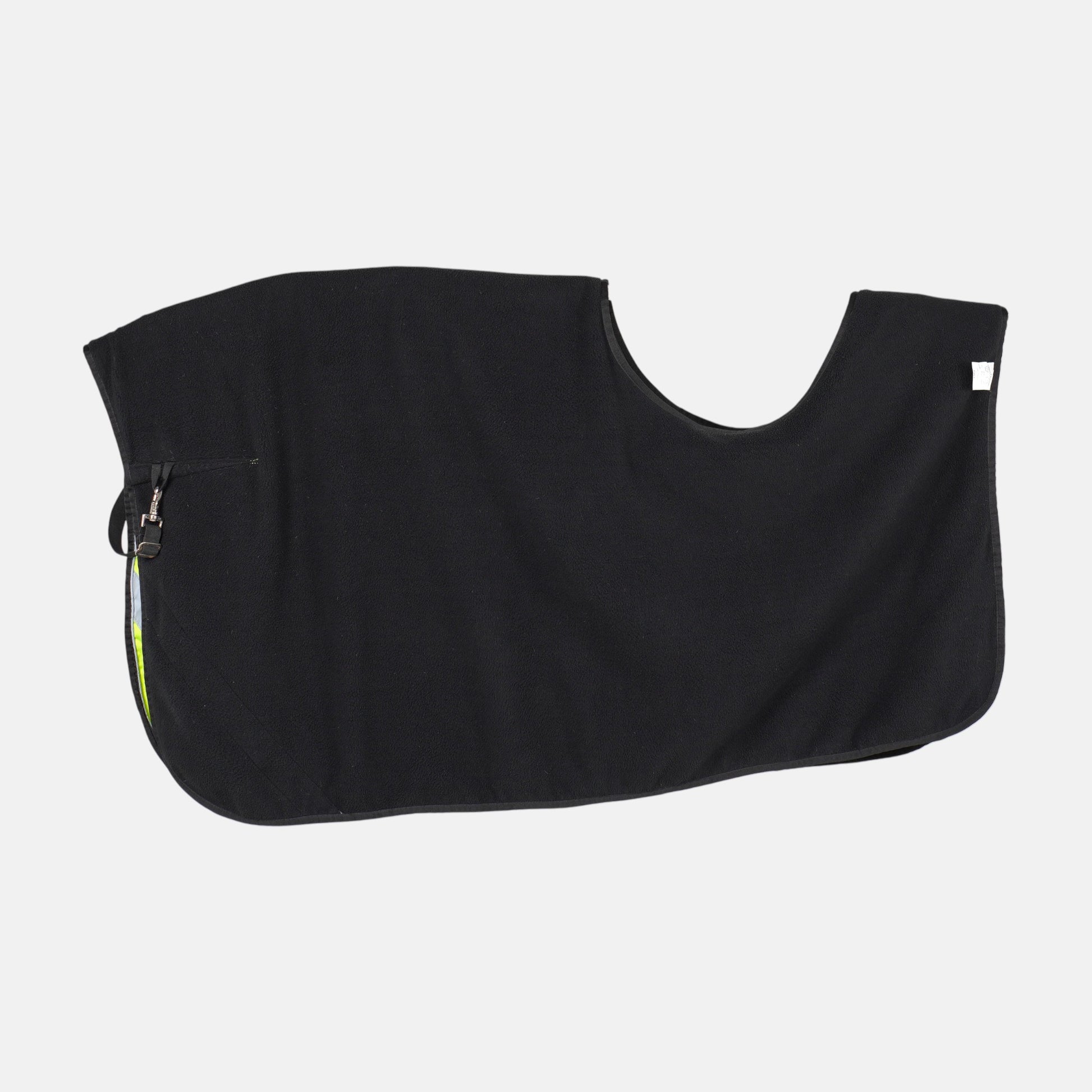 Fleecefodrat ridtäcke i varselfärger med kardborre från Biltema.