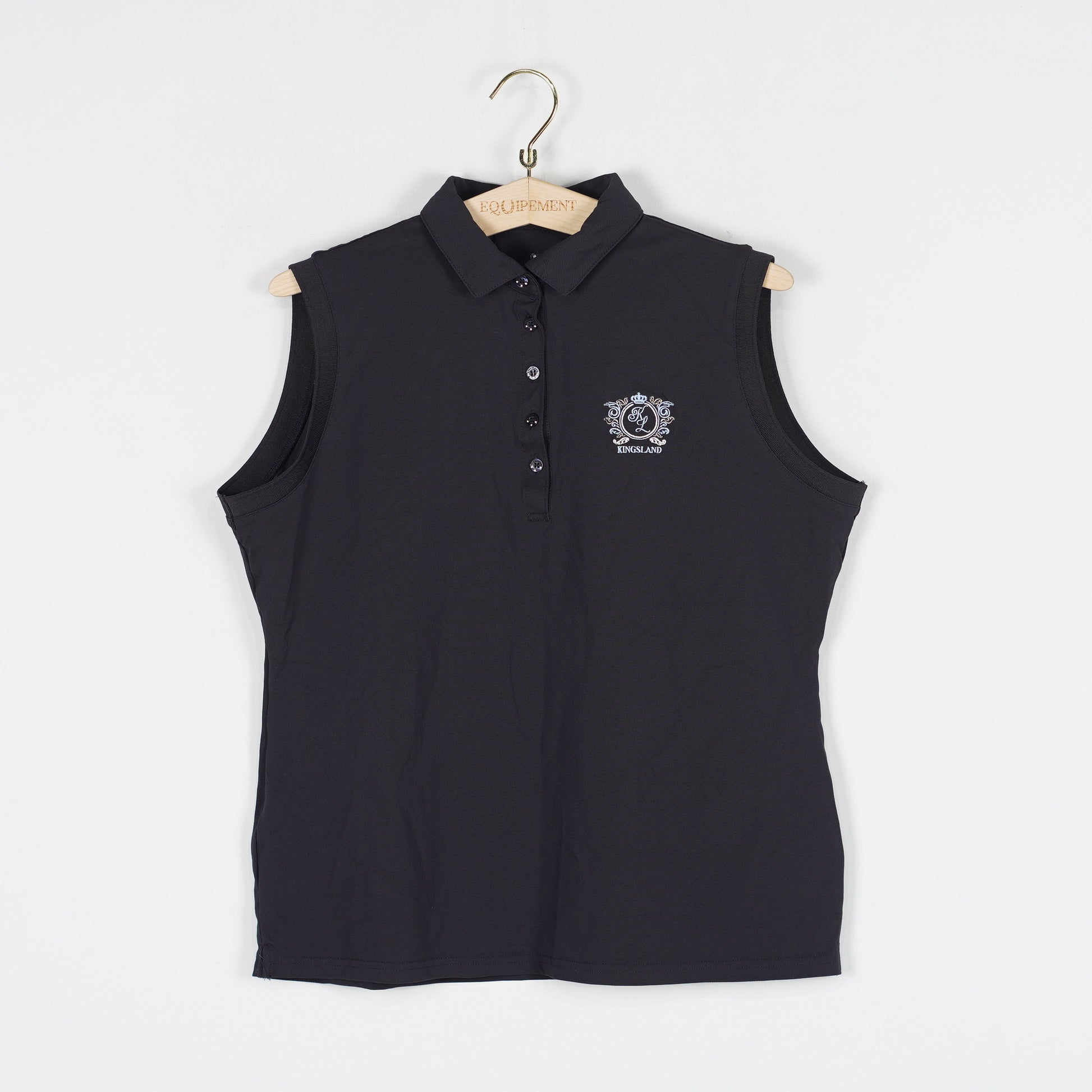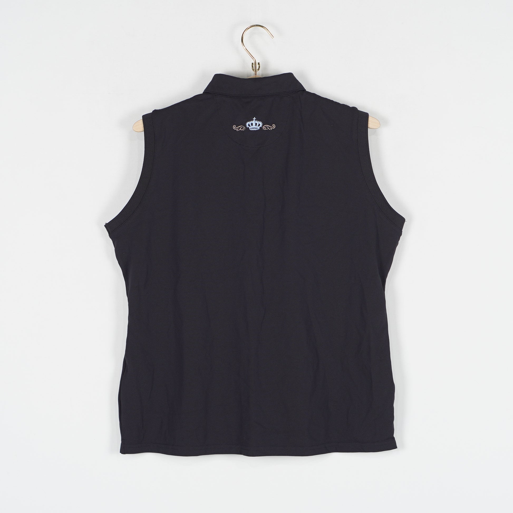 Ärmlös, mörkblå ridtopp med krage och knappar med bling från Kingsland.