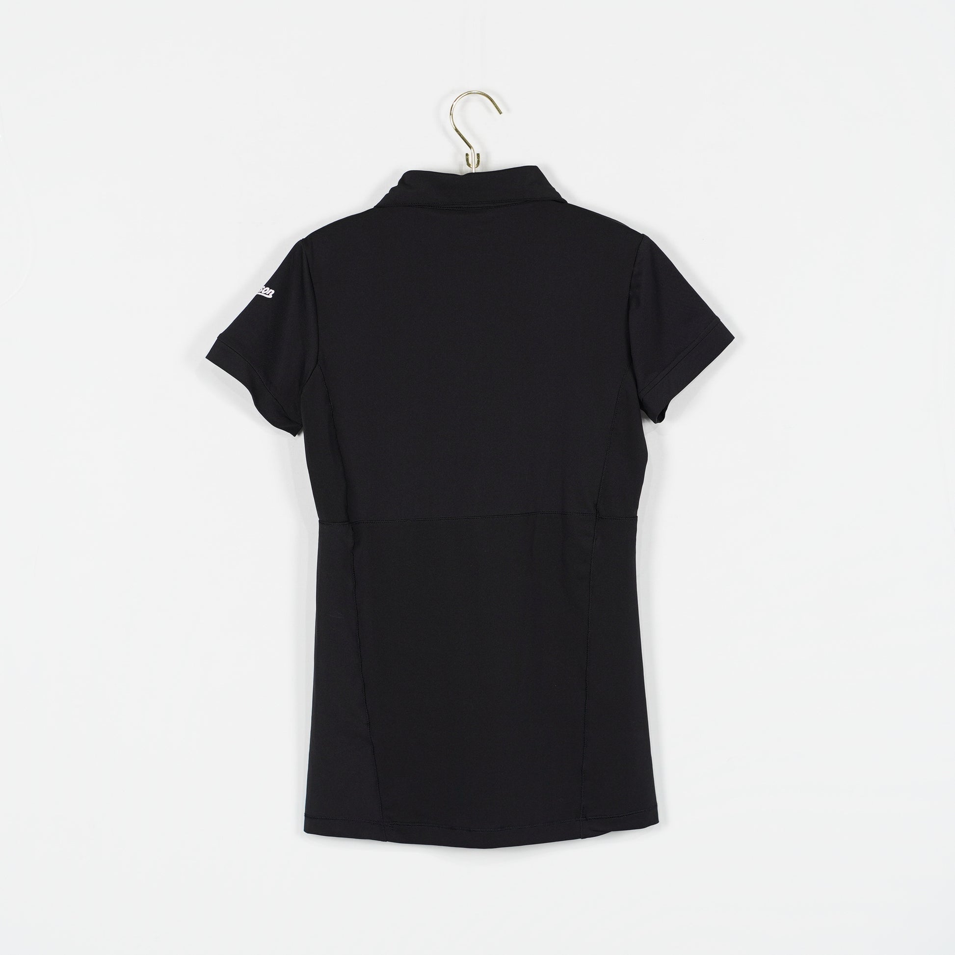Svart ridtopp i stretchigt funktionsmaterial från Jacson. Ridtoppen har korta ärmar och snygg knappstängning.