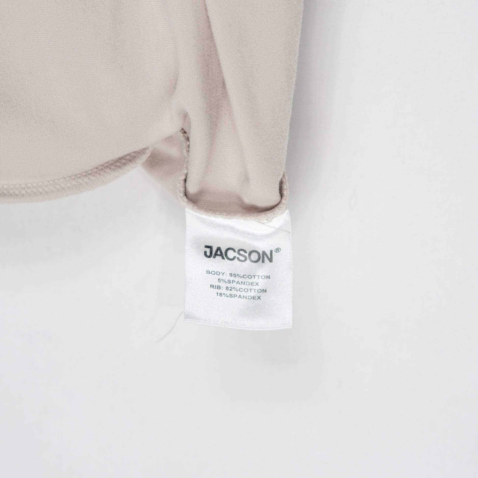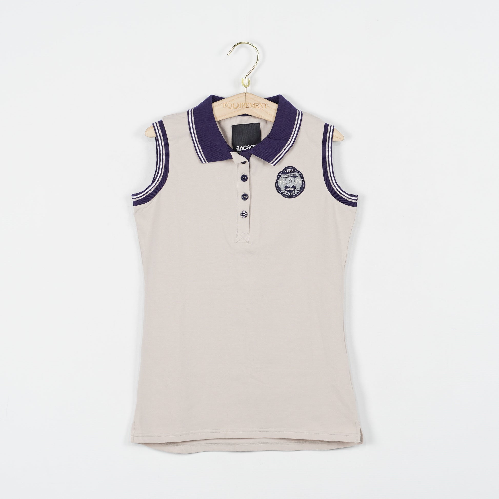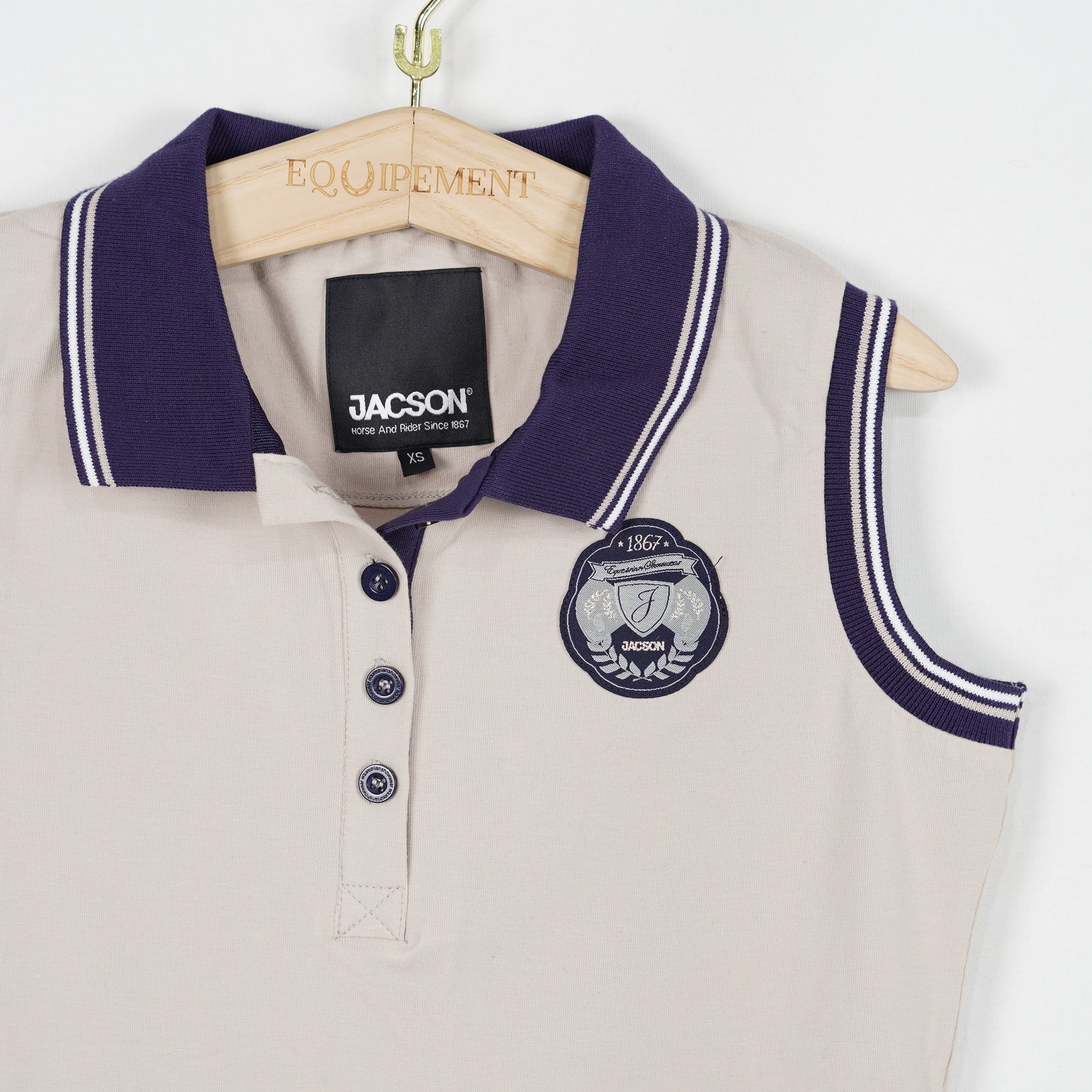 Beige linne med blå krage och ärmslut från Jacson. Linnet är i ett mycket sparsamt använt skick.