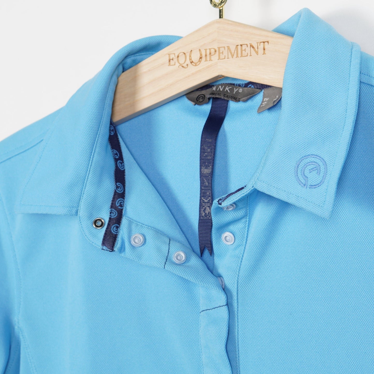 Ridtopp i funktionsmaterial från ANKY med extra många tryckknappar fram. Toppen är i ett tydligt använt men okej skick. Något noppig fram.