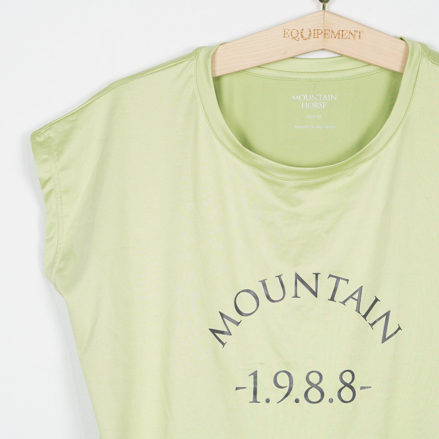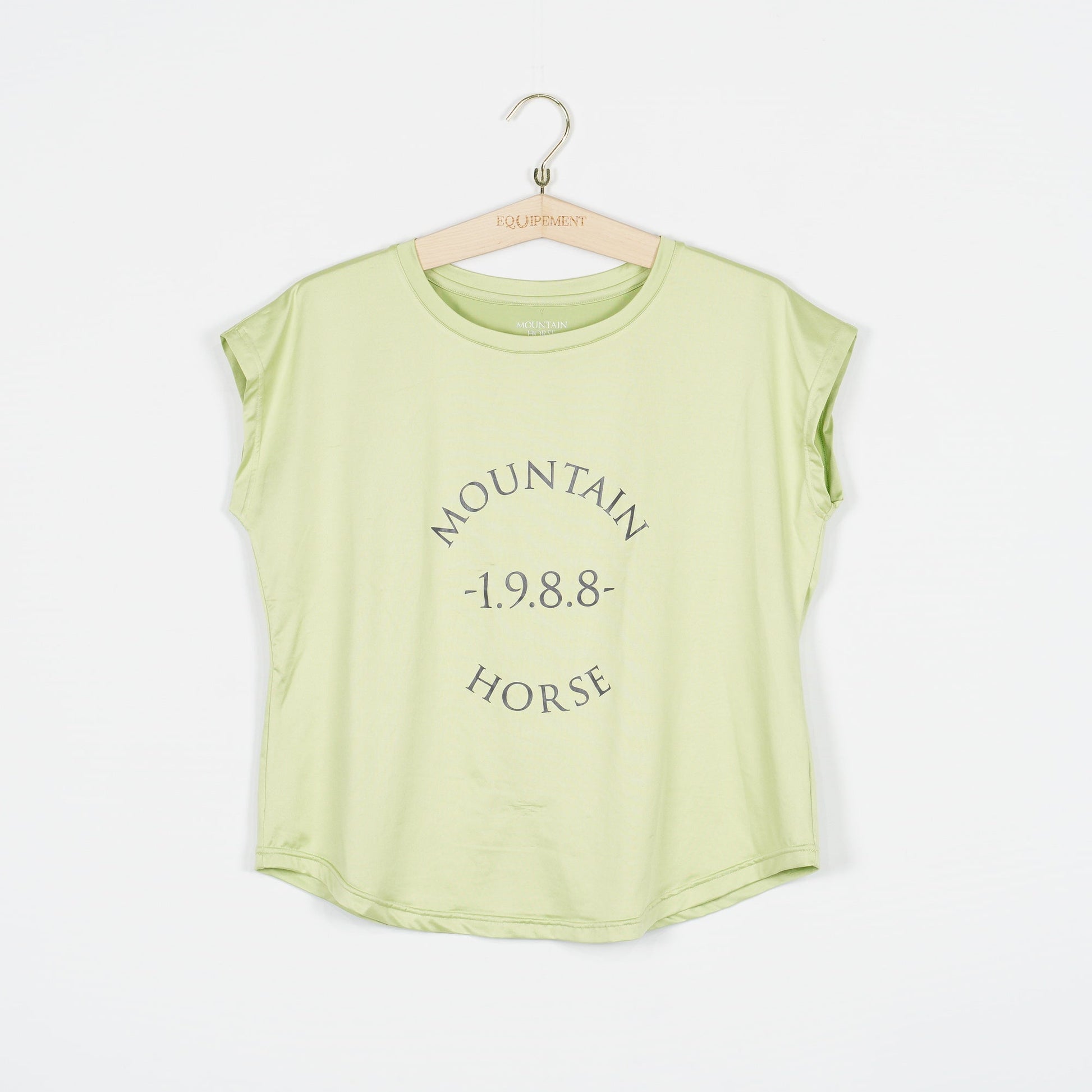 Ljusgrön ridtopp med tryckt logga framtill. Avslappnad passform och rund halsringning – perfekt till sommarens ridpass.