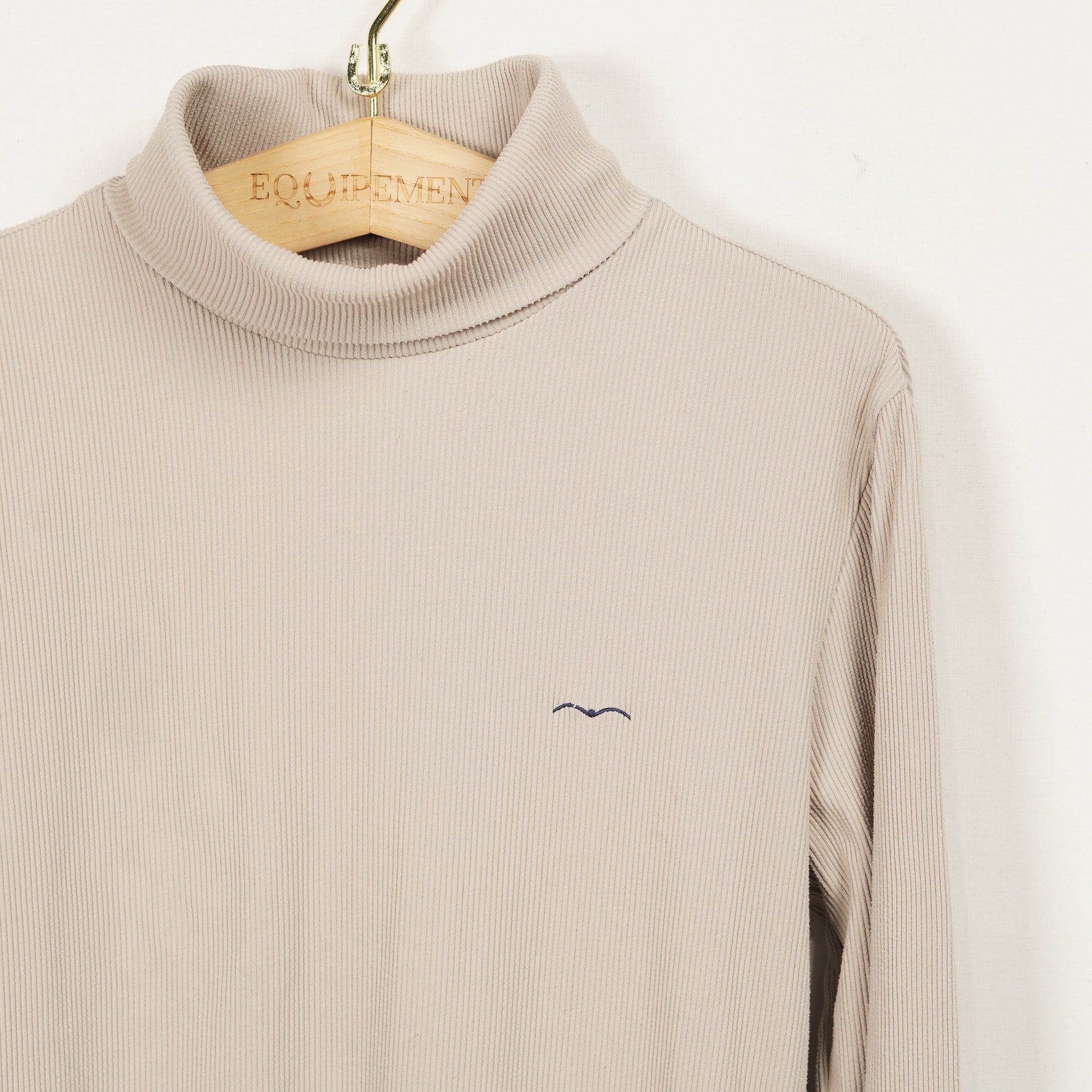 Brun ribbstickad ridtröja med hög krage från Animo. Perfekt mellanlager innan värmen är här på riktigt.