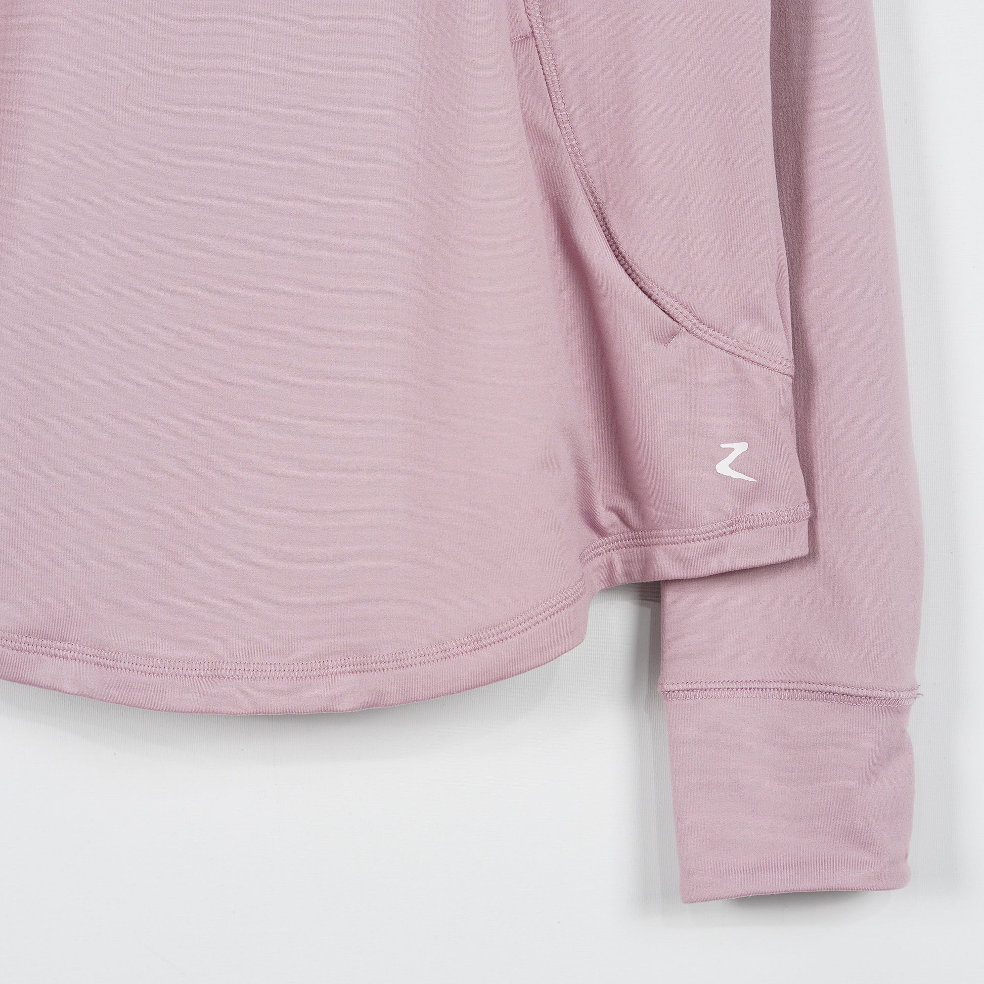 Rosa ridtröja med dragkedja vid halsen från Horze. Tröjan har även en genomgående ficka på magen.