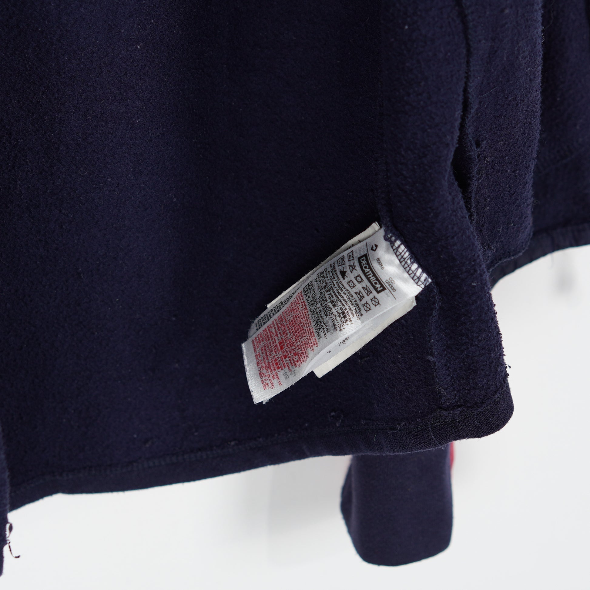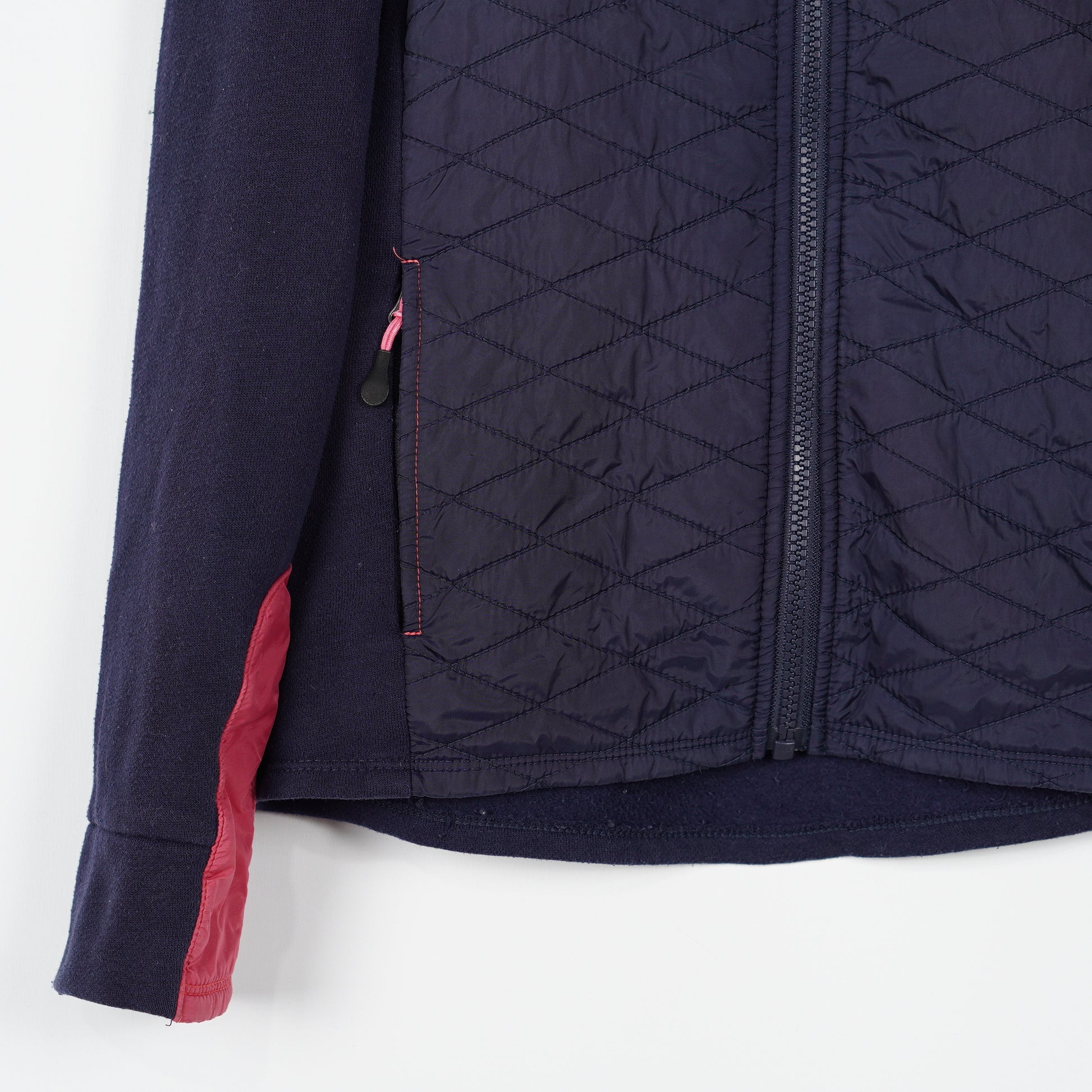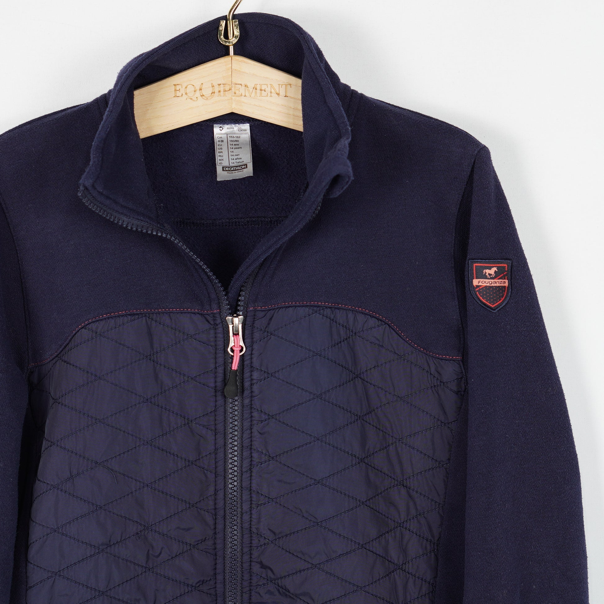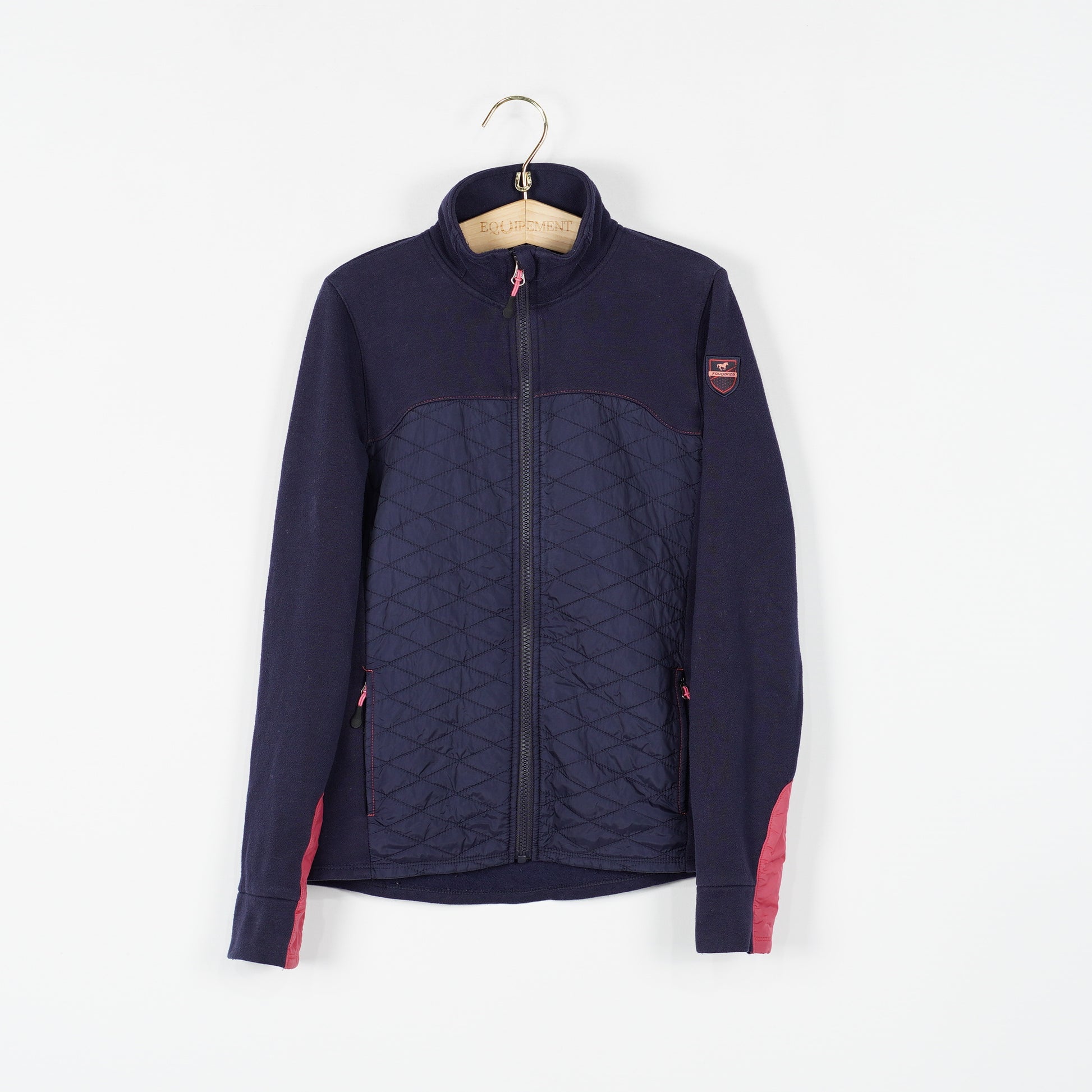 Mörkblå ridtröja från Fouganza med dragkedja och rosa detaljer.