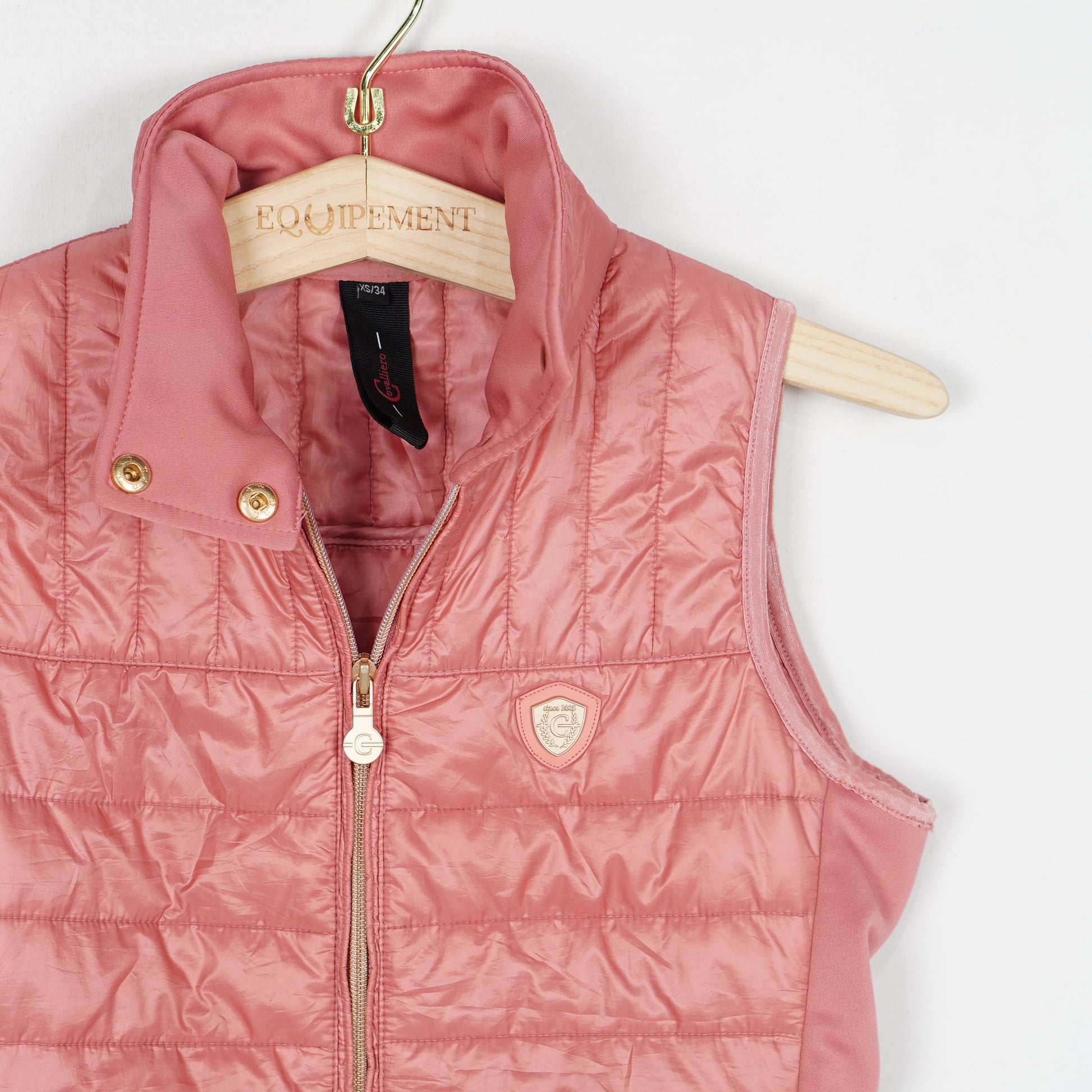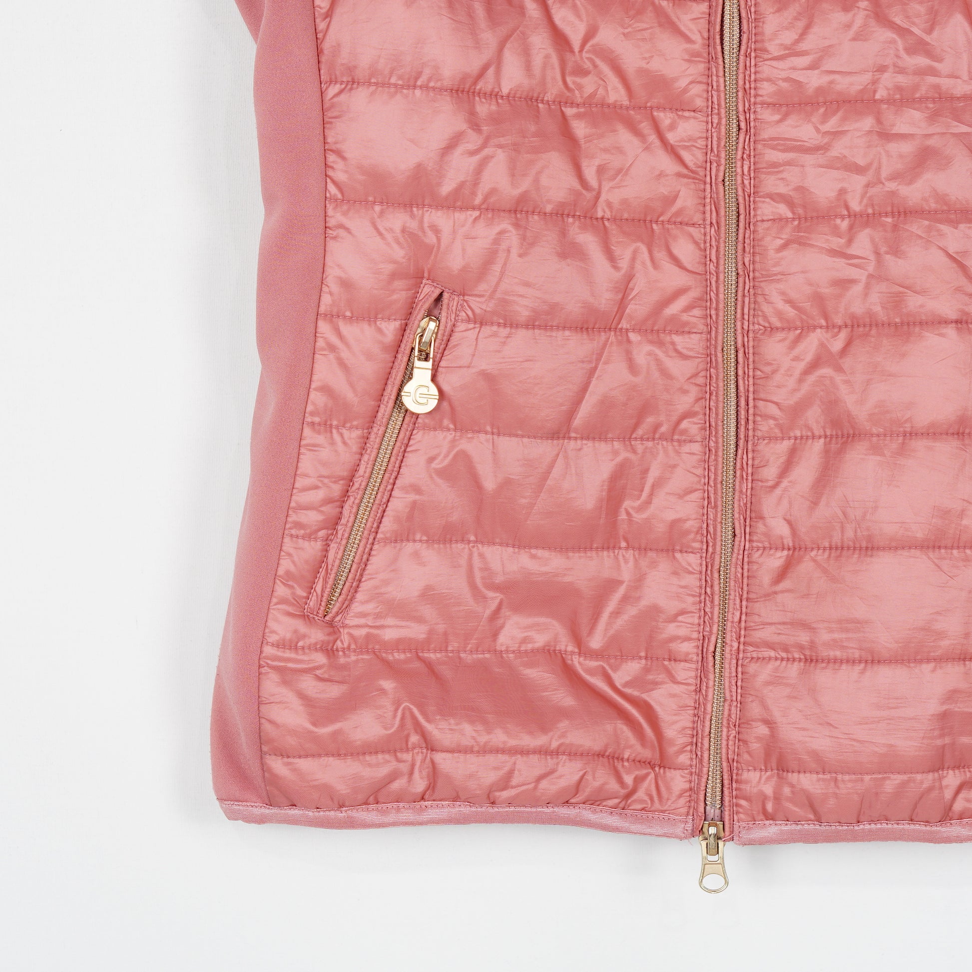 Rosa, lätt fodrad ridväst med elastiska paneler på sidorna och dragkedjefickor från Covalliero.