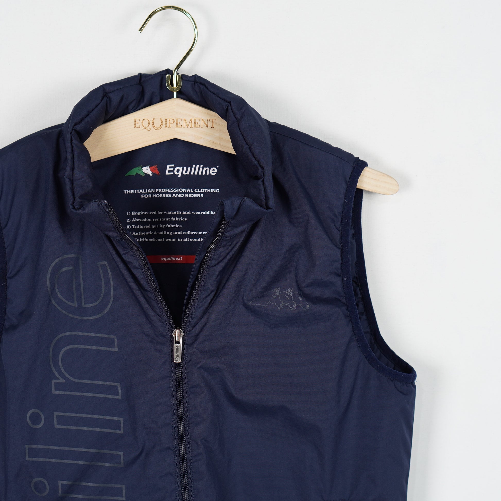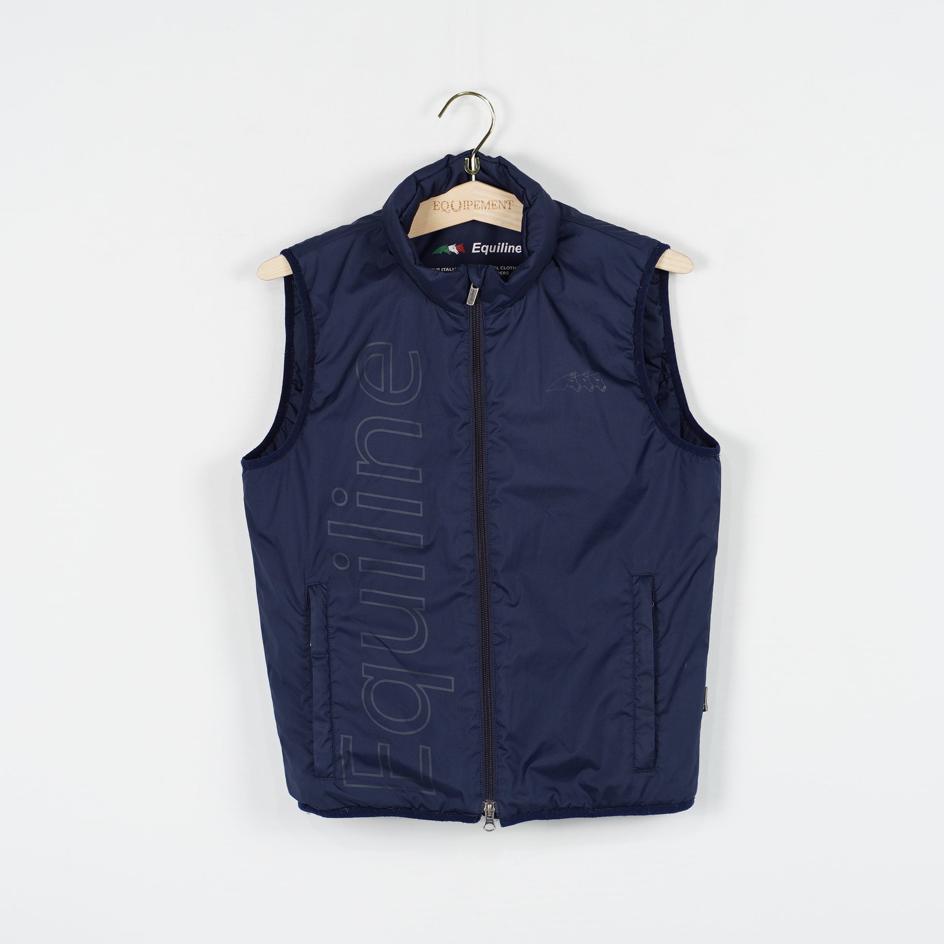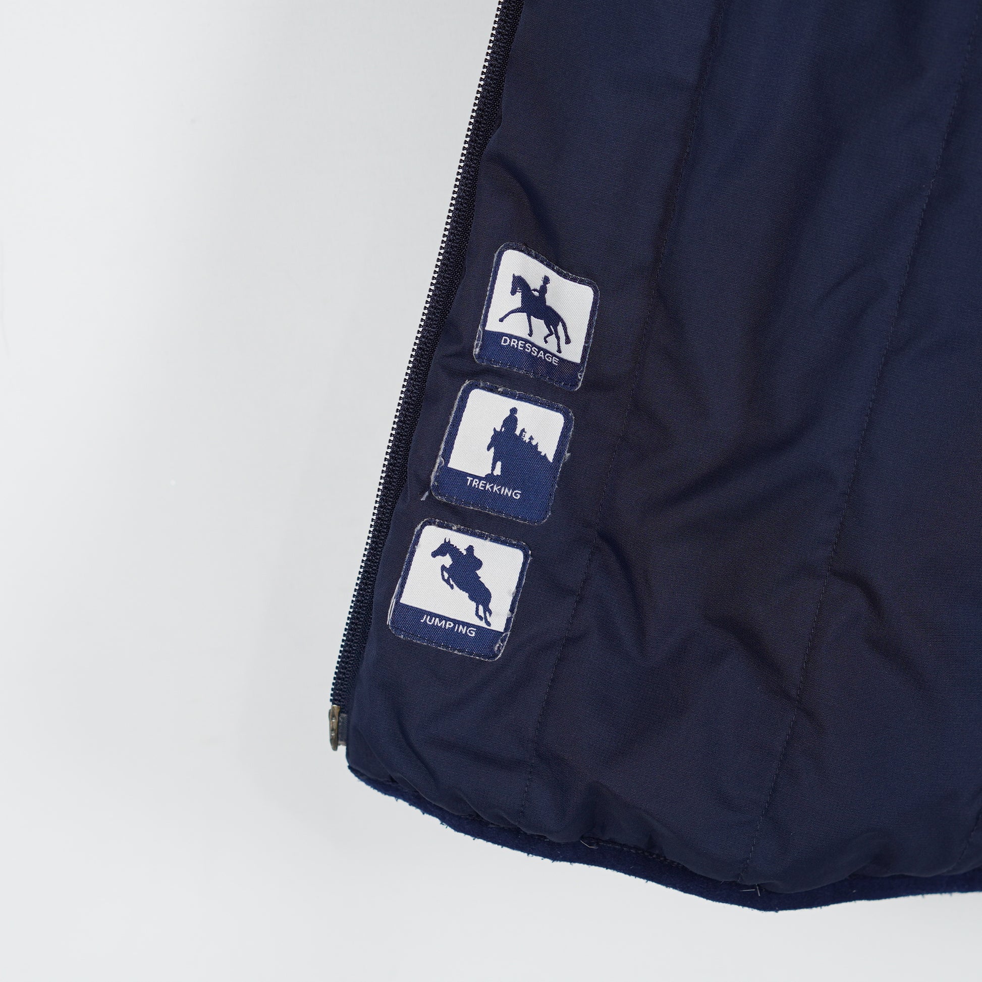 Mörkblå ridväst i tunt foder med invikbar luva från Equiline.