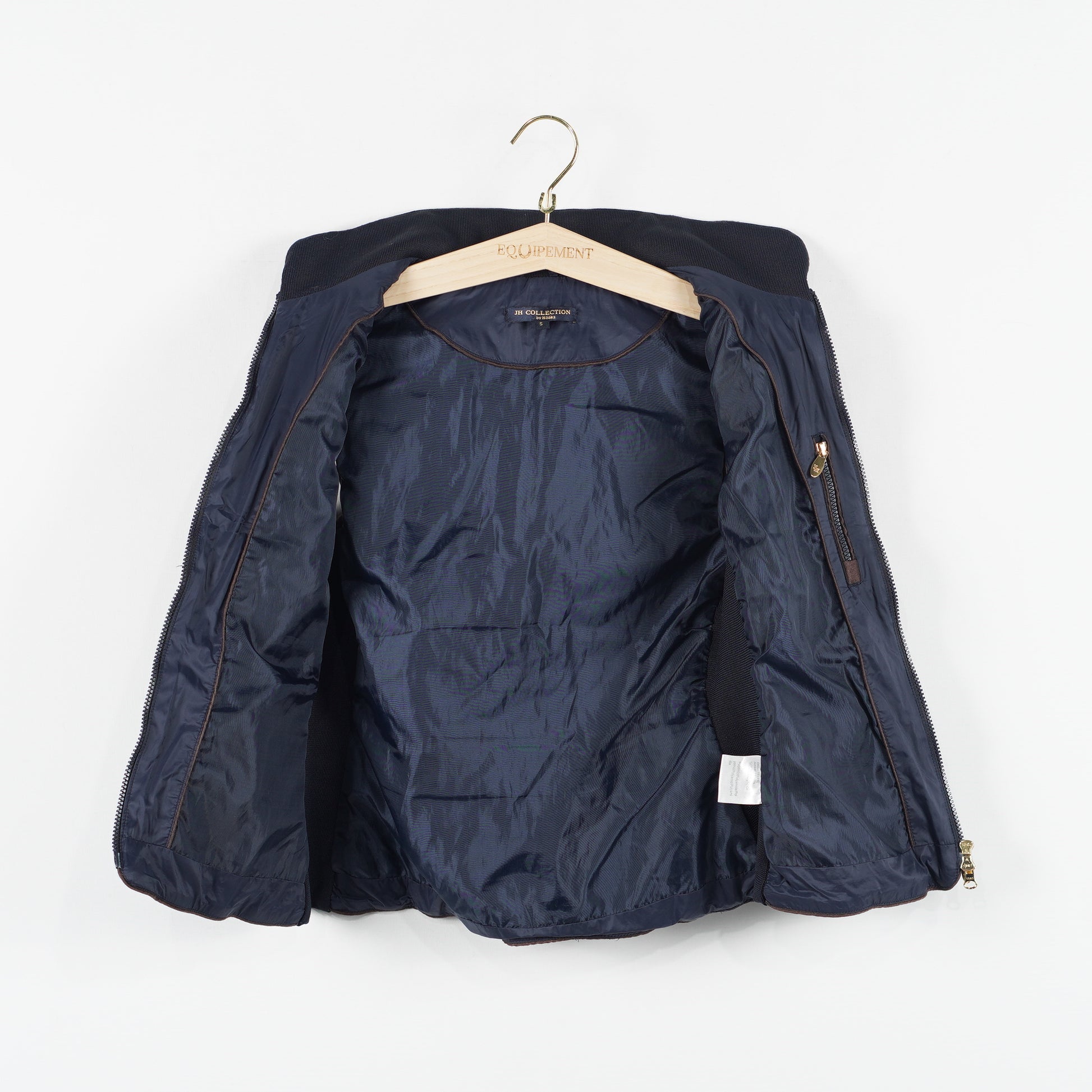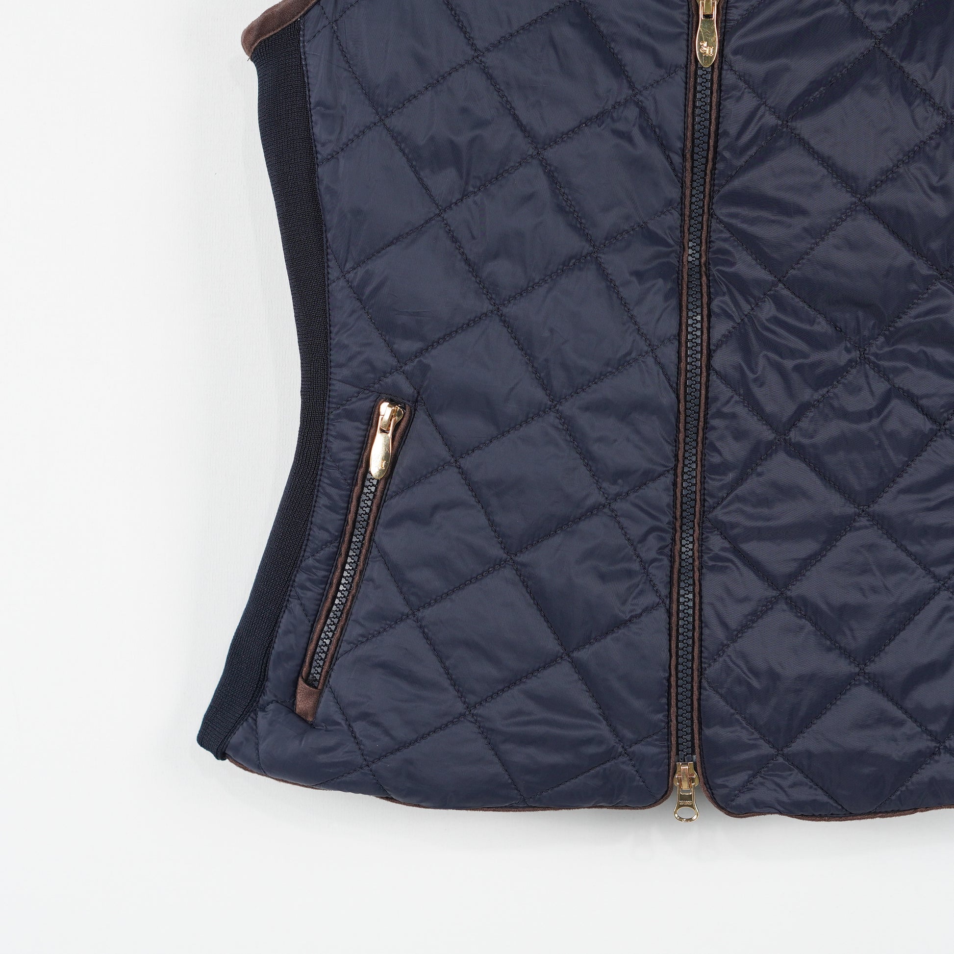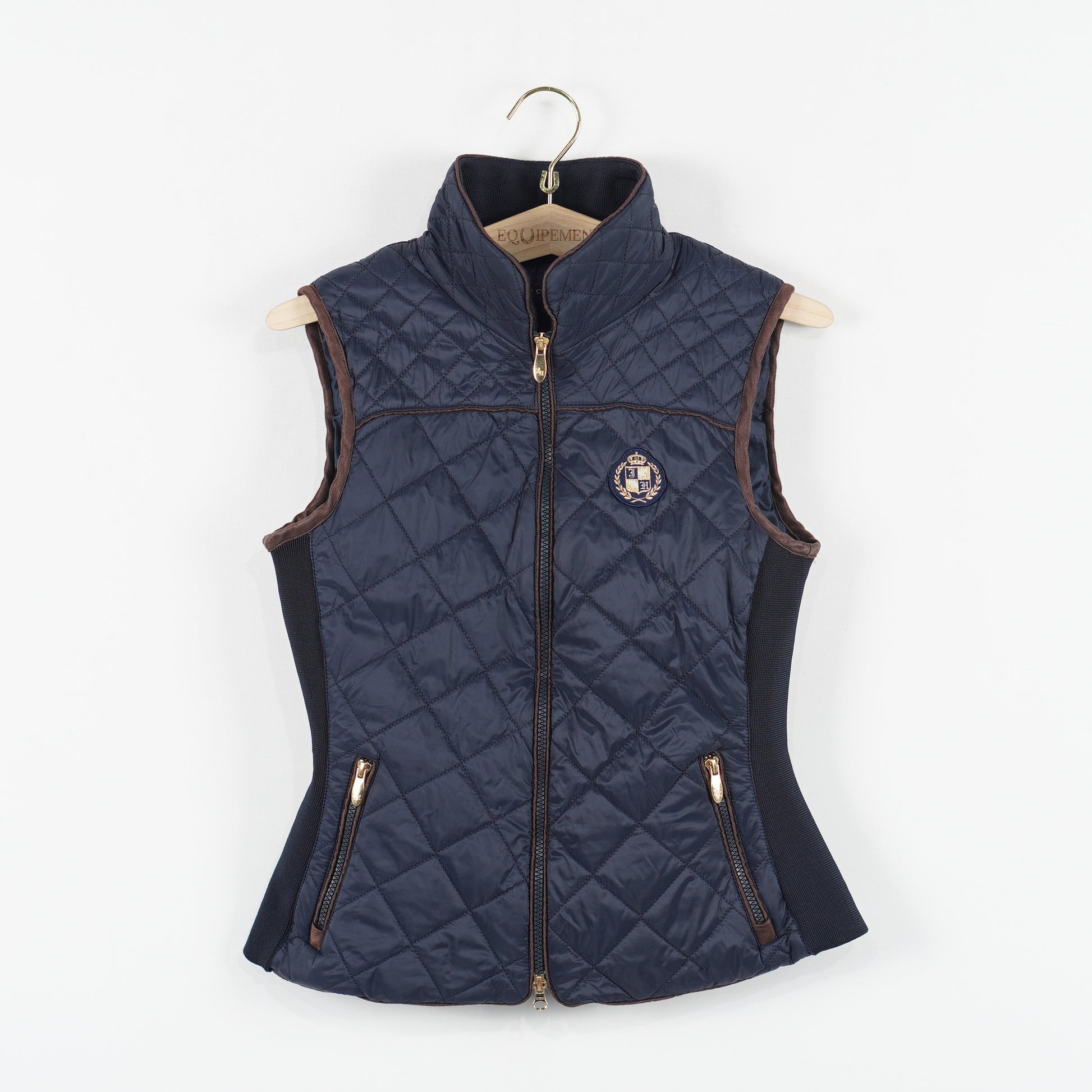 Tunt fodrad ridväst i blått med elastiska paneler längs sidorna och dragkedjefickor från JH Collection.