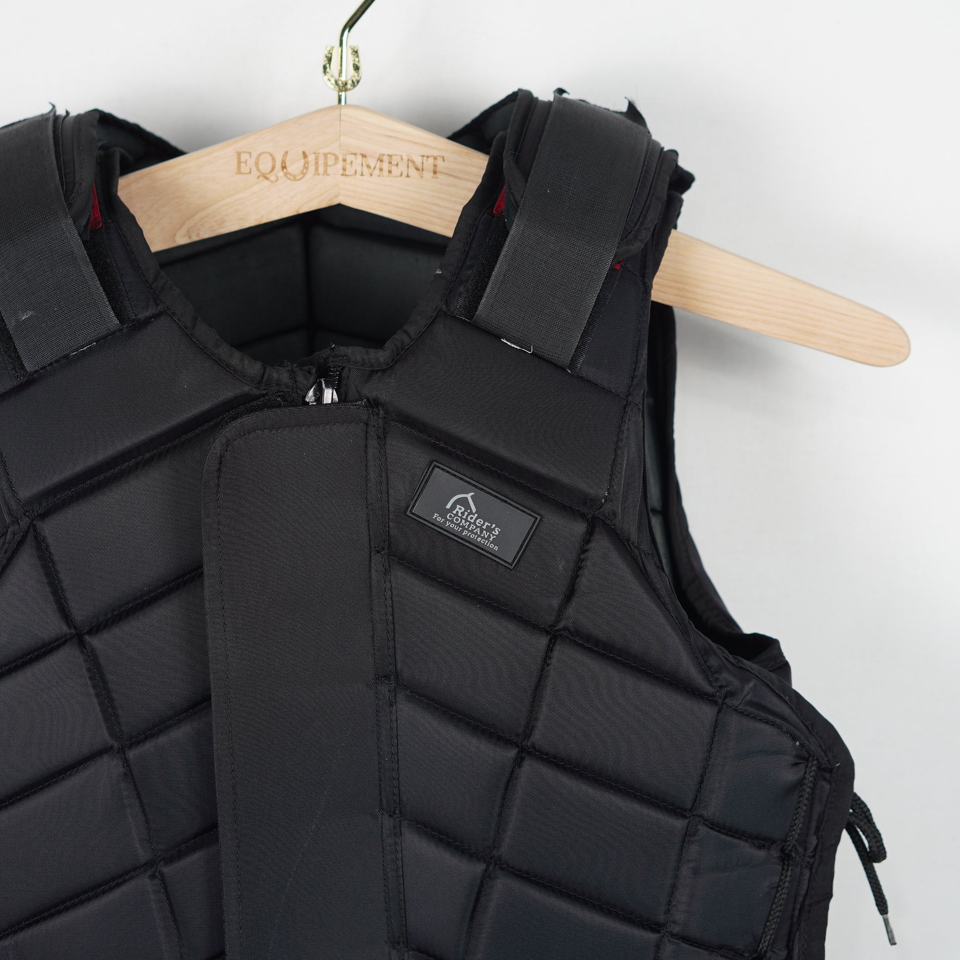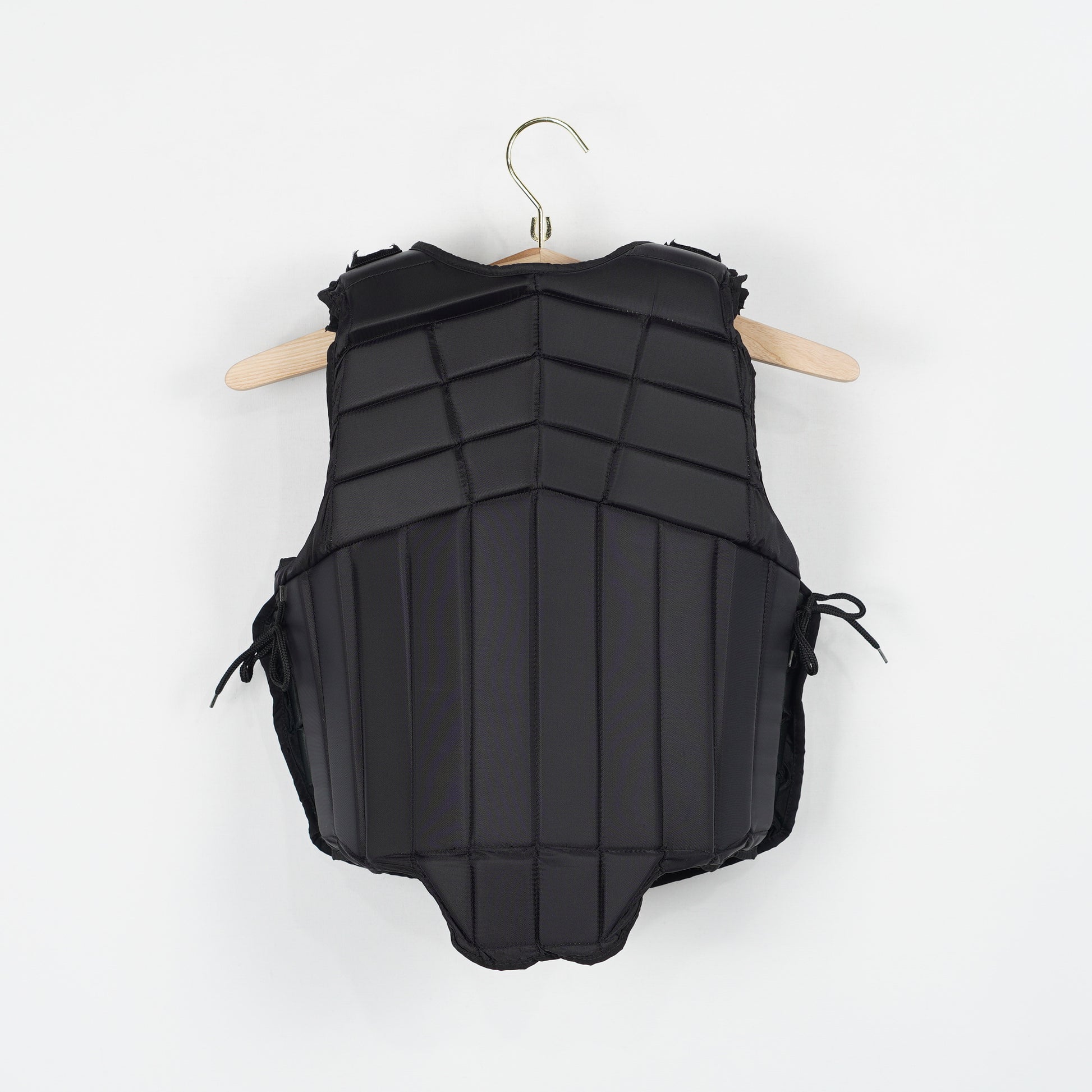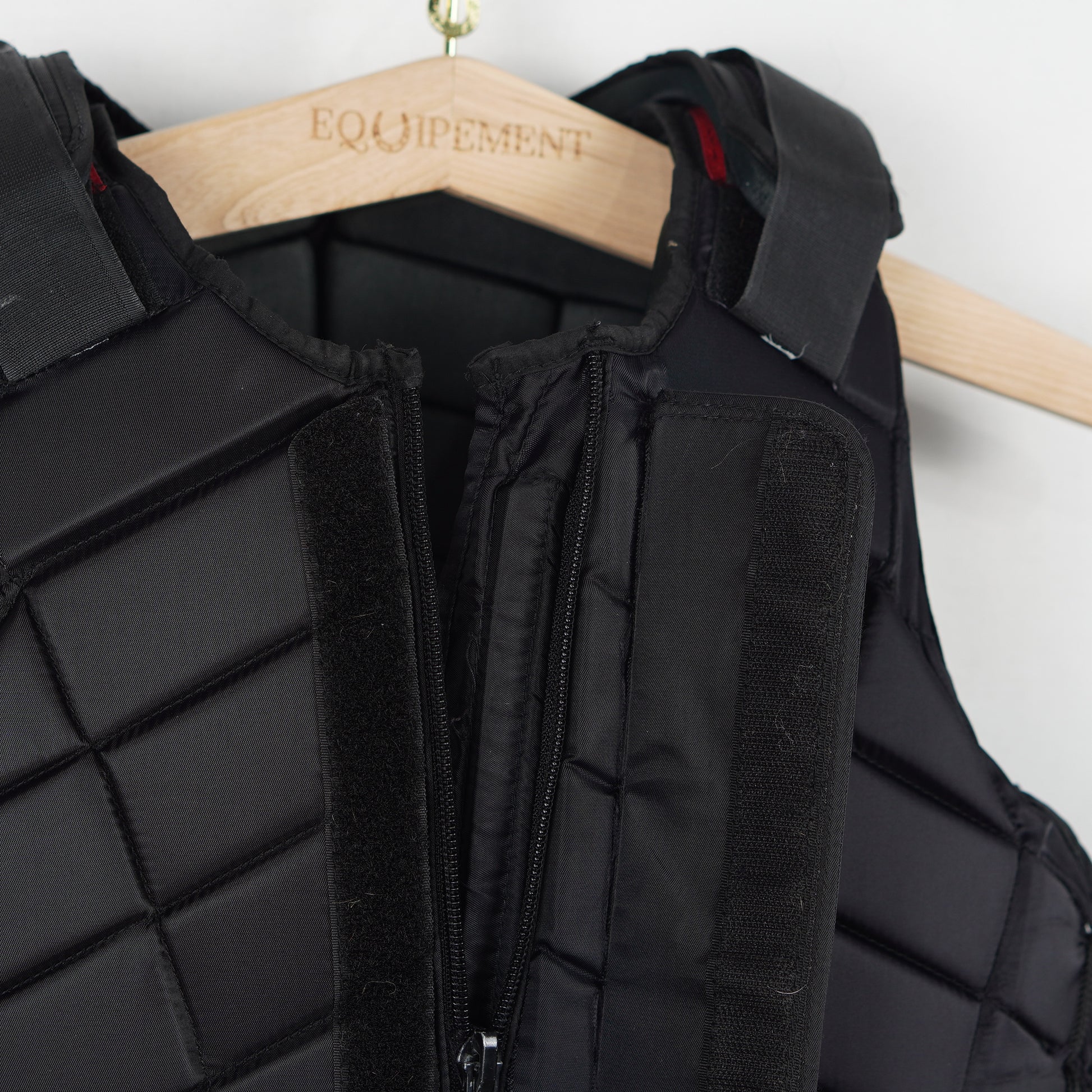 Svart säkerhetsväst med snörning på sidorna och kardborre över axlarna att justera storlek med. Tyget på insidan är lite tunt, därav 2/5 i skick.
