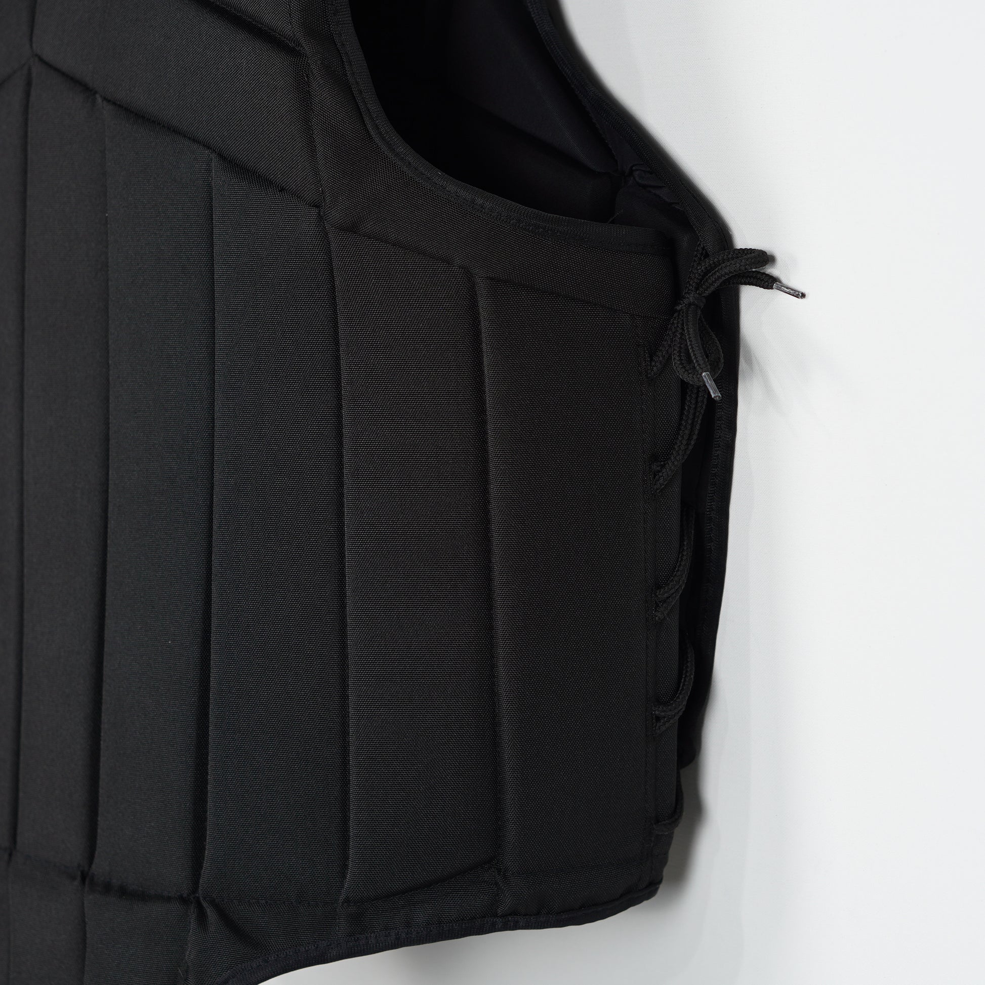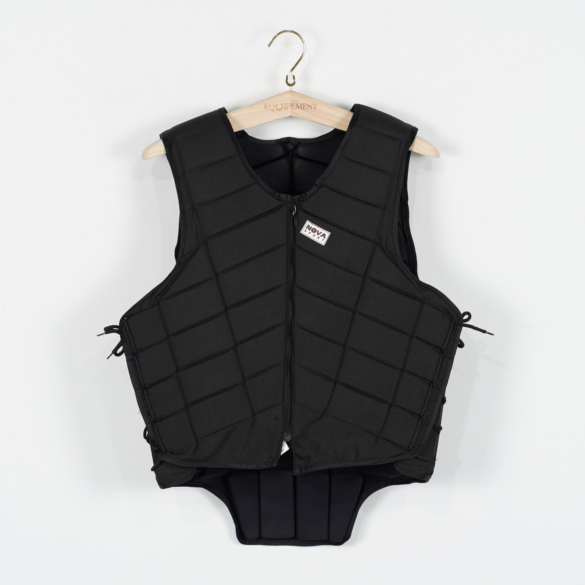 Svart säkerhetsväst med dragkedja från Nova Sport. Säkerhetsvästen har snöre på sidorna att justera storleken med.