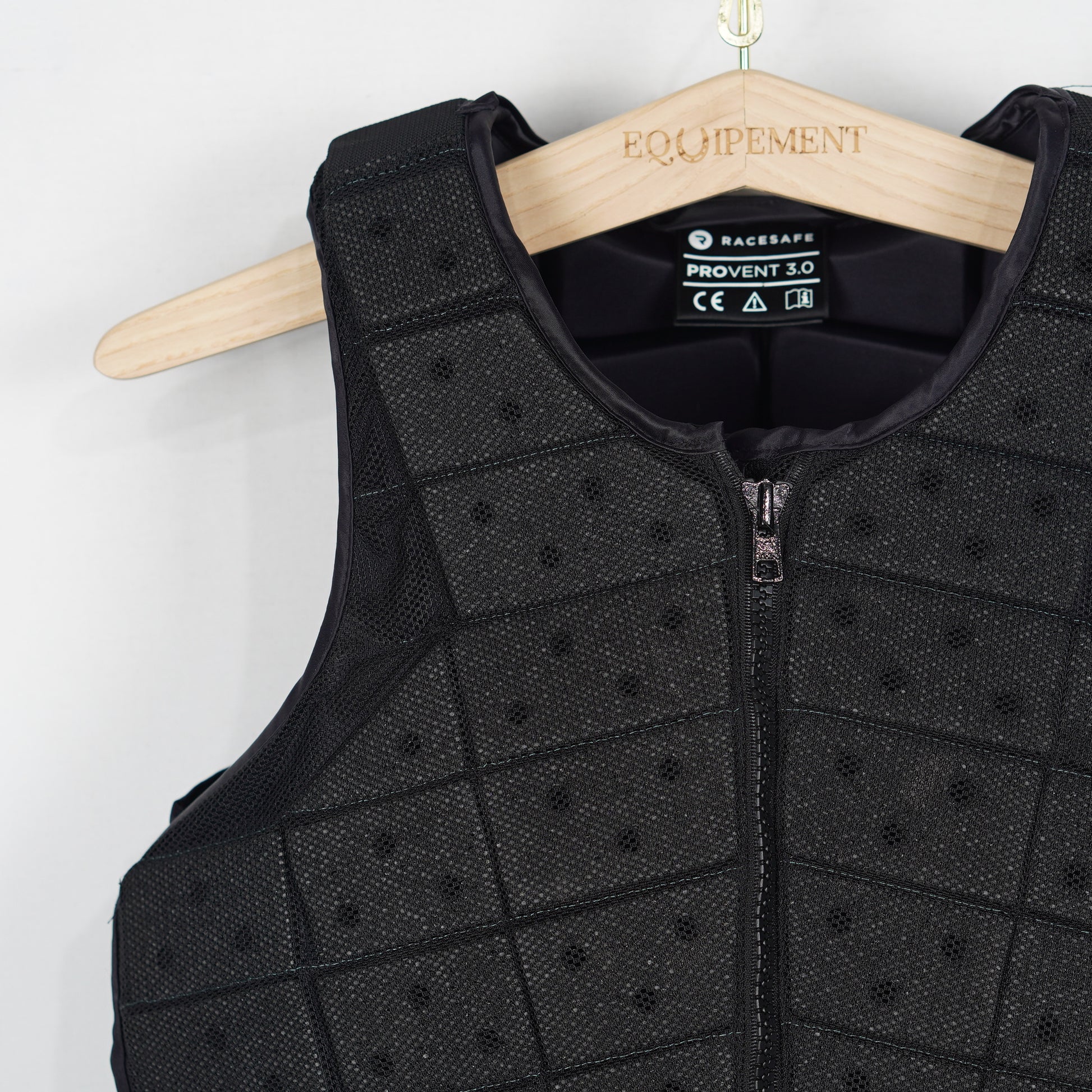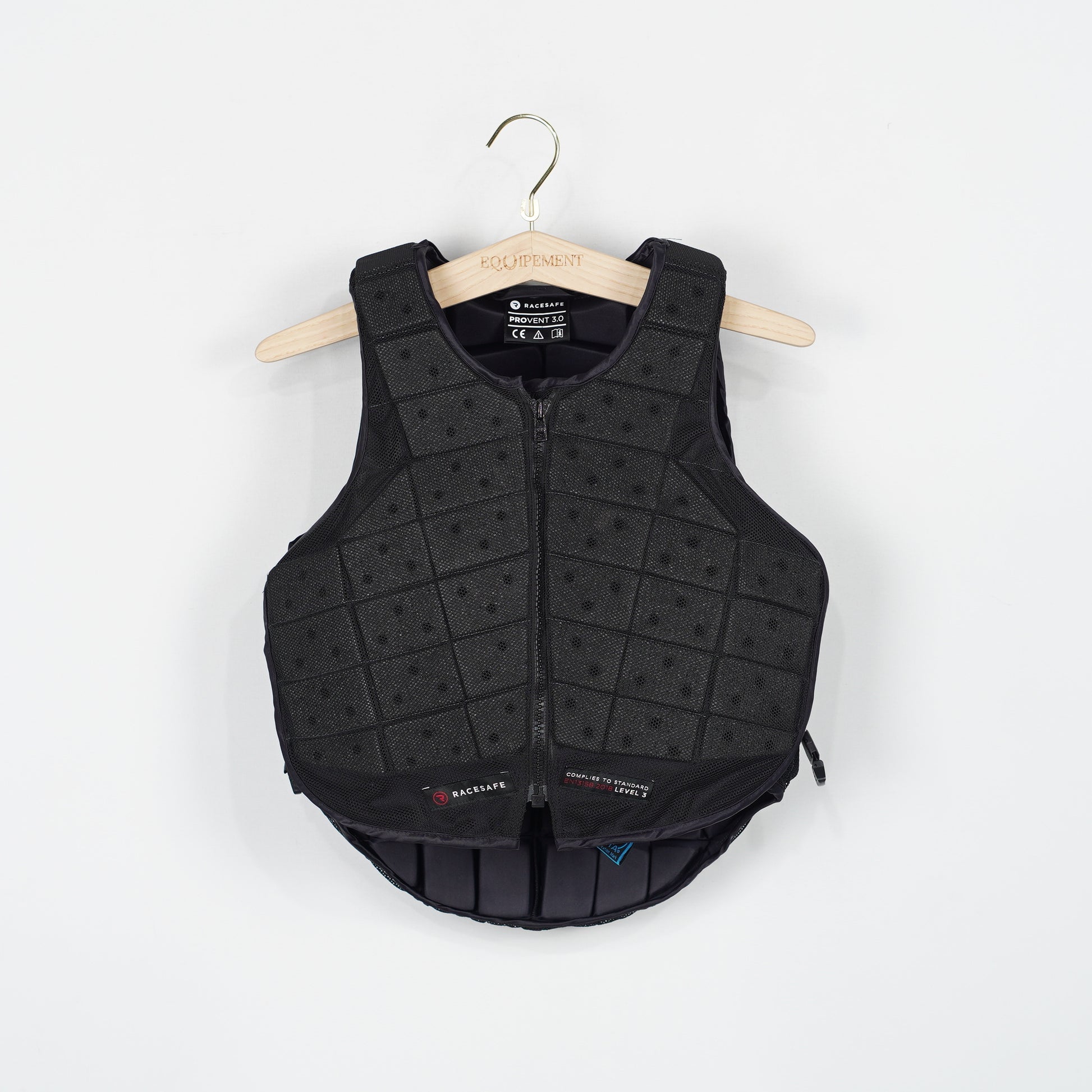 Säkerhetsväst Provent 3.0 i svart från Racesafe. Säkerhetsvästen har en utsida i mesh och elastiska snören på sidorna att justera storleken med.