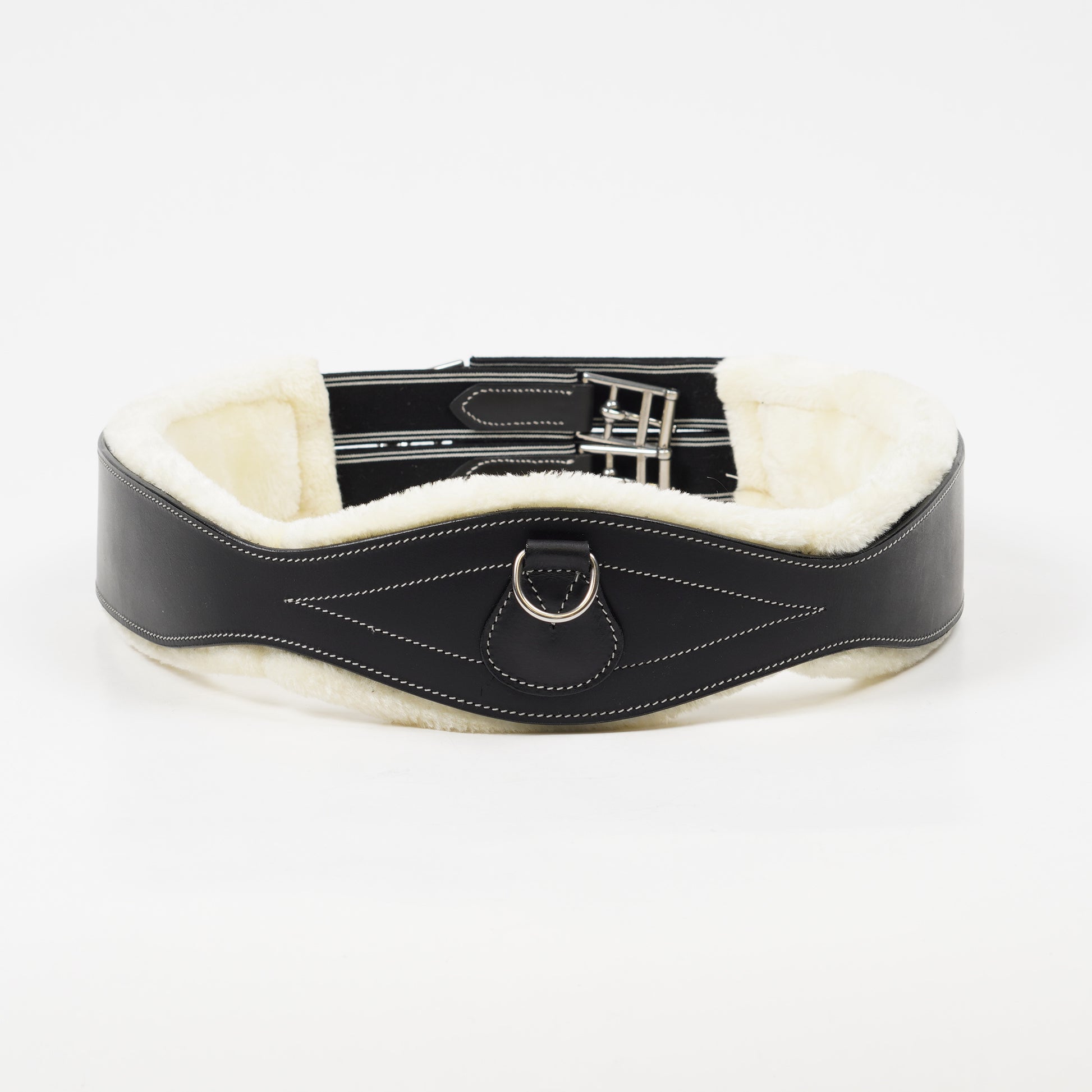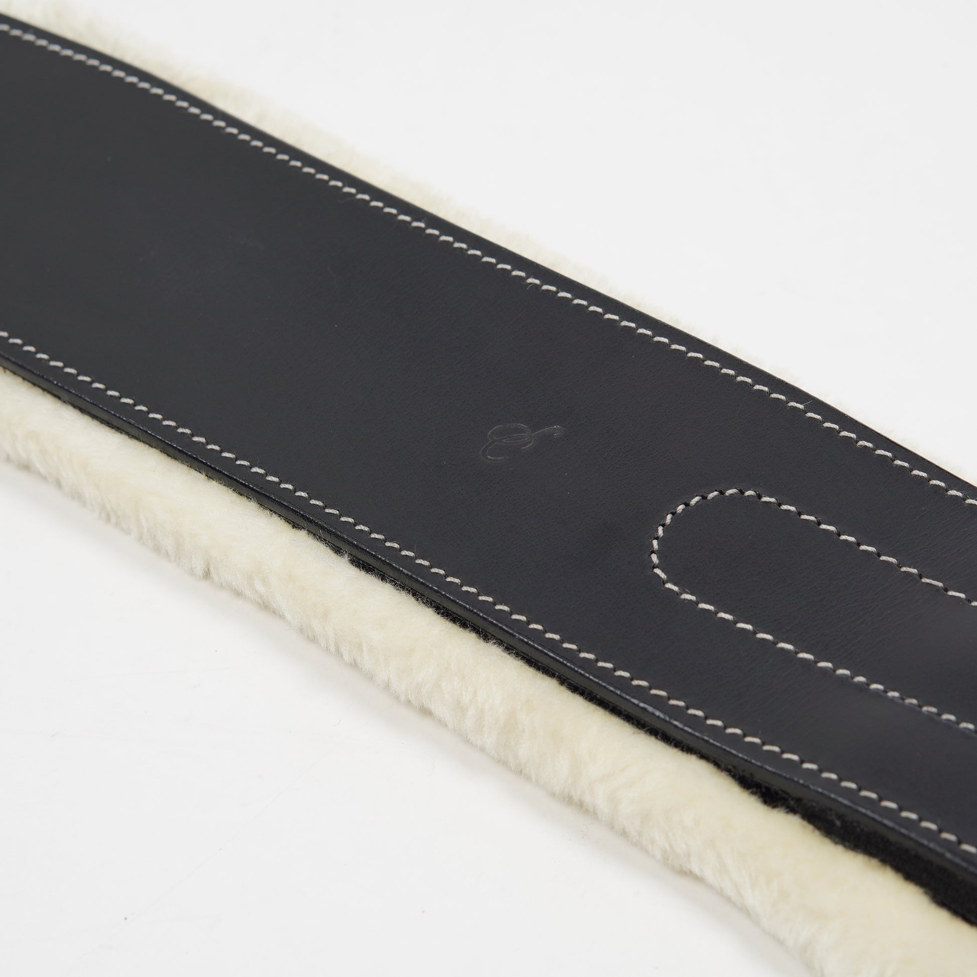 Svart sadelgjord i läder med avtagbart teddy från Swedish Collection. Sadelgjorden är ergonomiskt utskuren för bästa passform och kofmfort.