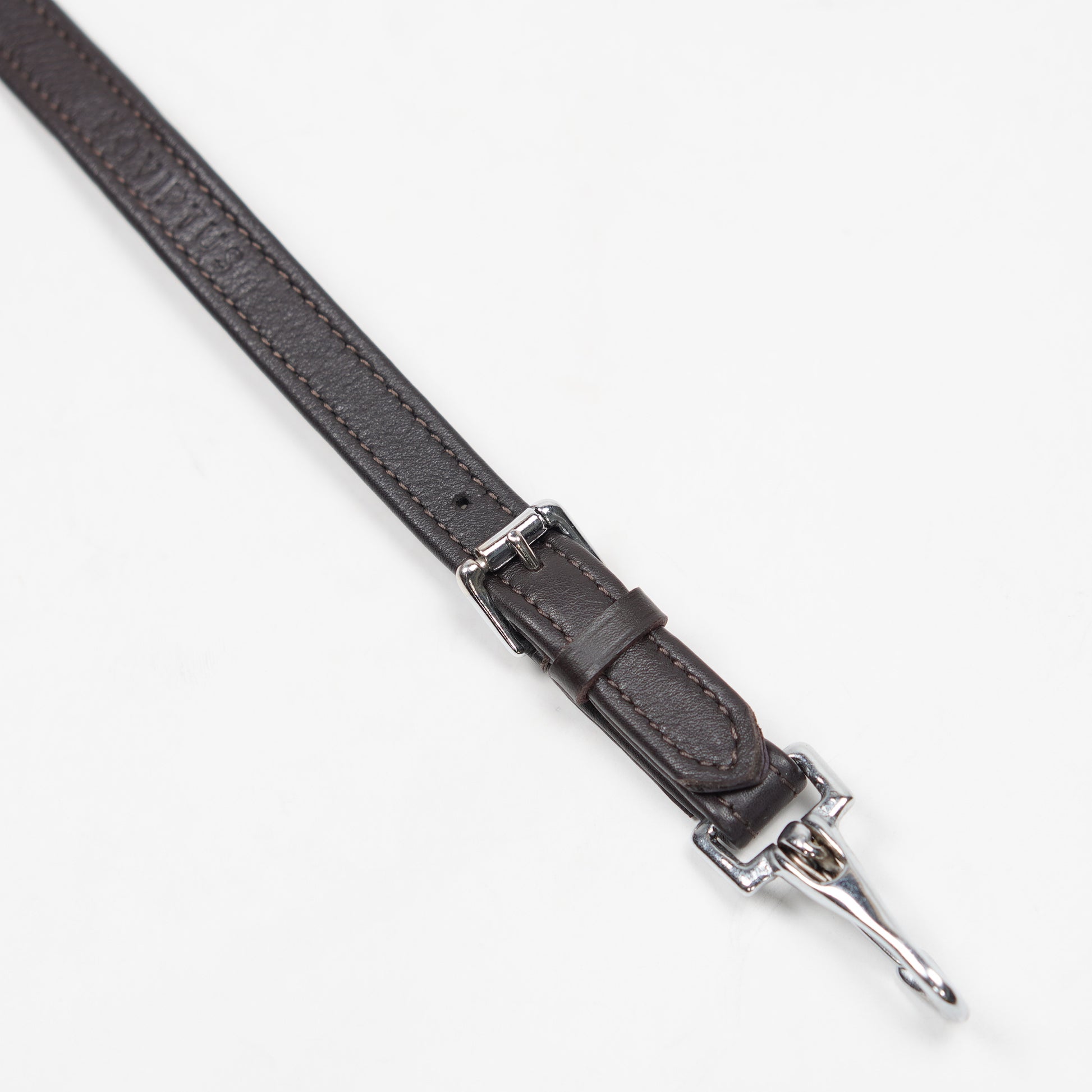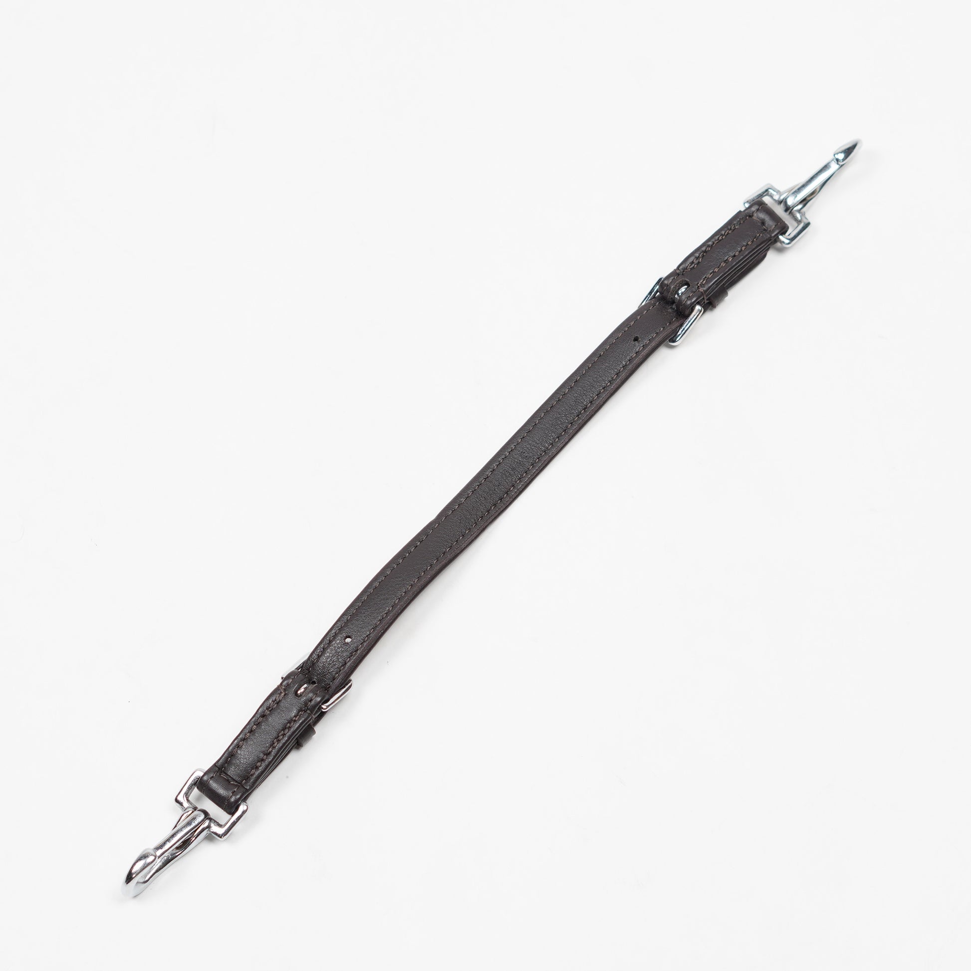 Sadelhandtag i brunt kalvskinn med snabbhakar från Eqviptus.