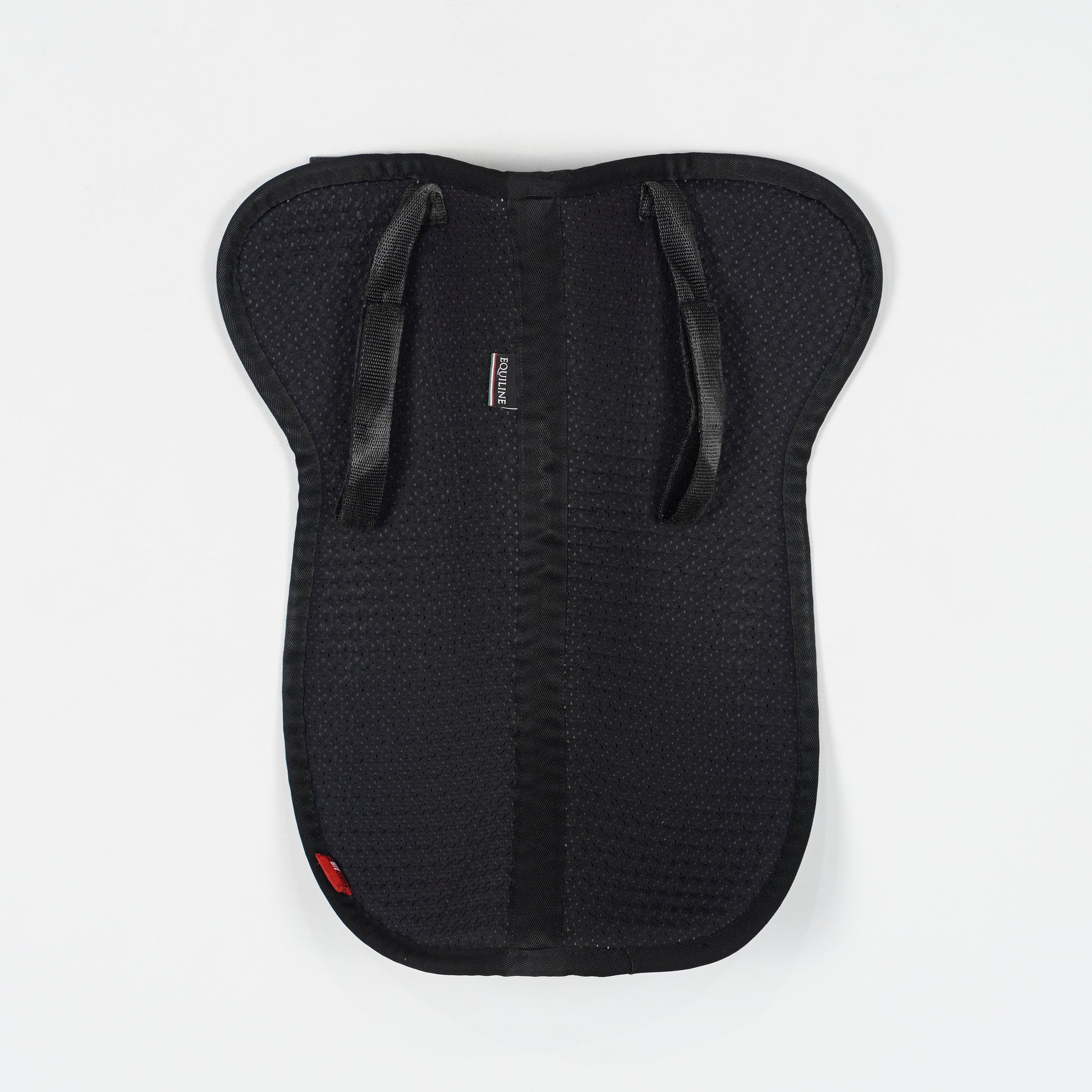 Svart sadelpadd från Equiline, modell Tecno Air. Padden är väldigt lätt och ger både bra stötdämpning och ventilation.