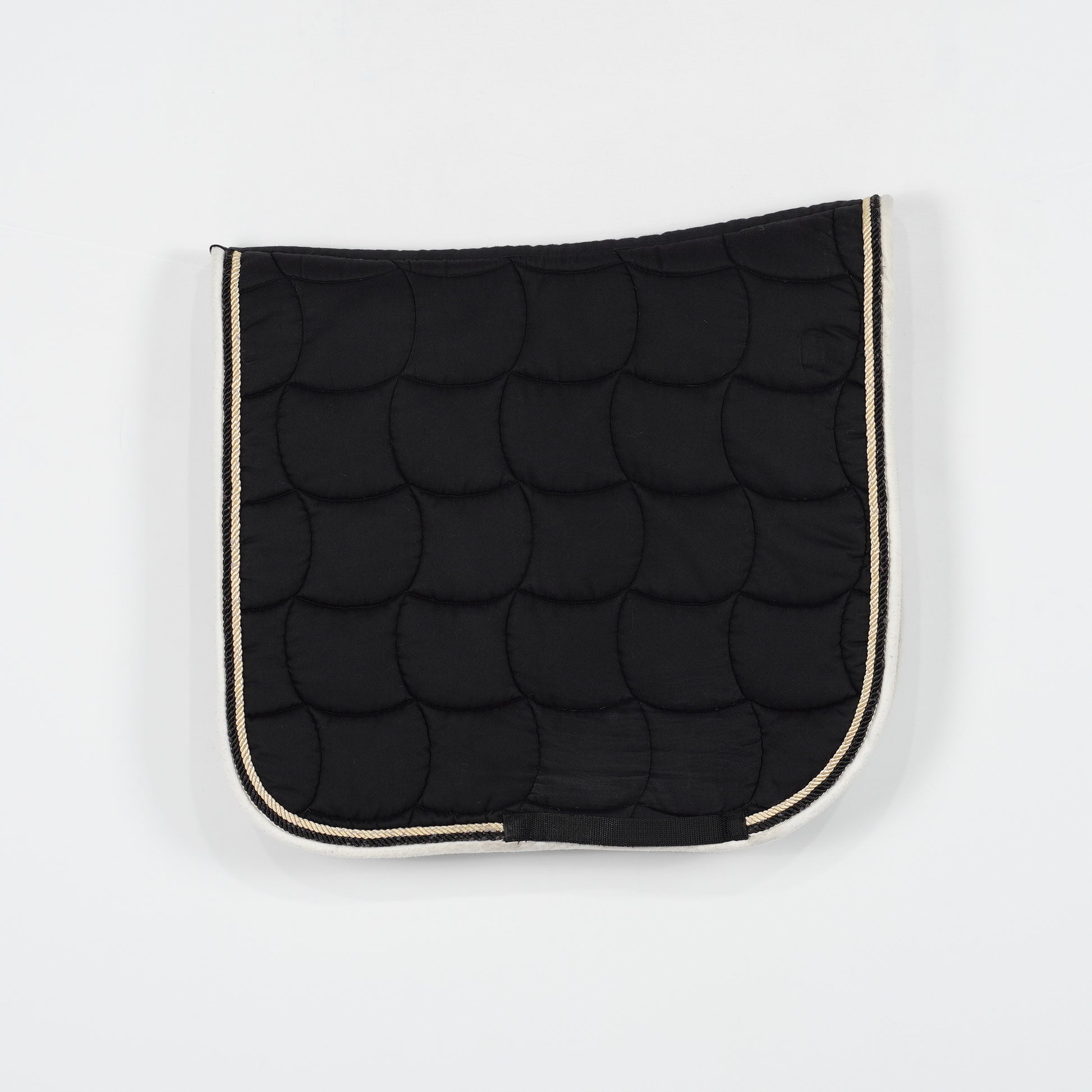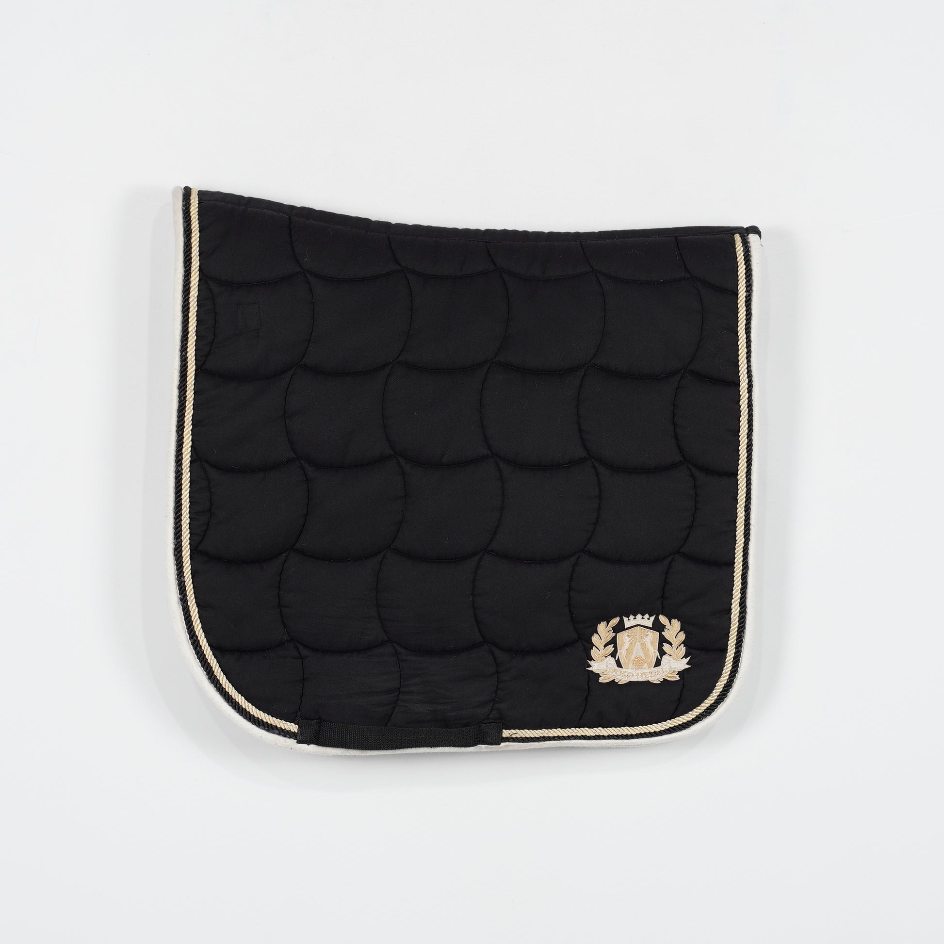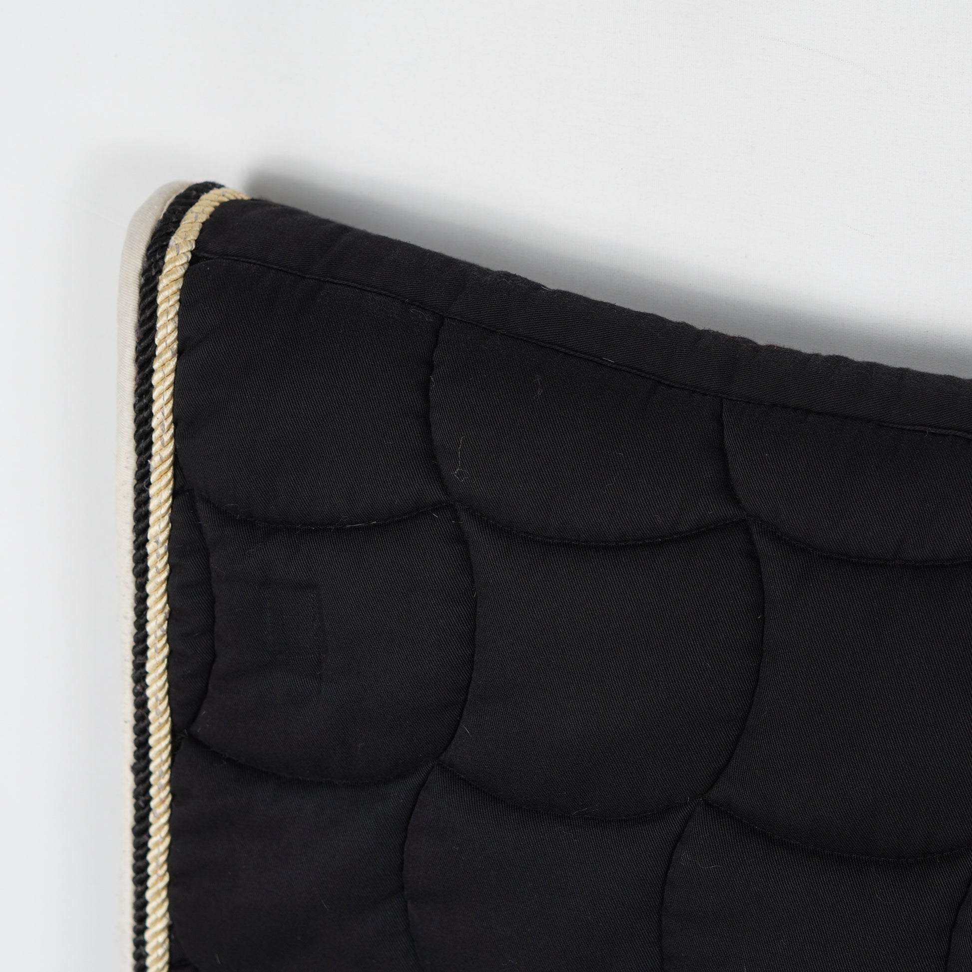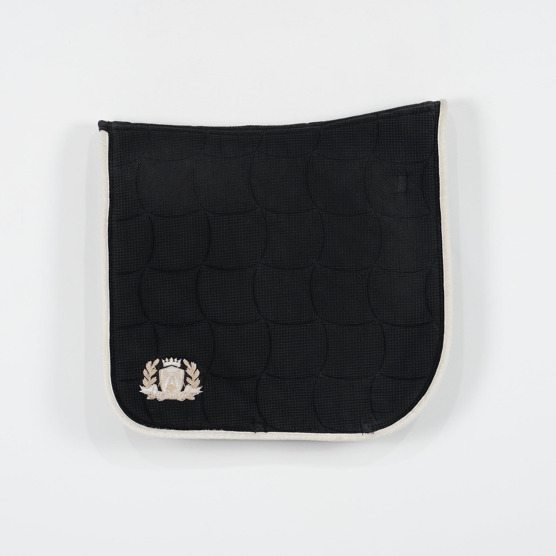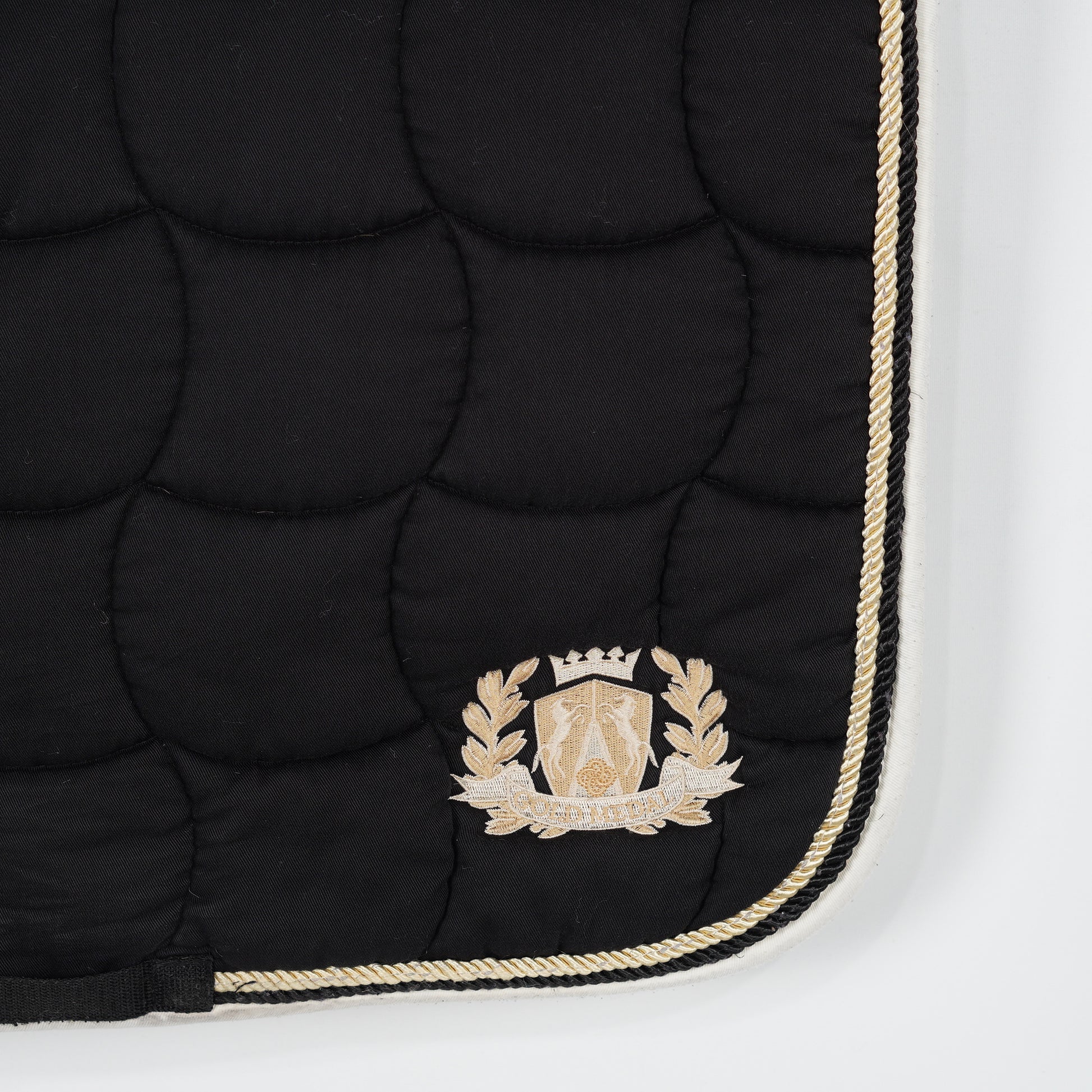 Mjukt dressyrschabrak med vit kant och logga från Gold Medal utan stroppar.
