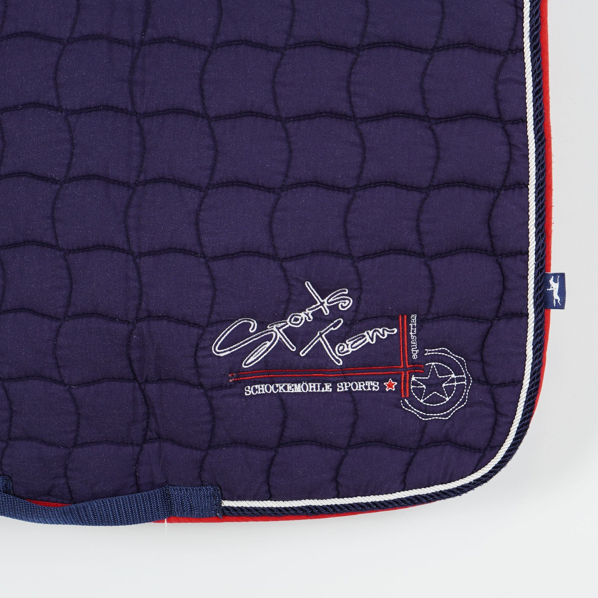 Blått dressyrschabrak från Schockemöhle i ett tydligt använt men bra skick.