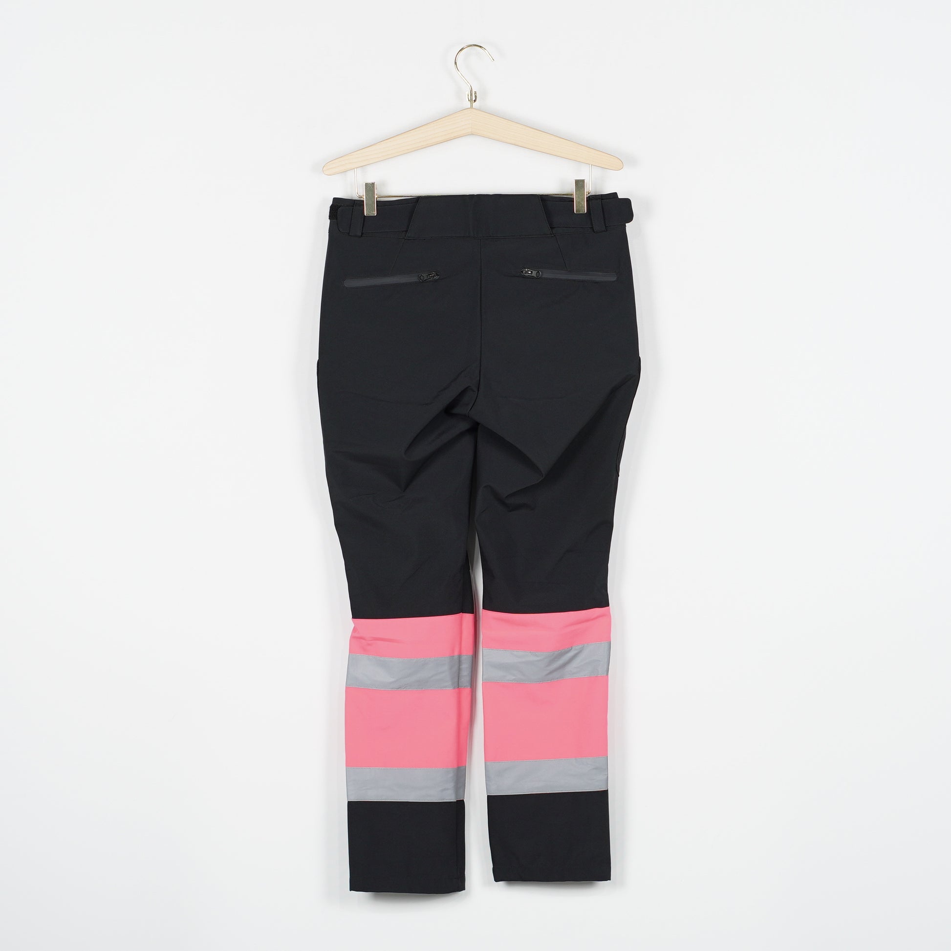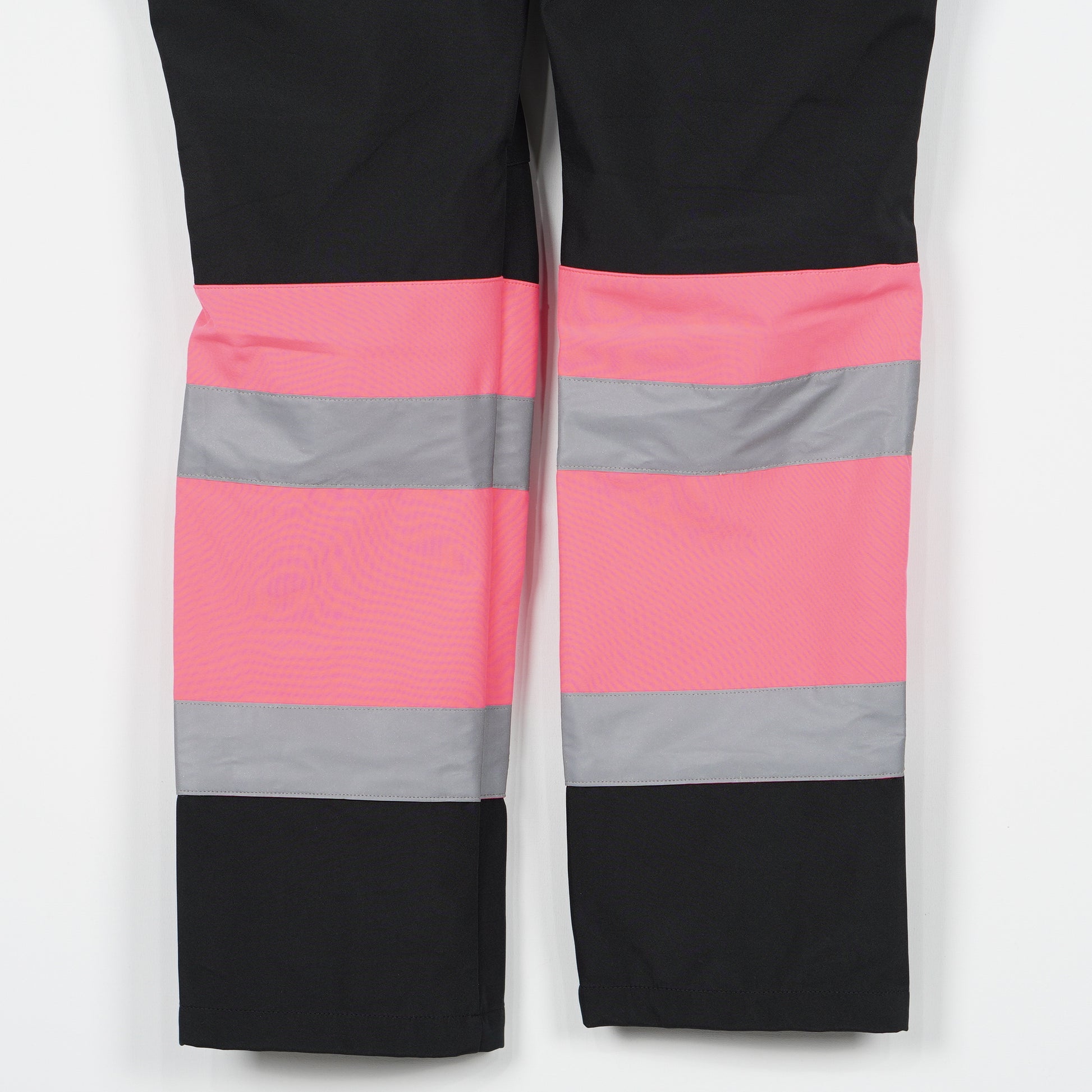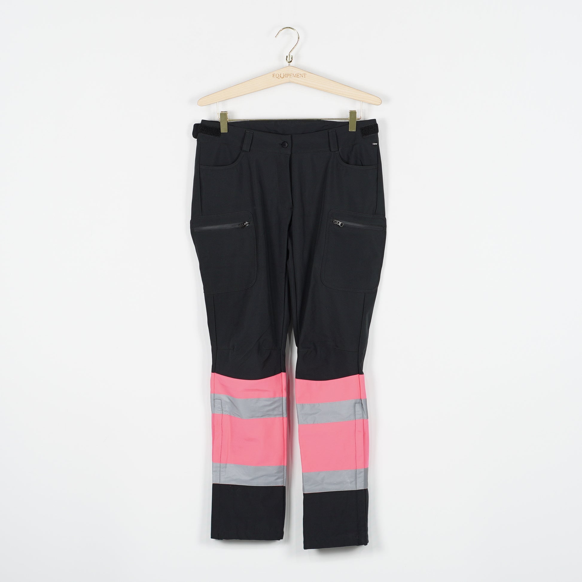 Svarta stall-/överdragsbyxor i svart med rosa varselfärg och reflexdetaljer från CRW. Byxorna har flera bra fickor med dragkedja och en justerbar midja med kardborre.