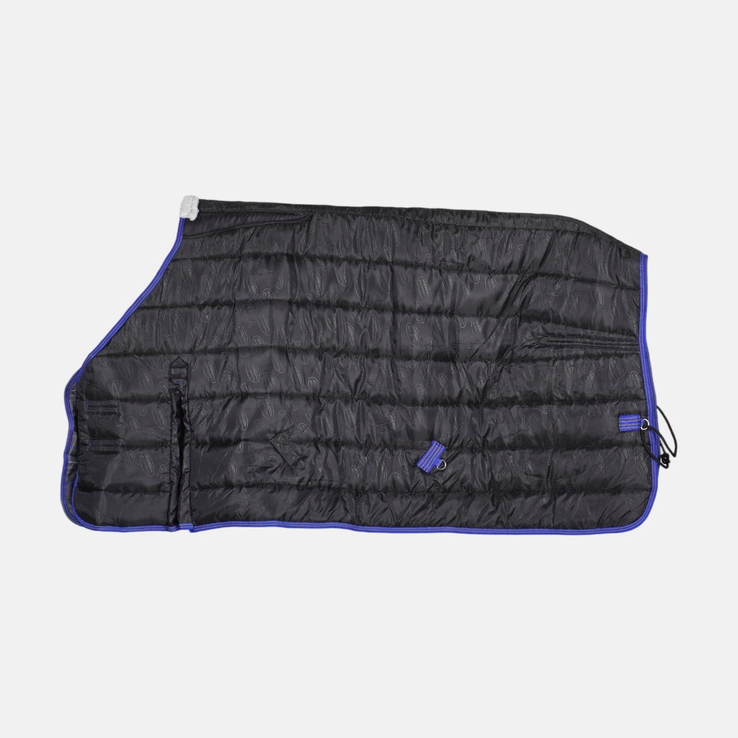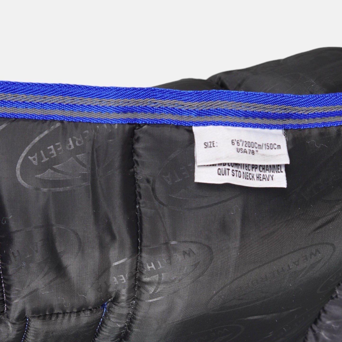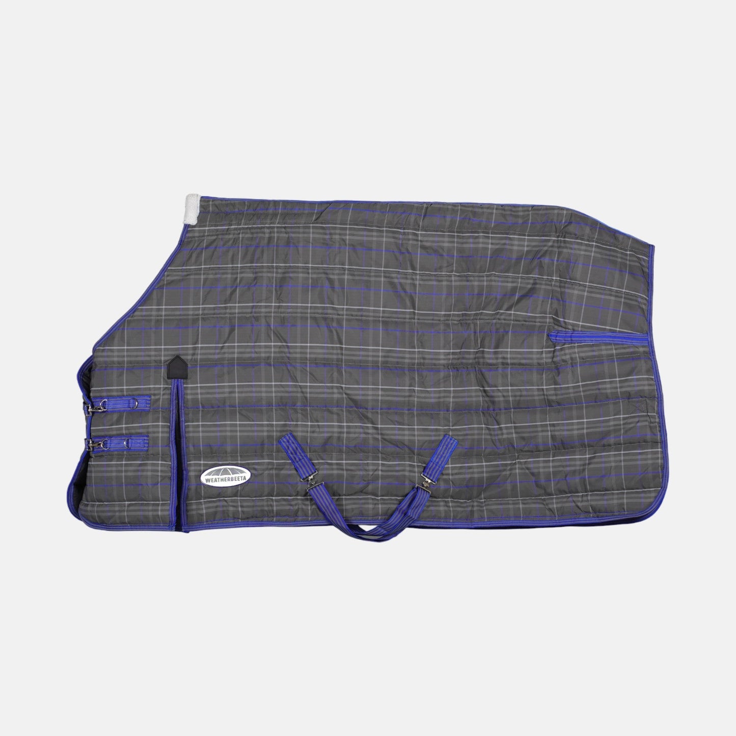 Tjockt stalltäcke från WheatherBeeta med 360g fyllning, grått med blåa detaljer. Täcket är i ett jättefint skick.