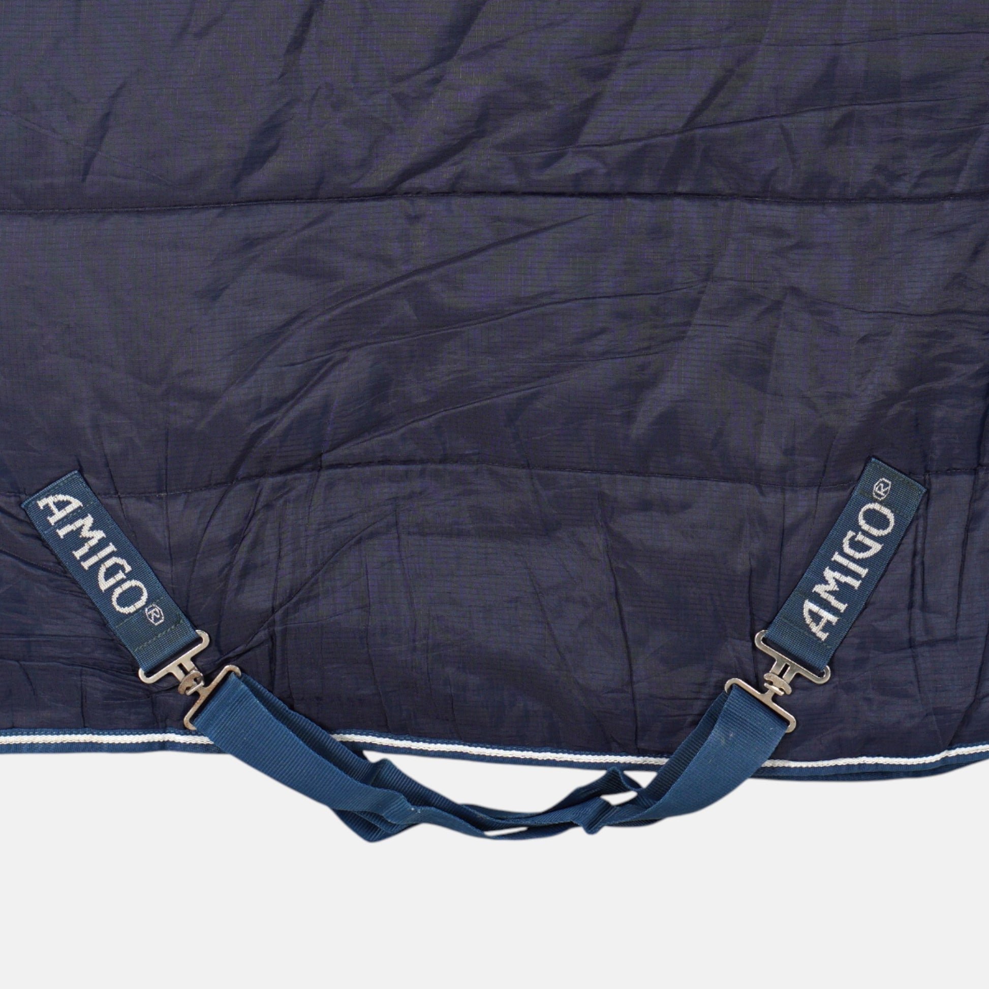 Stalltäcke Amigo Insulator med 350g fyllning från Horseware. Täcket är i ett tydligt använt skick (se bilder), men fullt funktionellt. Ett litet hål finns insida maggjord.