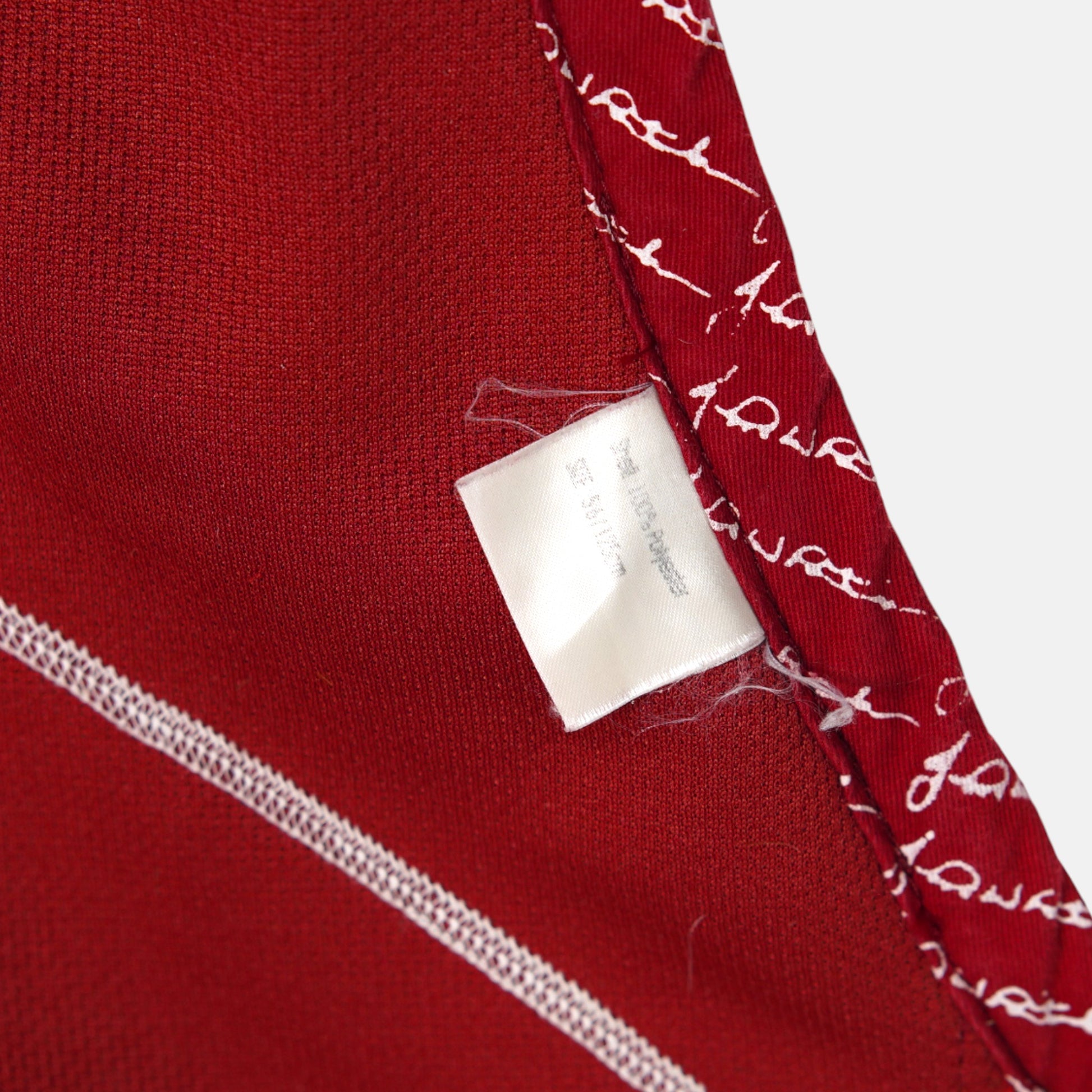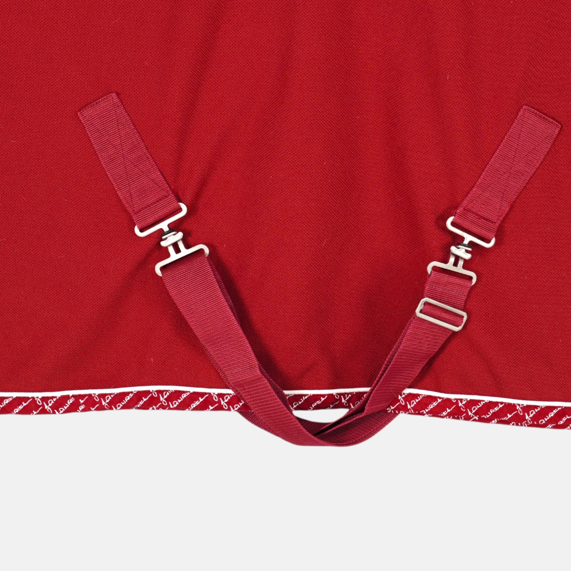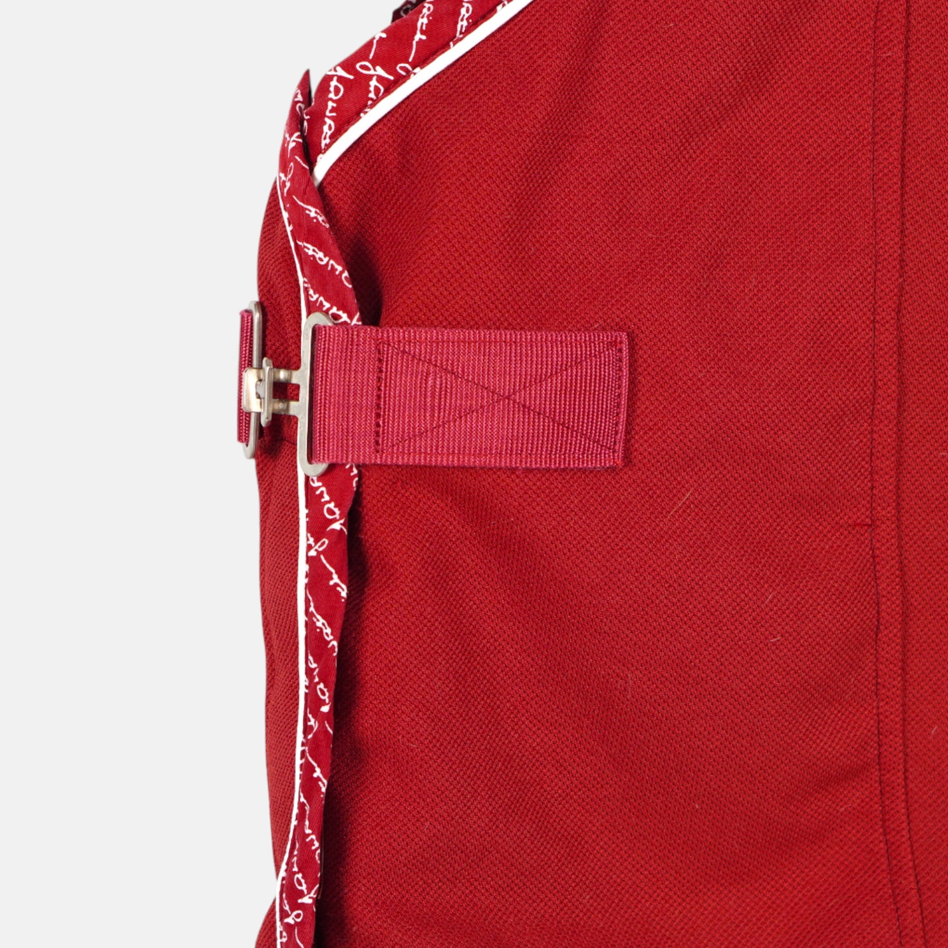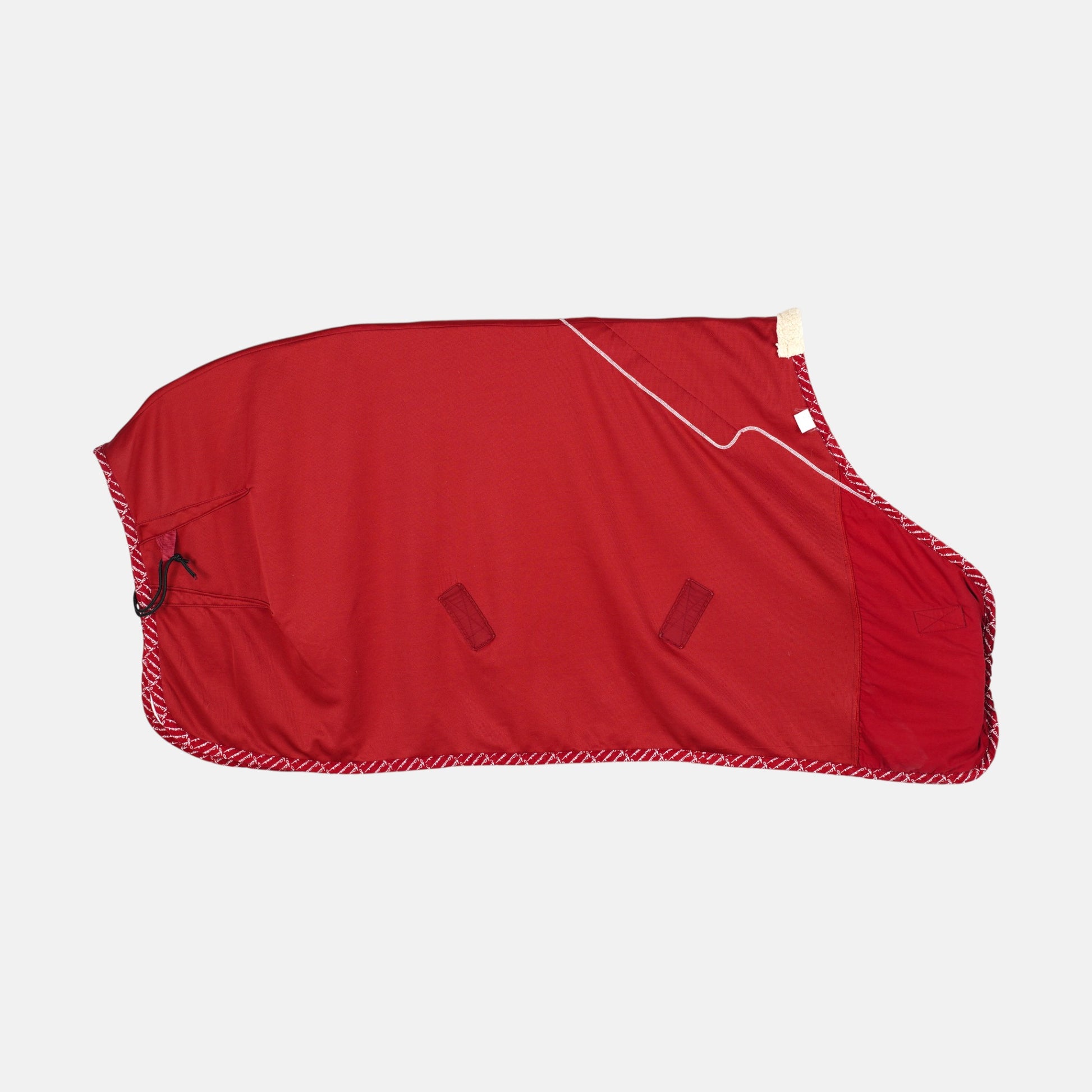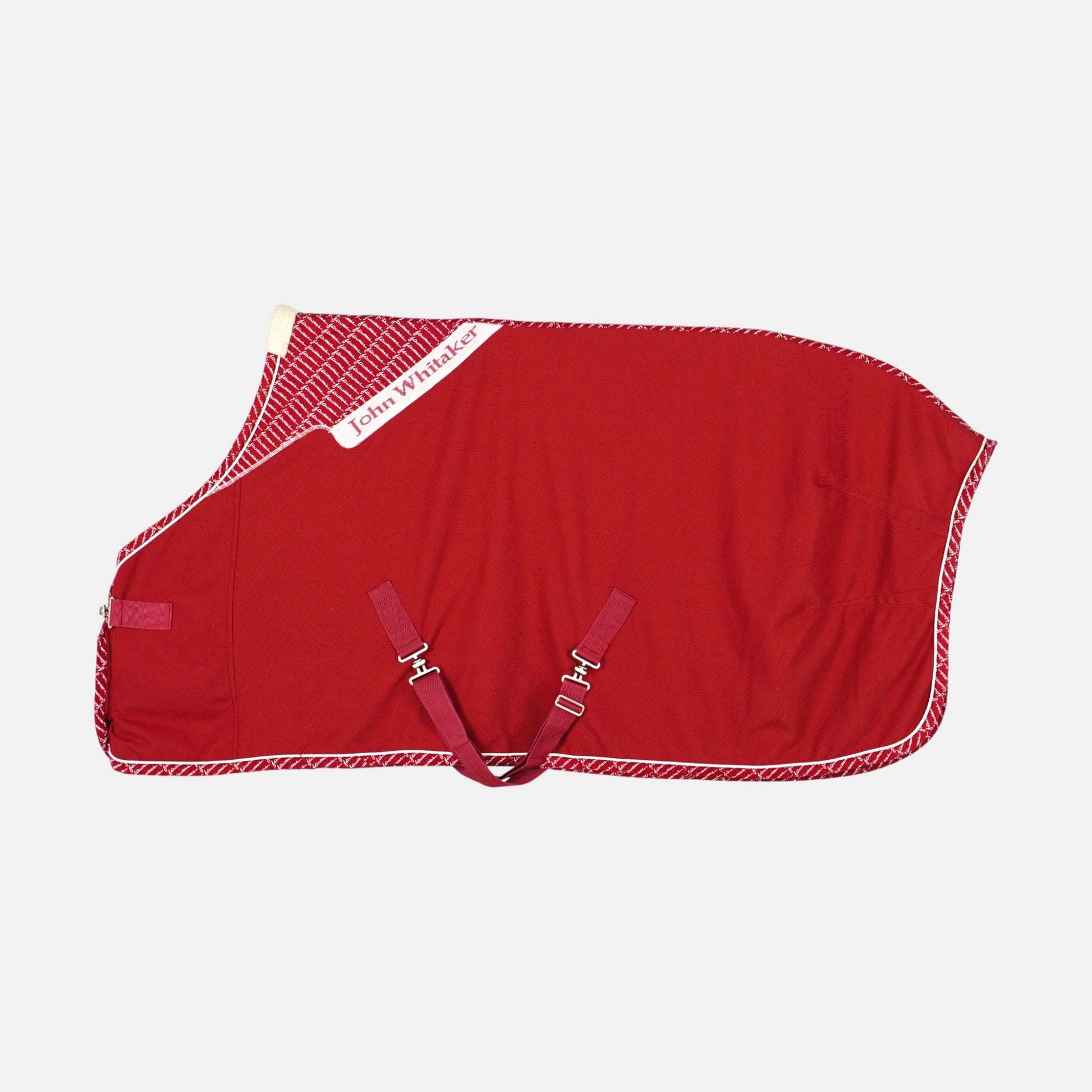 Rött svettäcke med teddy i manken och avtagbara maggjordar från John Whitaker.