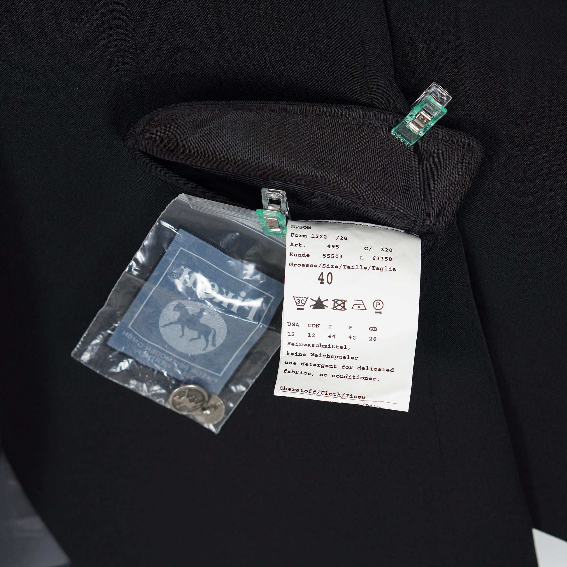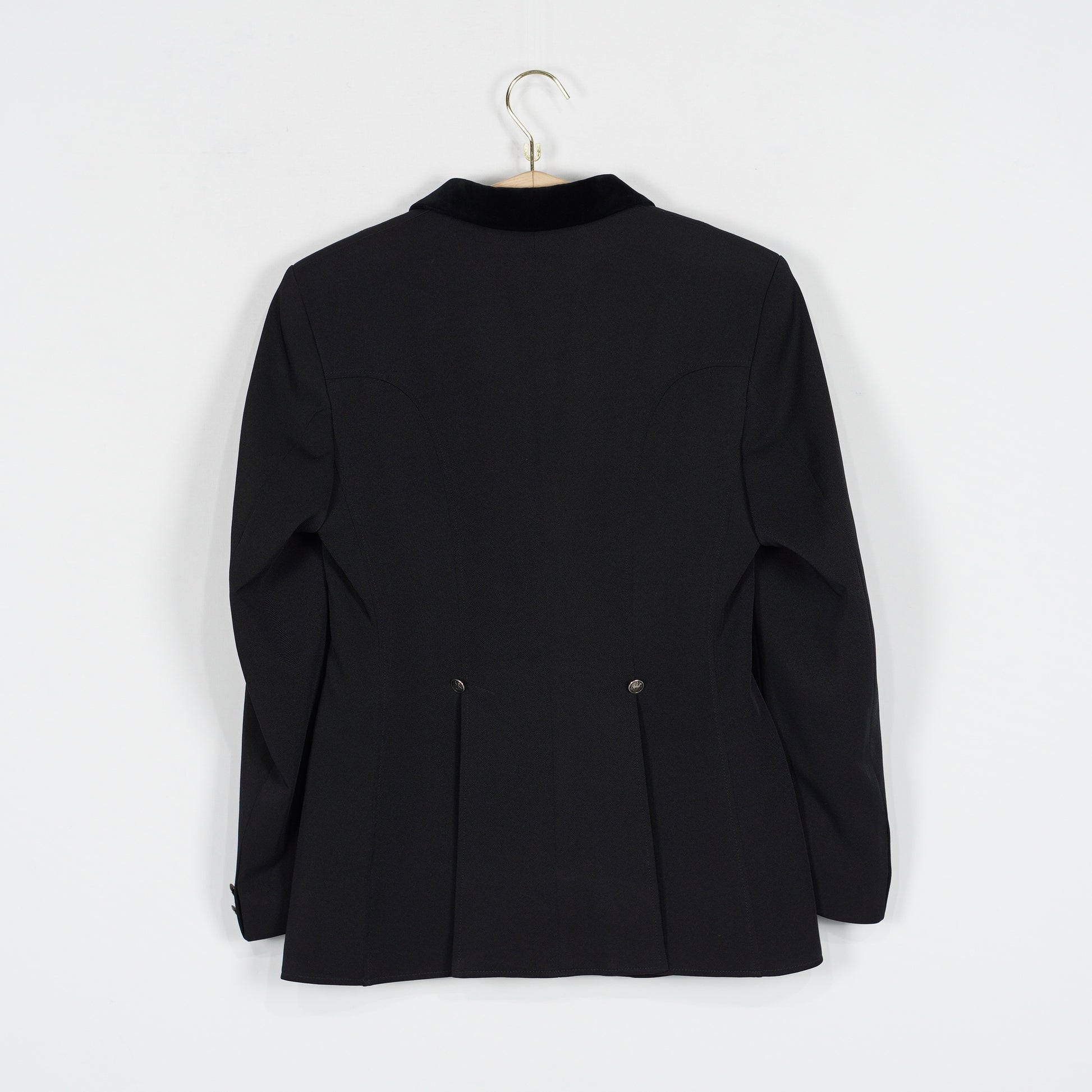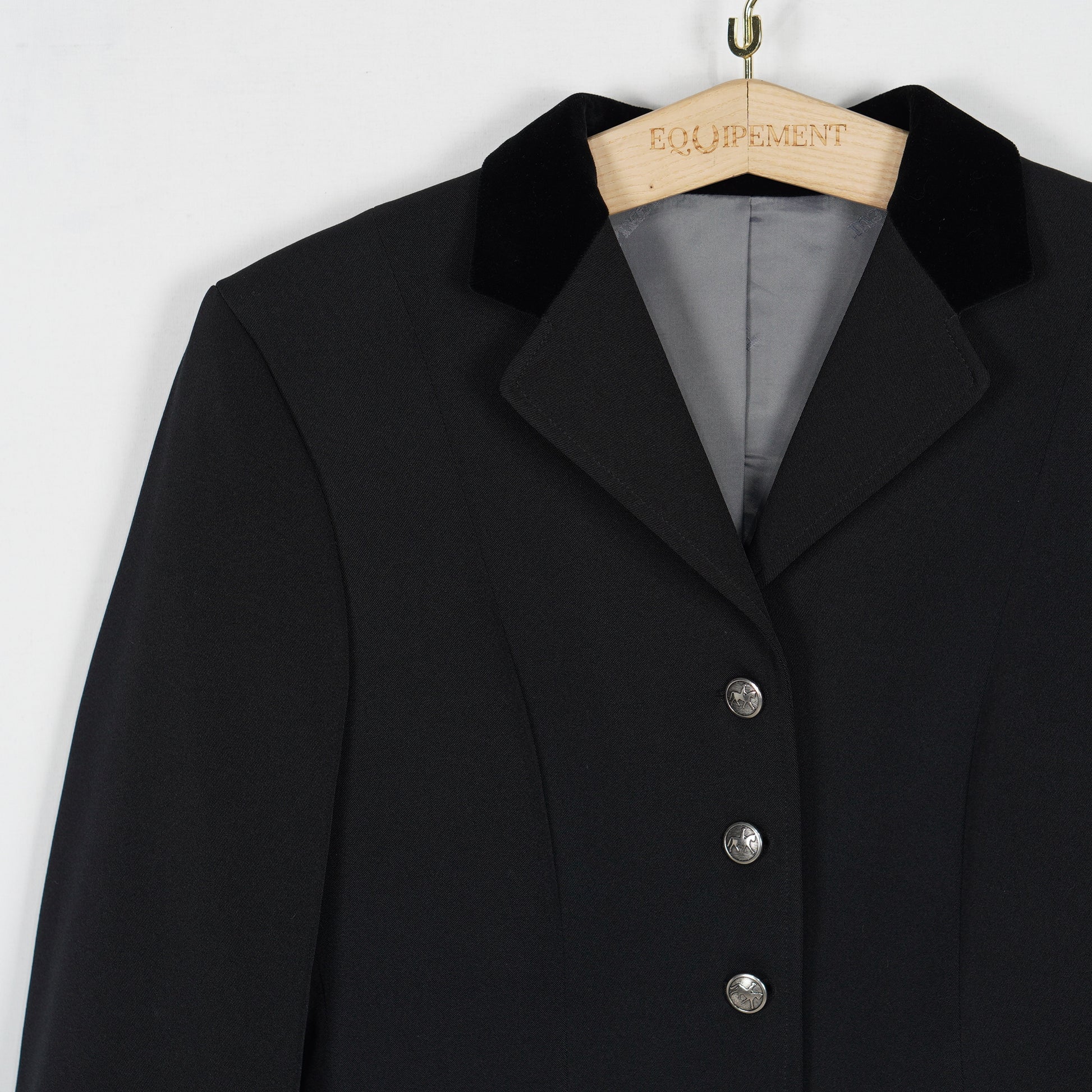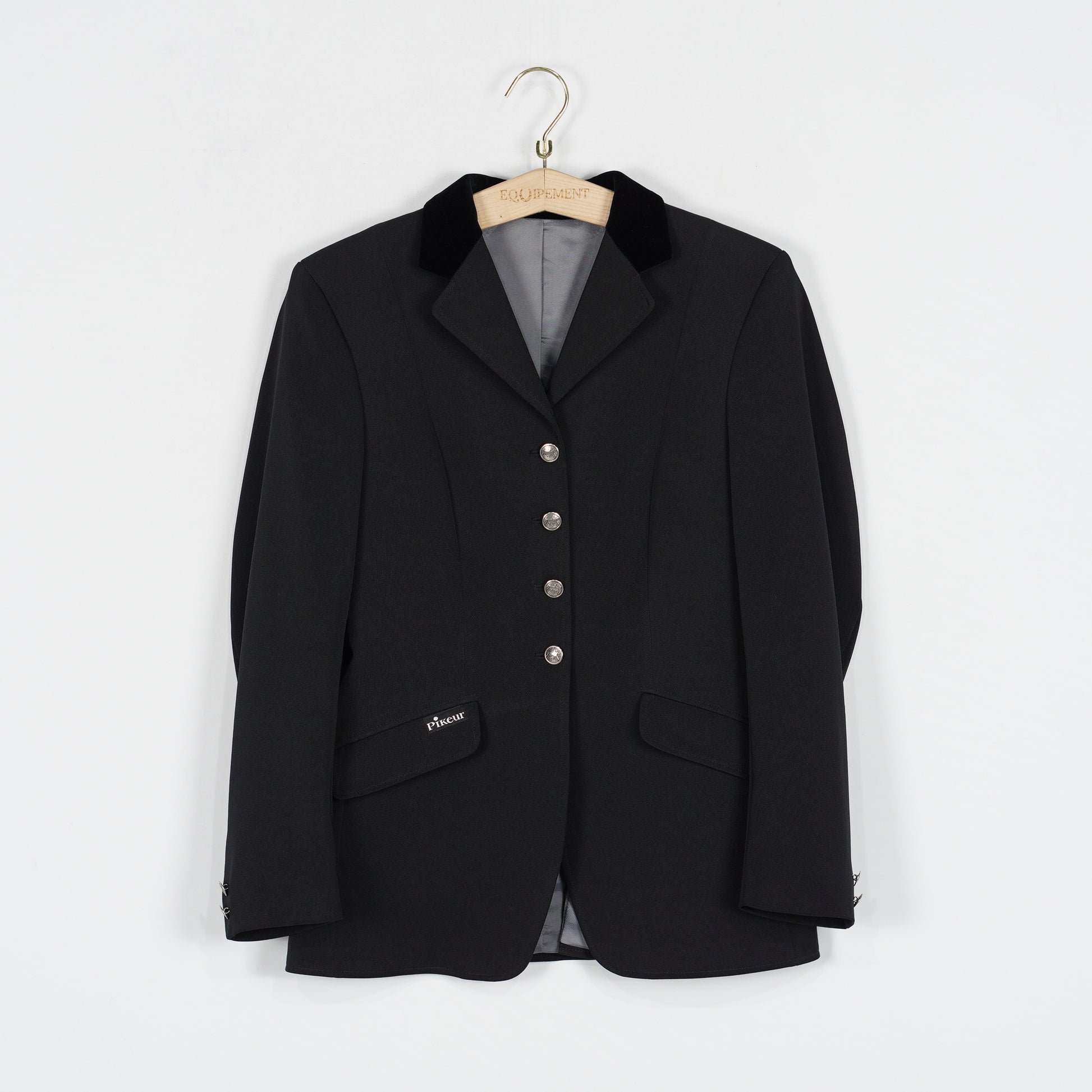 Pikeur's klassiska tävlingskavaj Epsom i svart med sammetskrage. Kavajen är i ett mycket sparsamt använt skick och är redo för att tävla!