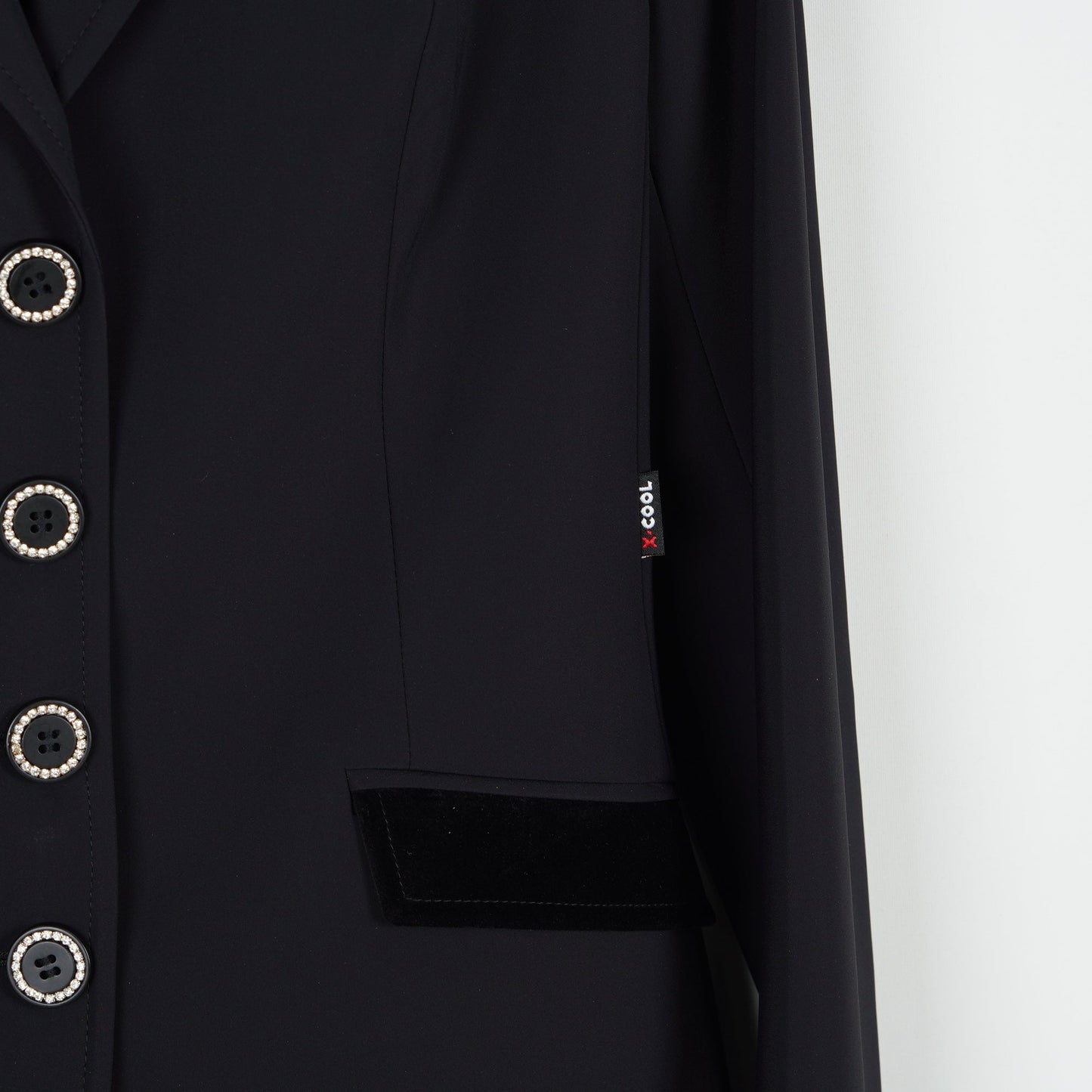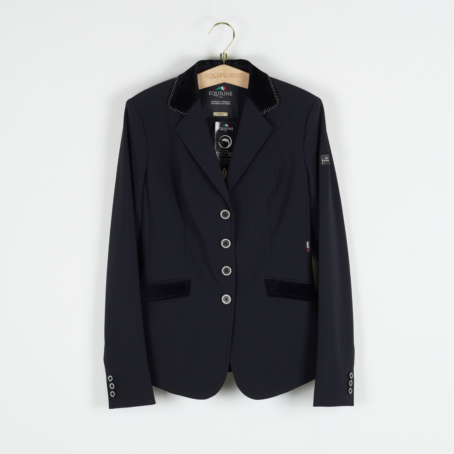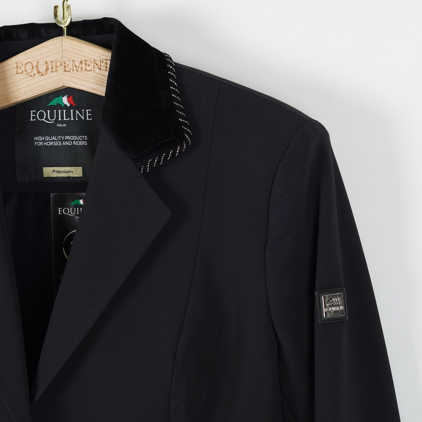 Supersnygg tävlingskavaj från Equiline, modell Gait X-Cool. Kavajen är oanvänd med tags kvar och sin resegarderob. Kavajen är utsmyckad med Swarovskikristaller på knapparna och utkanten på kragen.