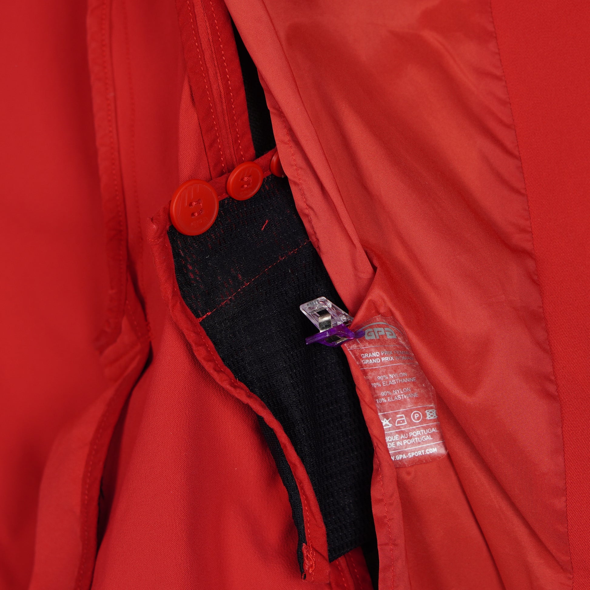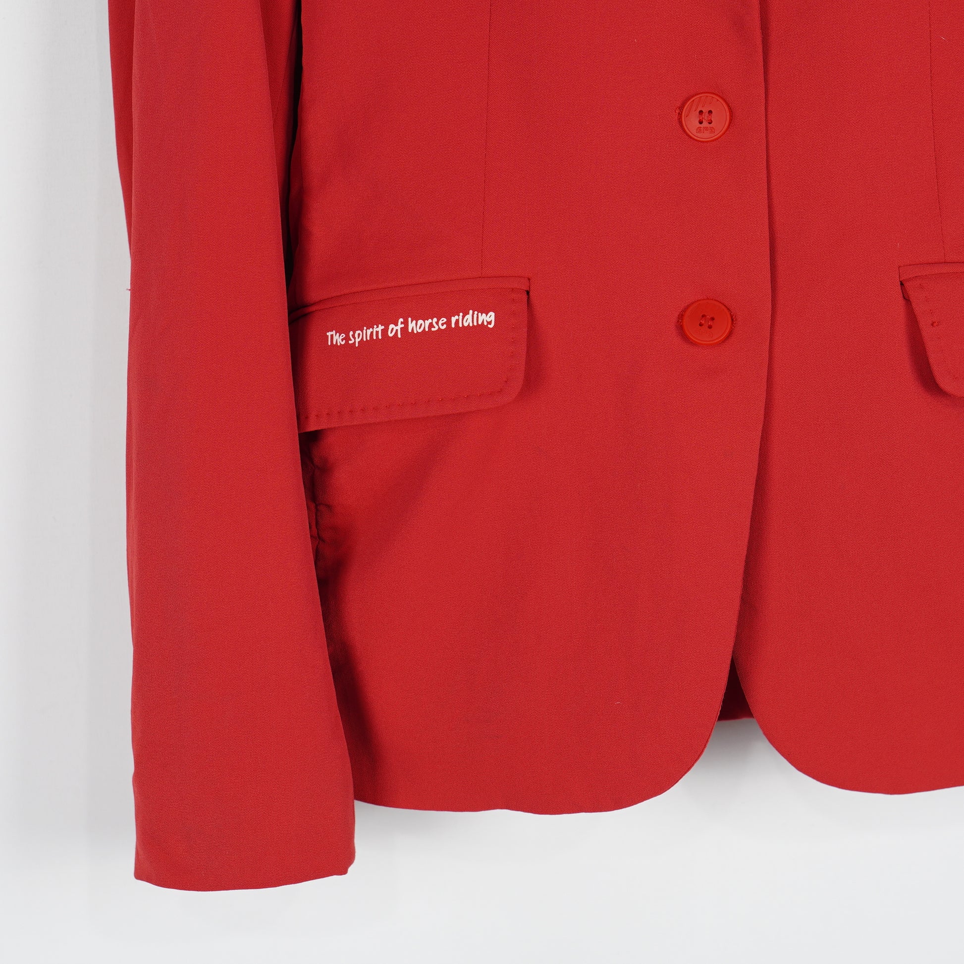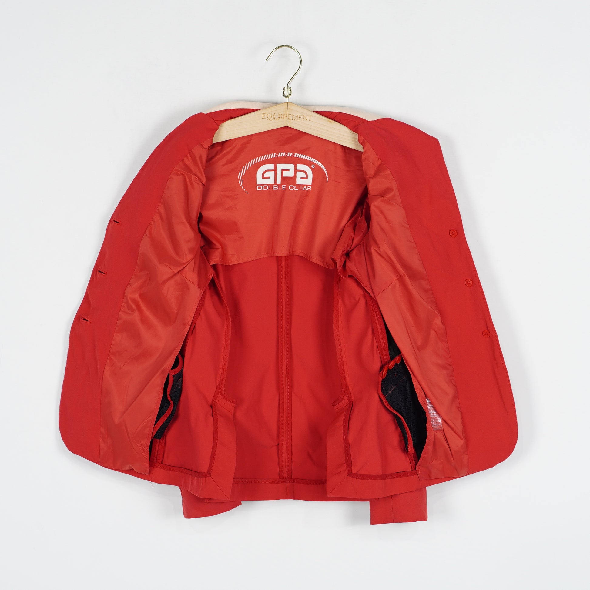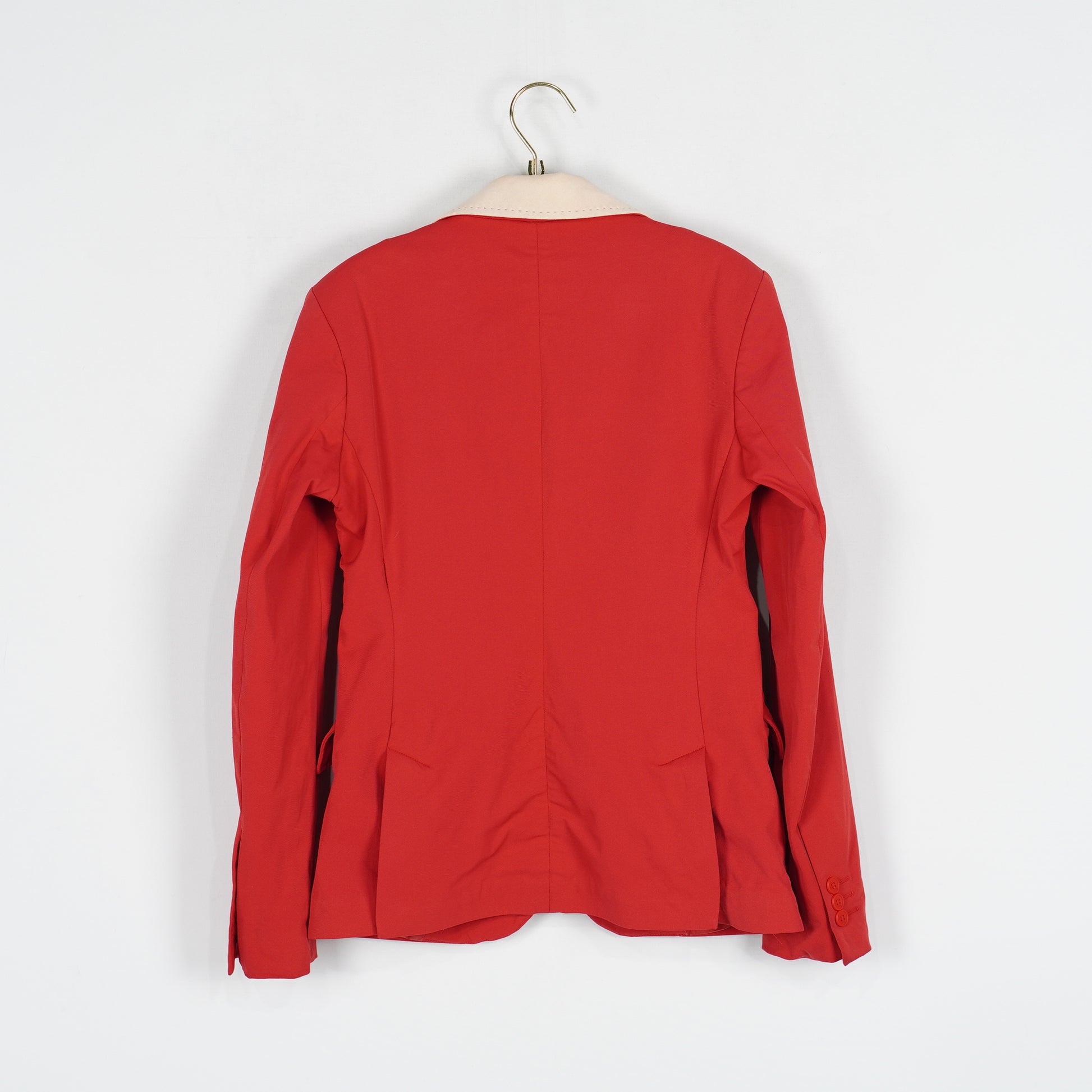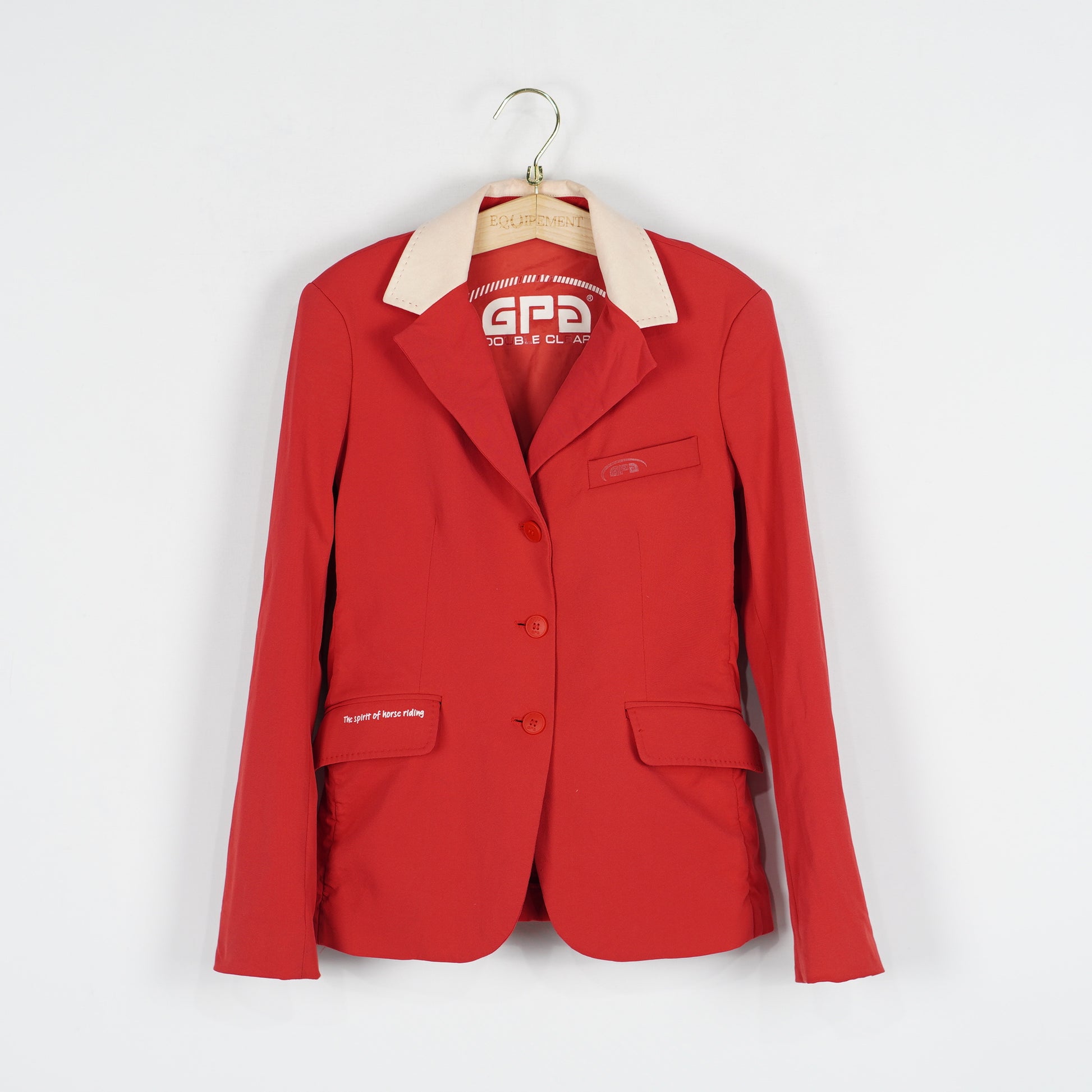 Röd tävlingskavaj från GPA med ljusbeige krage i syntetisk mocka.