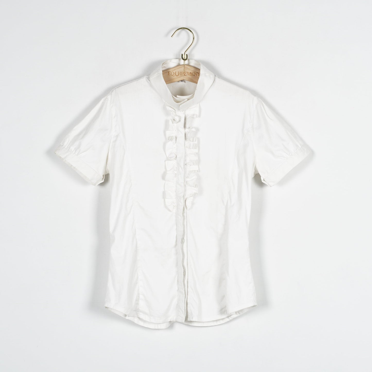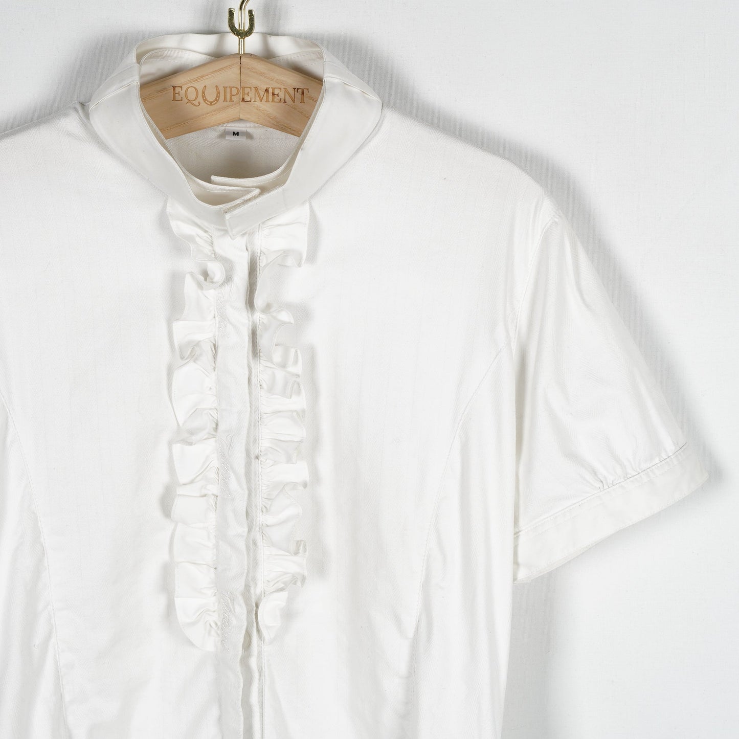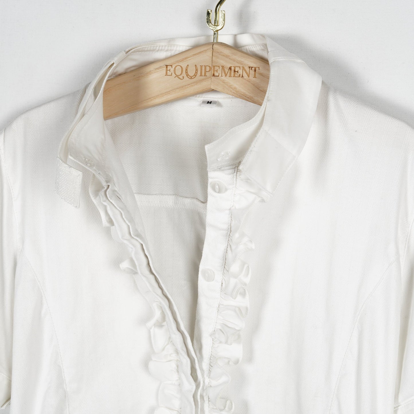Snygg tävlingstopp i vit bomull från Tattini. Toppen har avtagbar krage och är i ett använt men mycket bra skick.